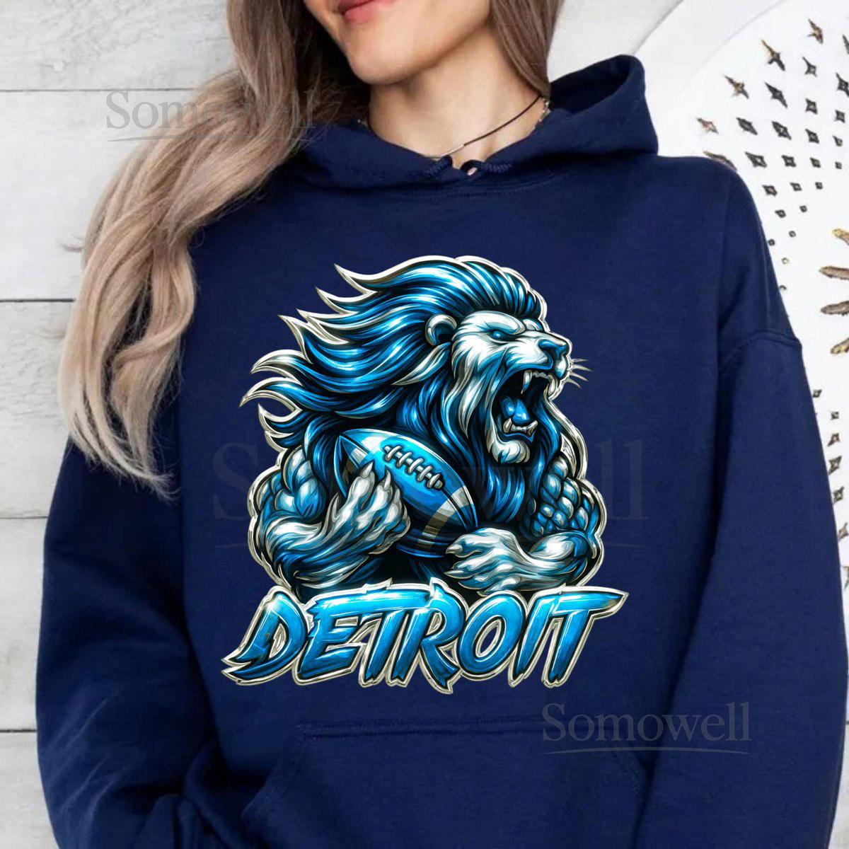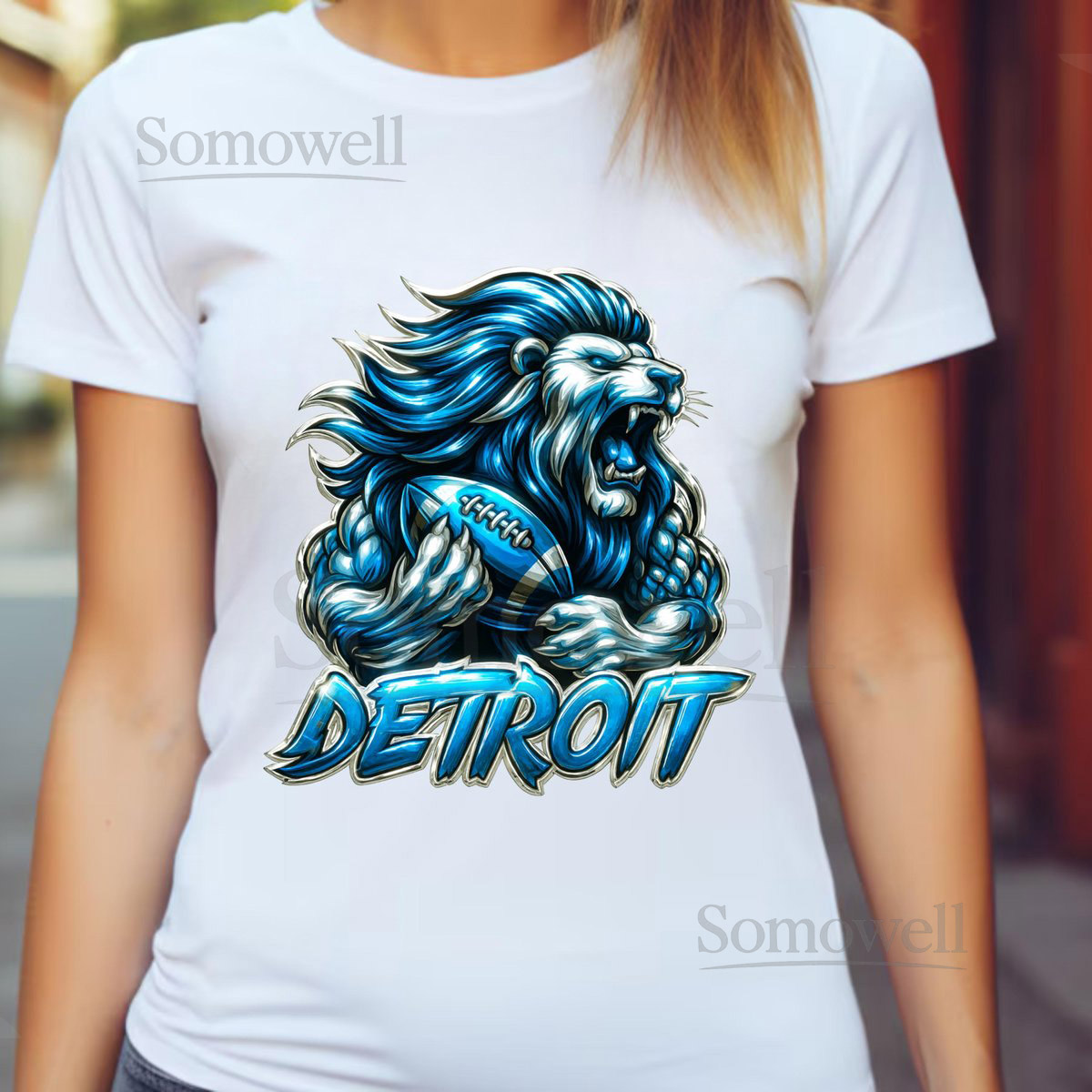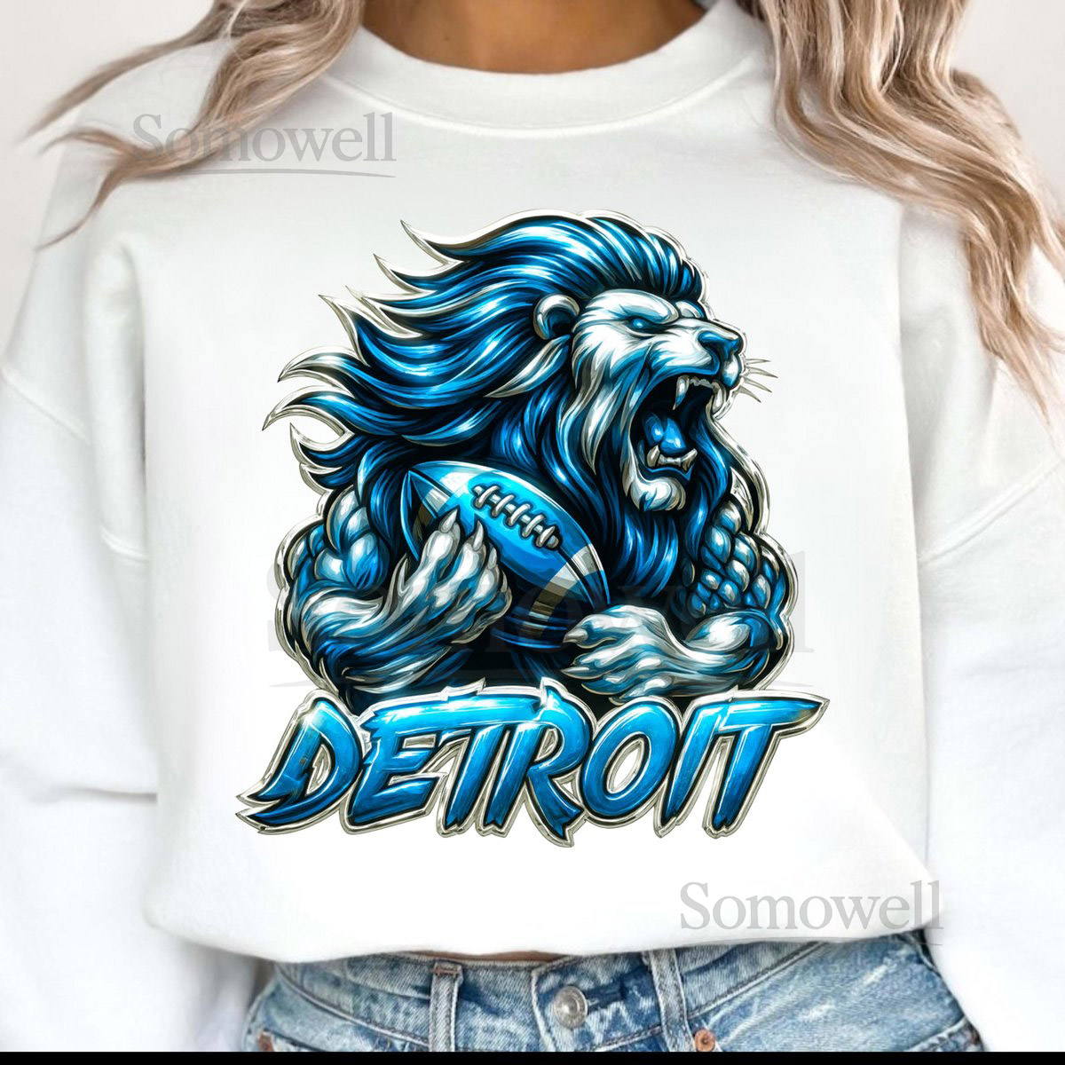 Detroit Lion Football T-Shirt PNG Blue Lion Design Digital Download_179