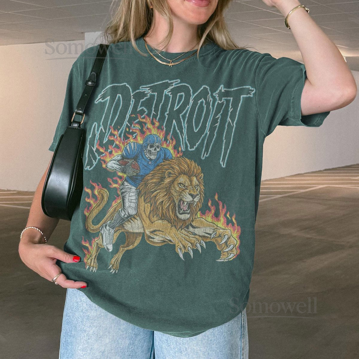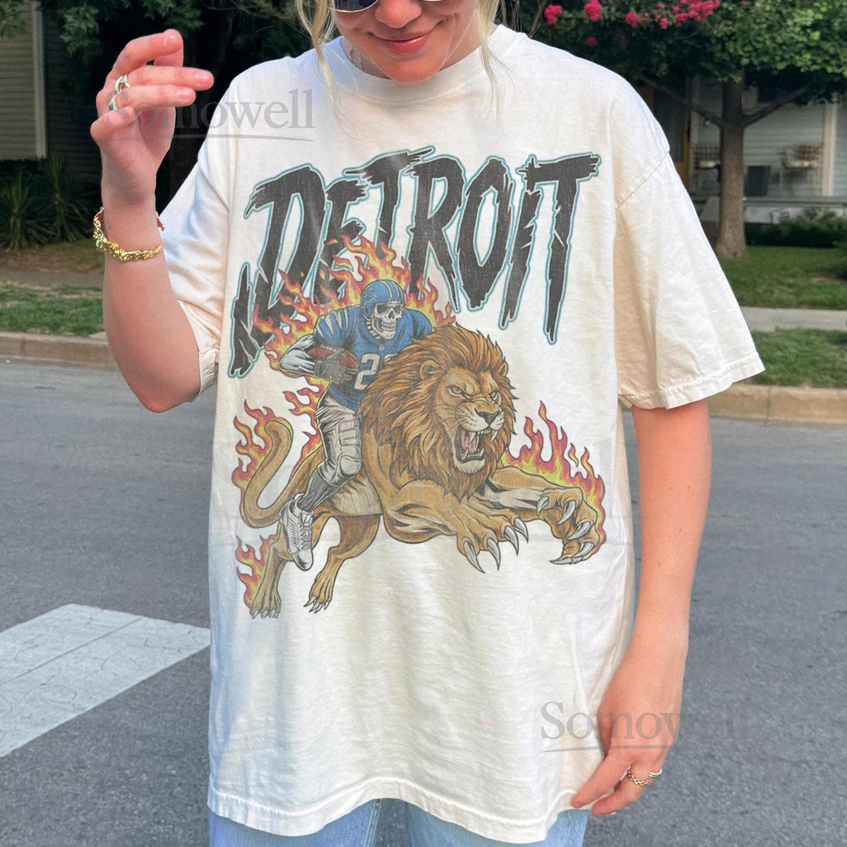 Detroit Lions Vintage Style Shirt Retro Detroit Football Graphic Tee Old School Sunday Game Day Top_318