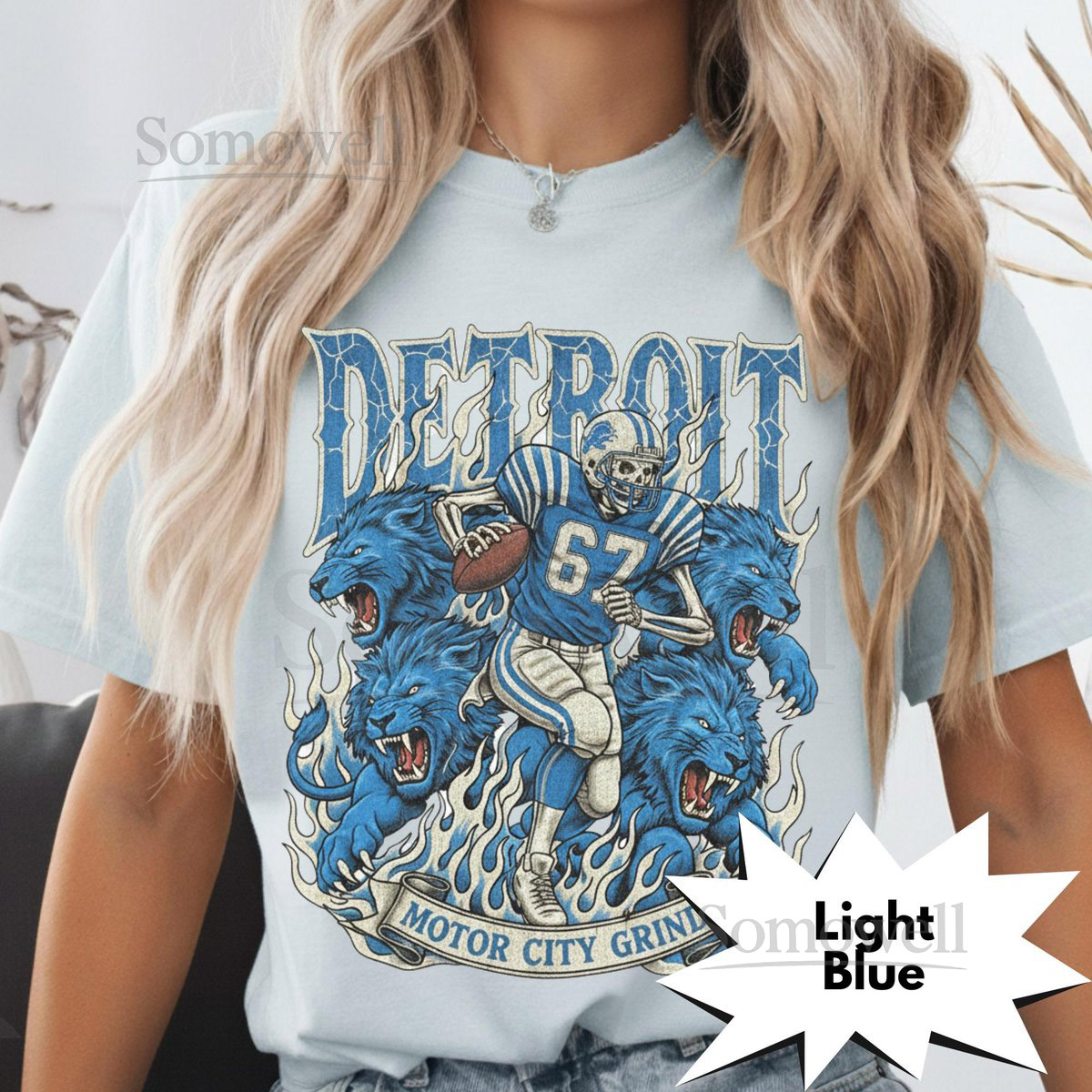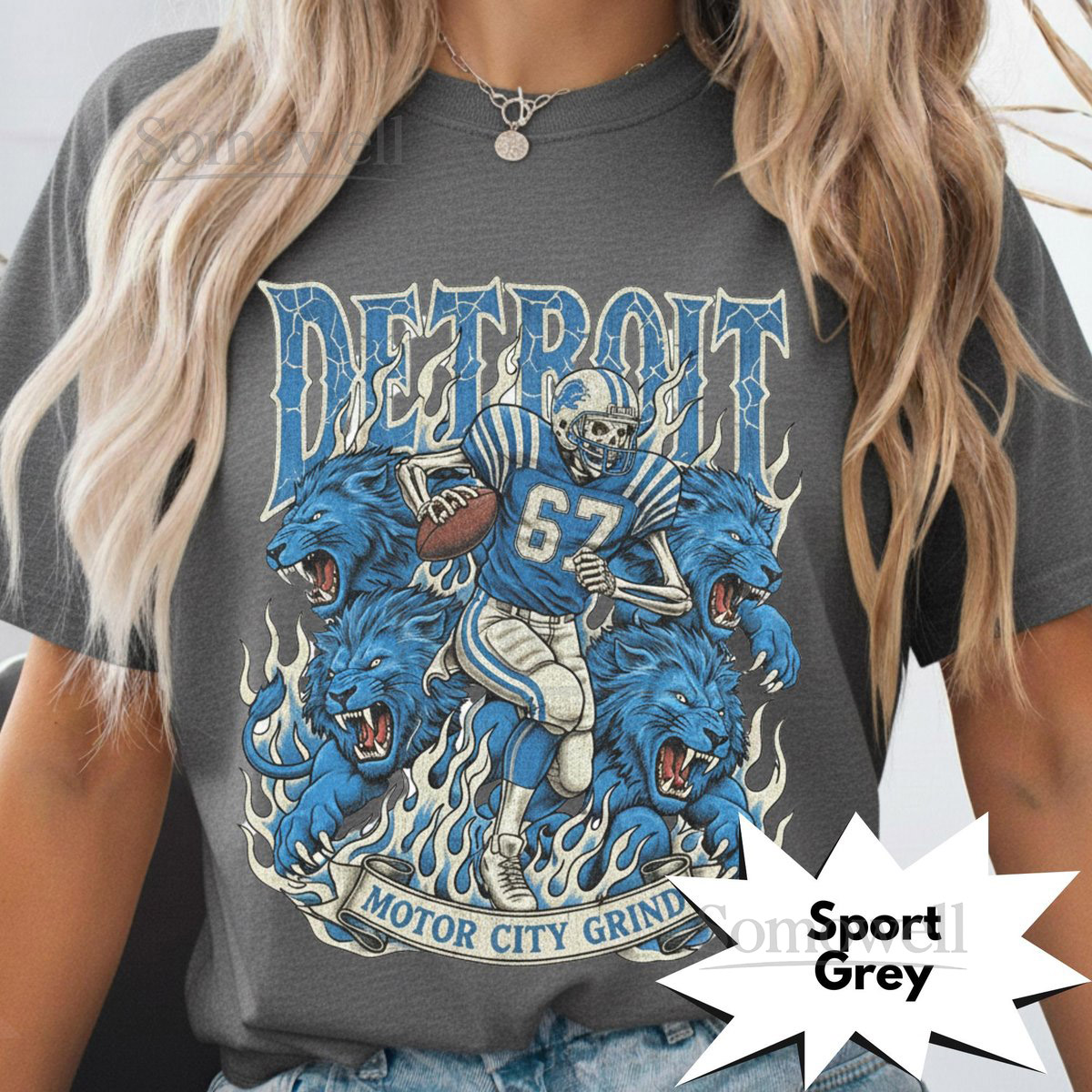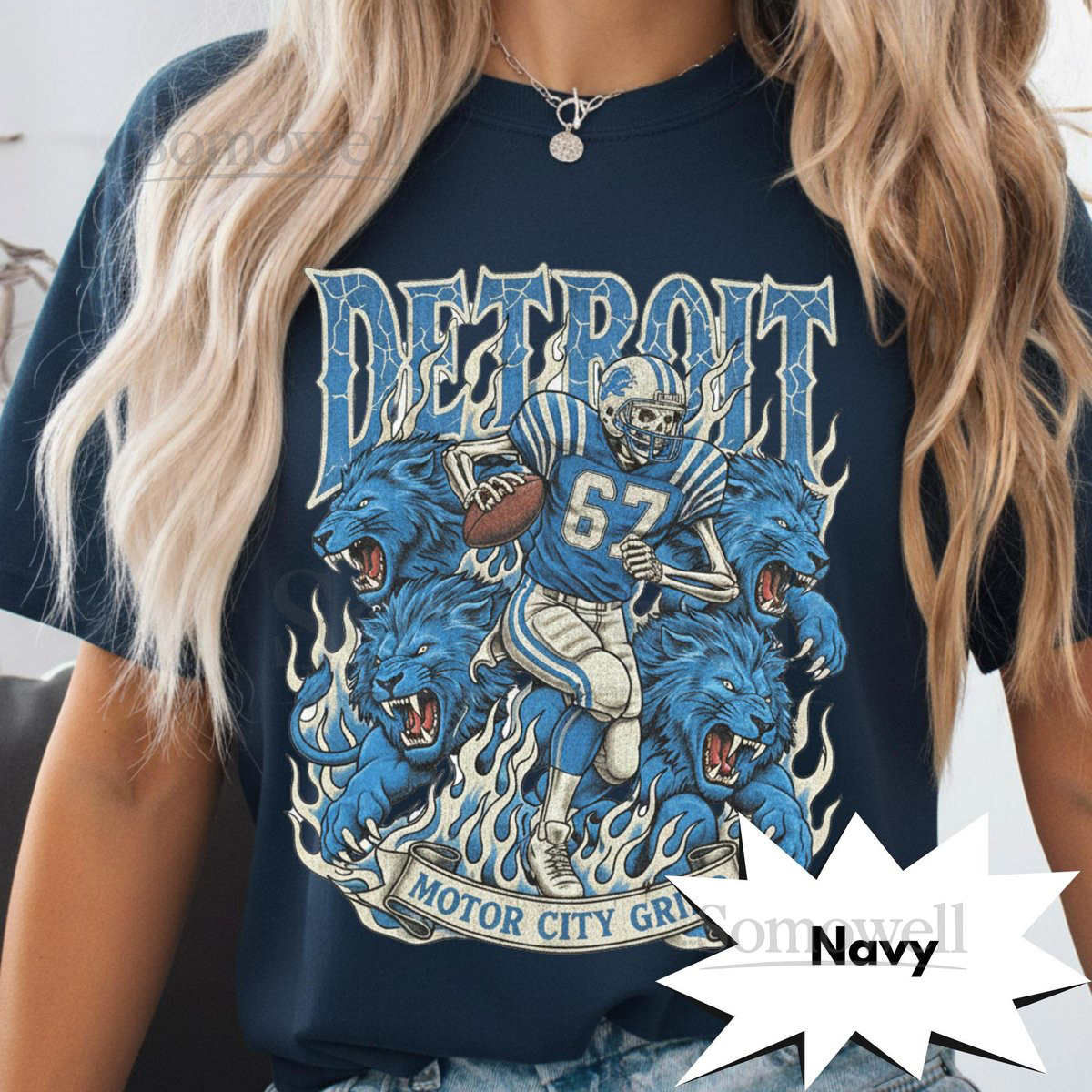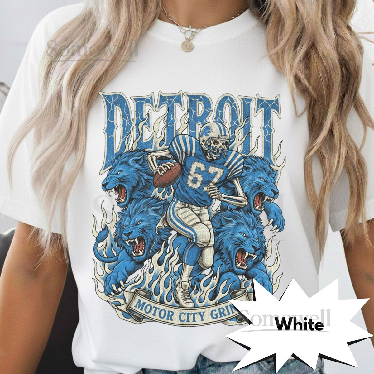 Detroit Retro Football T-Shirt Vintage Lions Graphic Tee Game Day Classic Football Fan Apparel Motor City Grind Skeleton Shirt_331