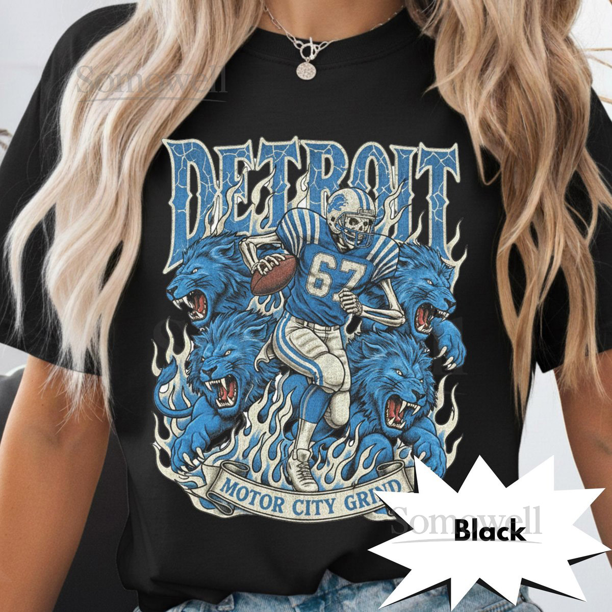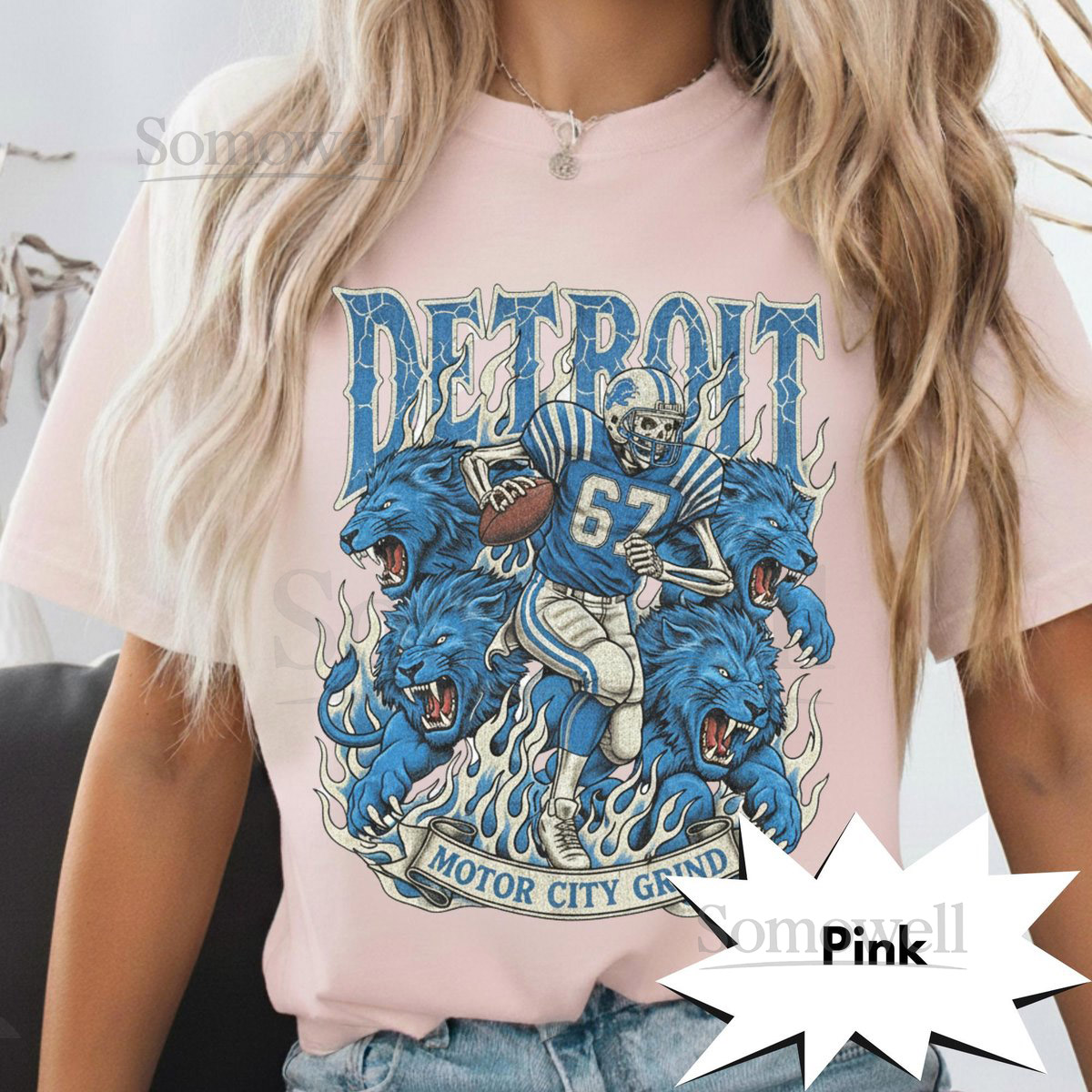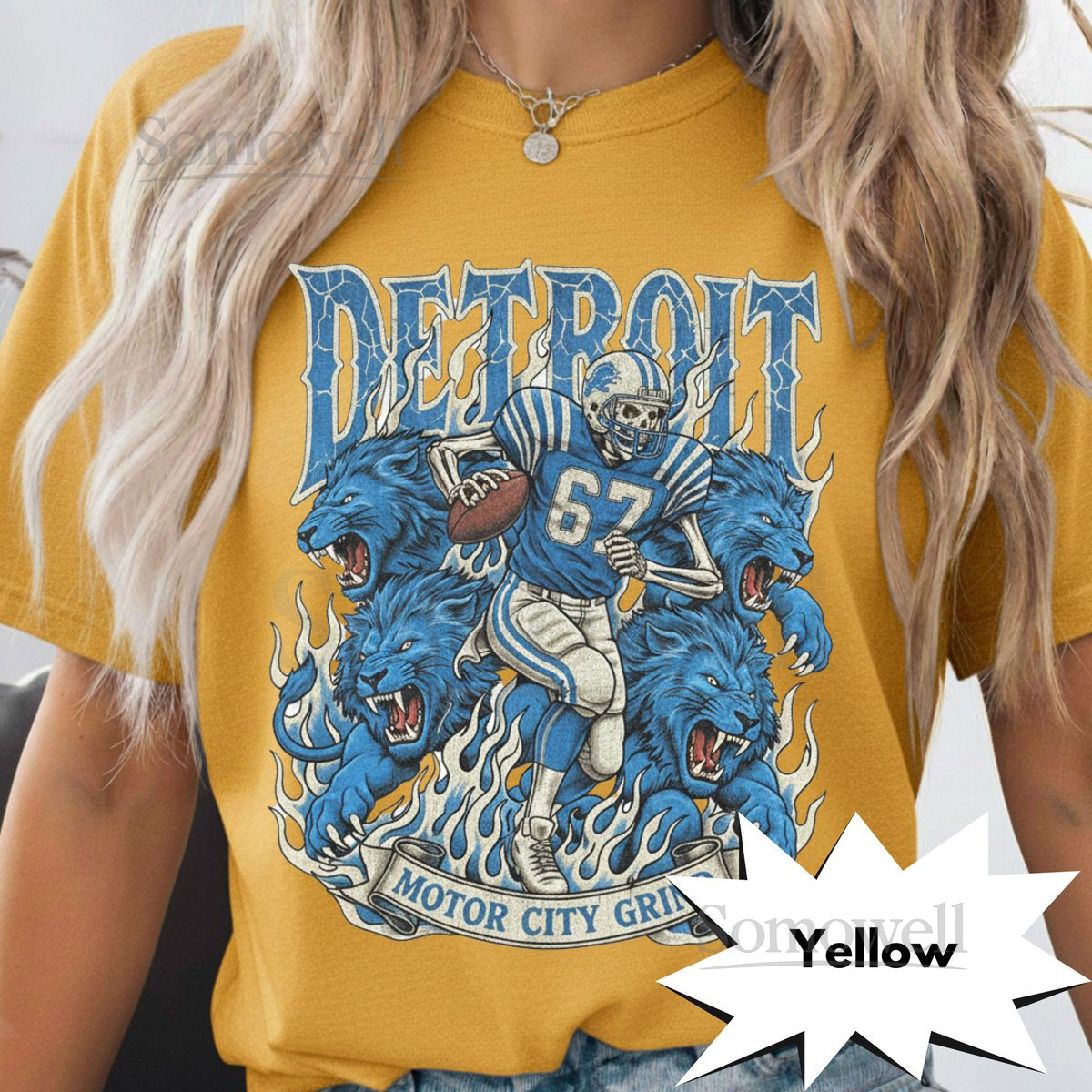 Detroit Retro Football T-Shirt Vintage Lions Graphic Tee Game Day Classic Football Fan Apparel Motor City Grind Skeleton Shirt_331