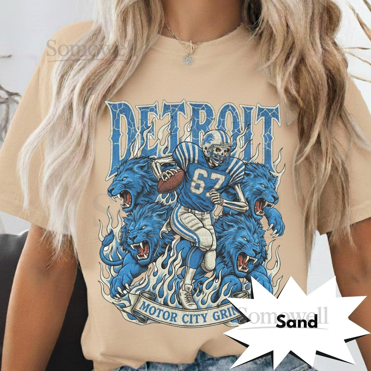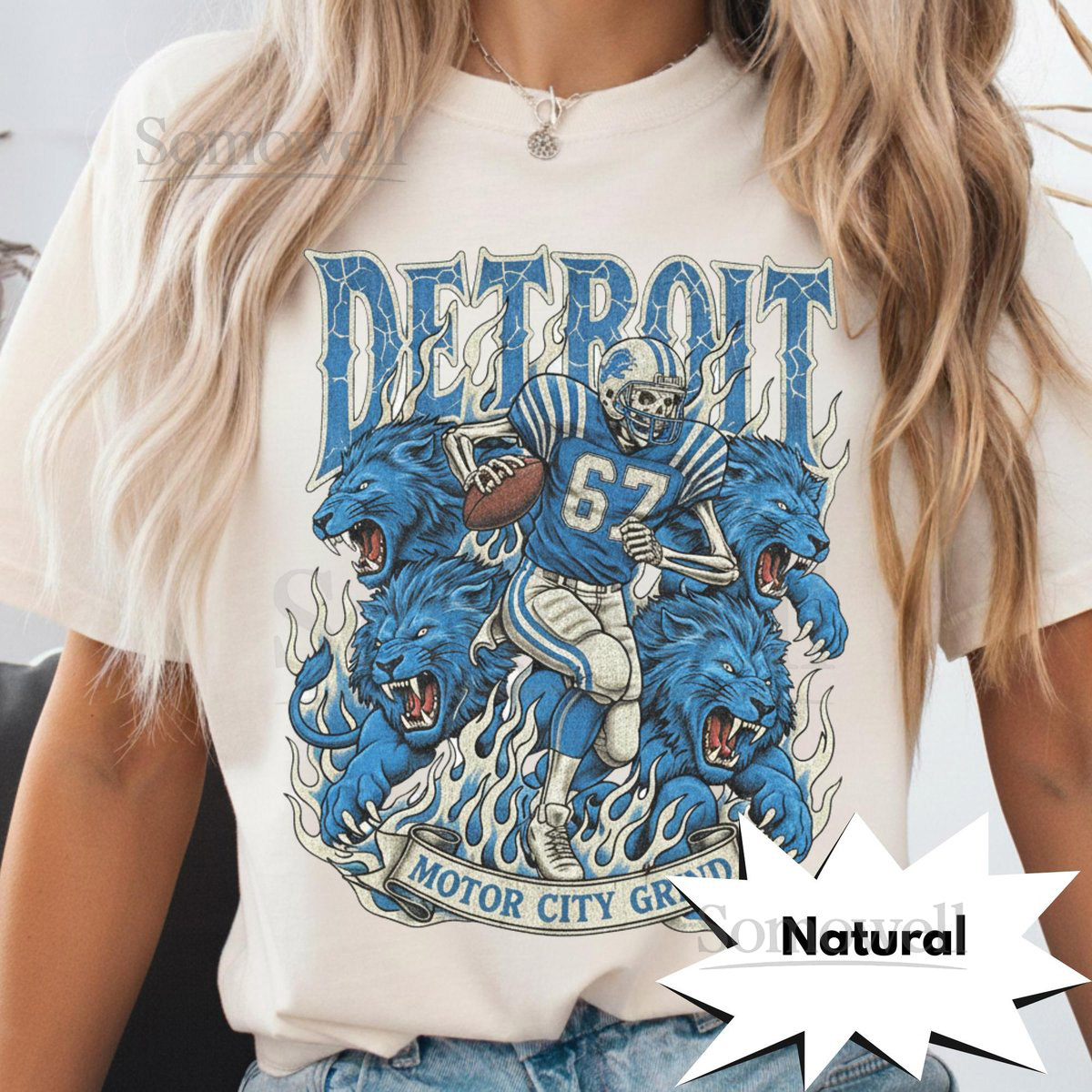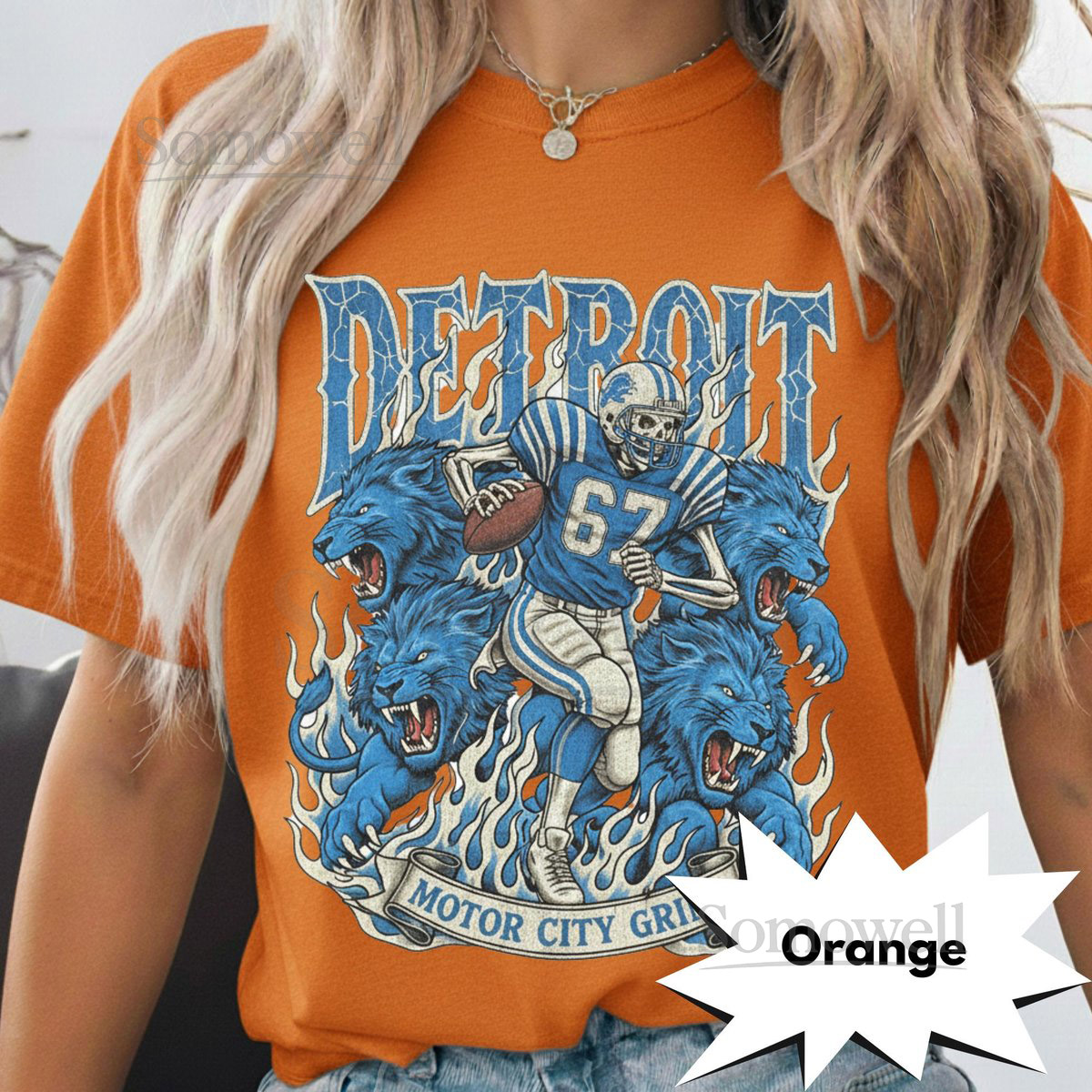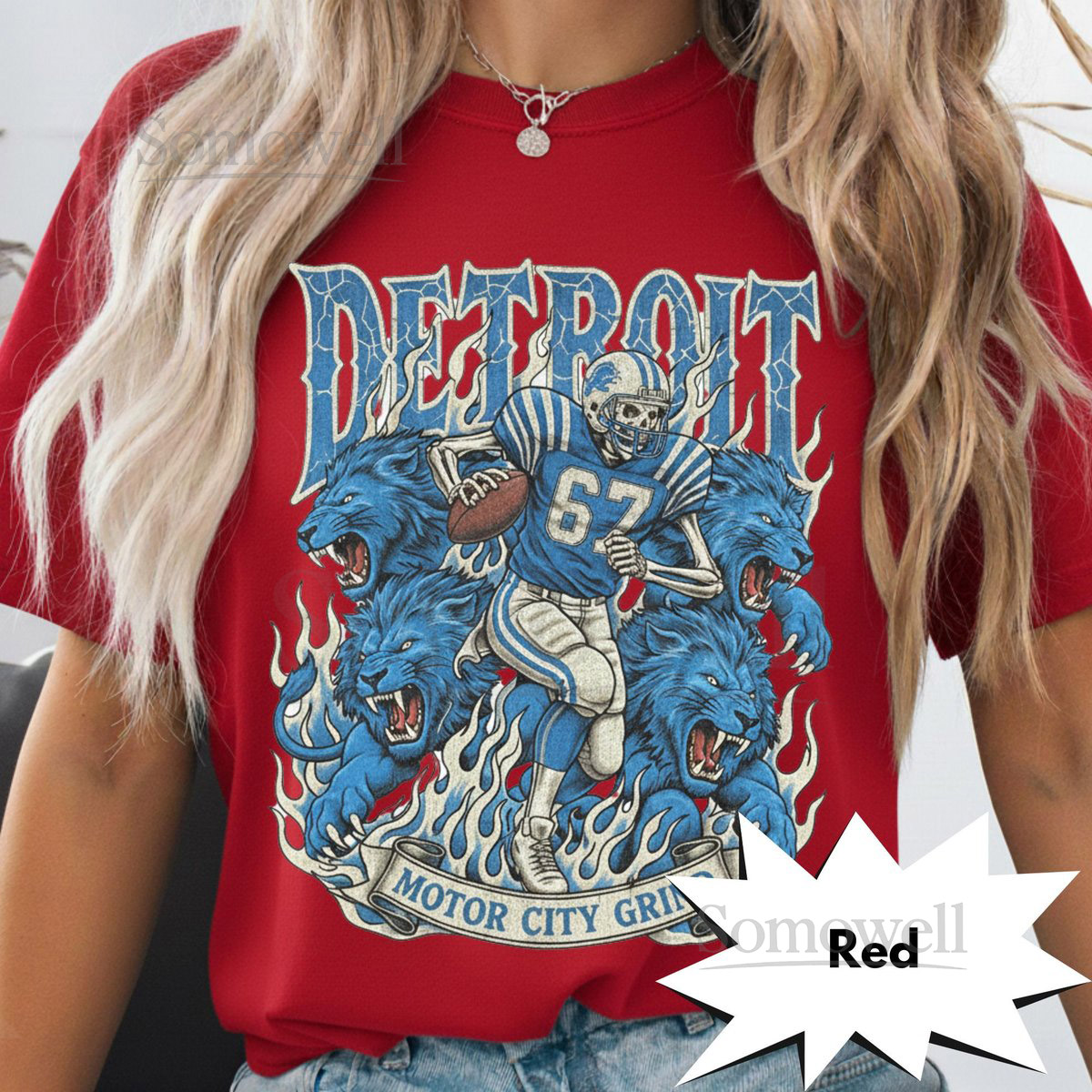 Detroit Retro Football T-Shirt Vintage Lions Graphic Tee Game Day Classic Football Fan Apparel Motor City Grind Skeleton Shirt_331