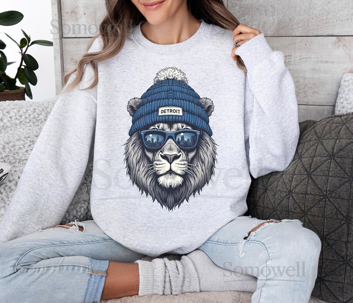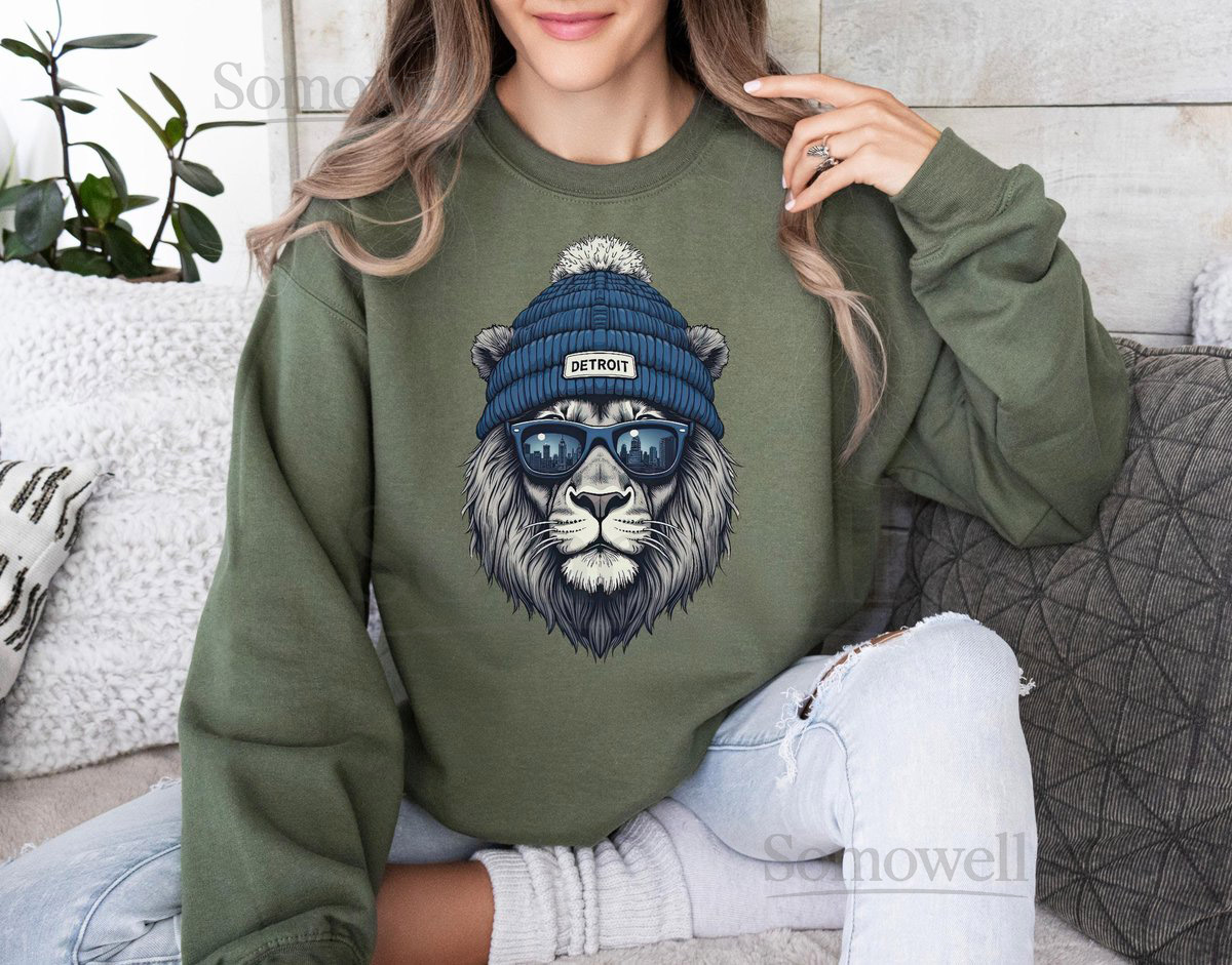 Detroit Pride Football Shirt Skyline Lion T-Shirt Motor City Streetwear Sweatshirt and Hoodie_328