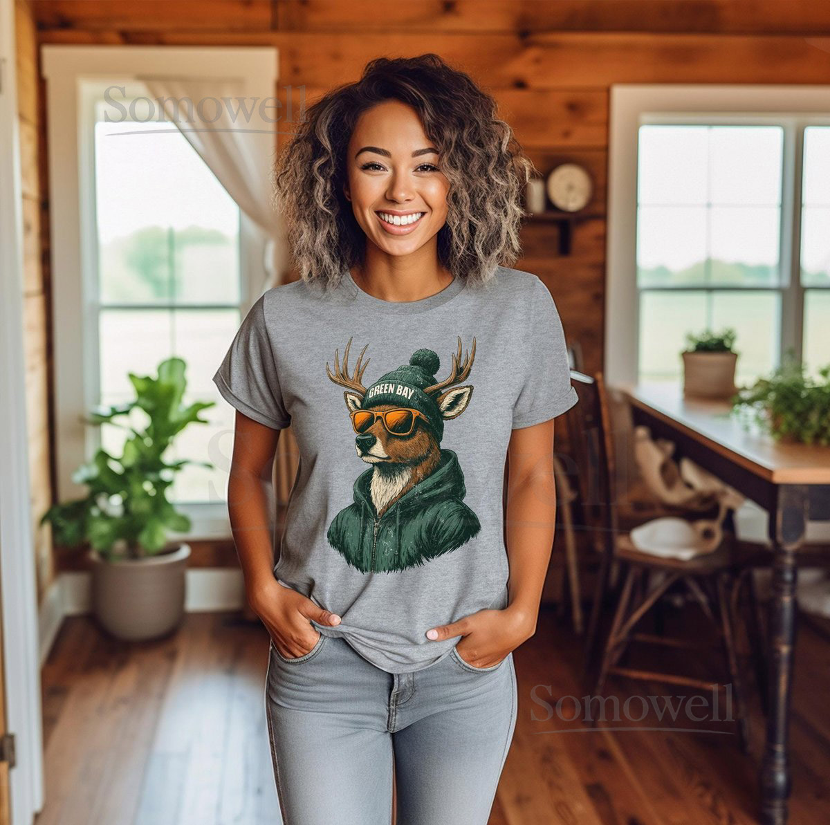 Green Bay Fan Cool Deer Graphic Unisex Softstyle T-Shirt_368