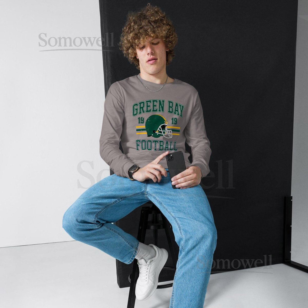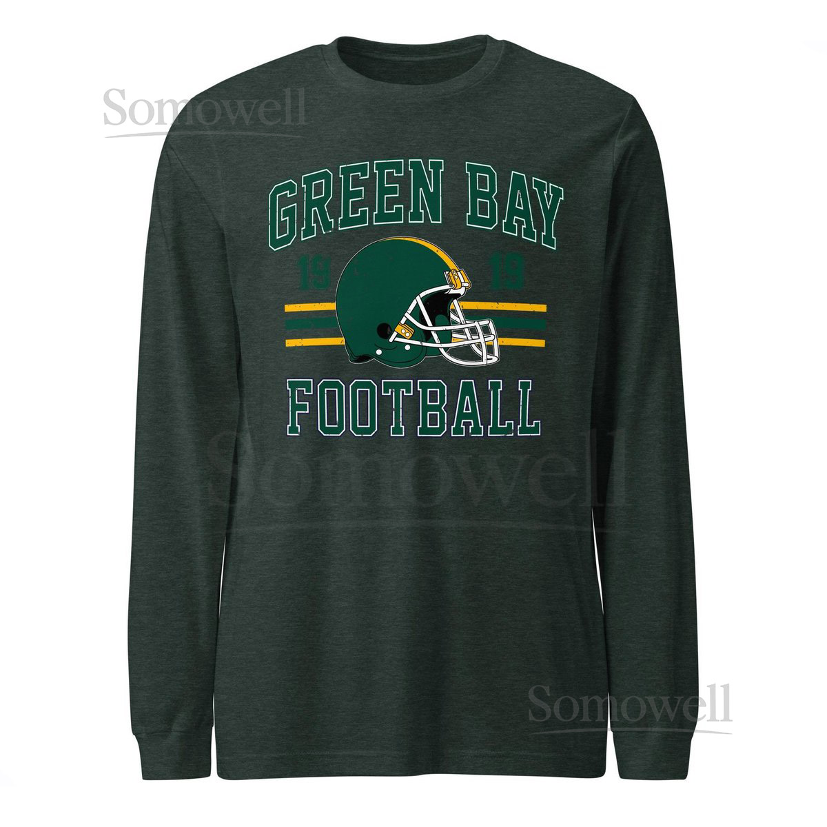 Green Bay Football T-Shirt Distressed Long Sleeve Tee Vintage Style_426