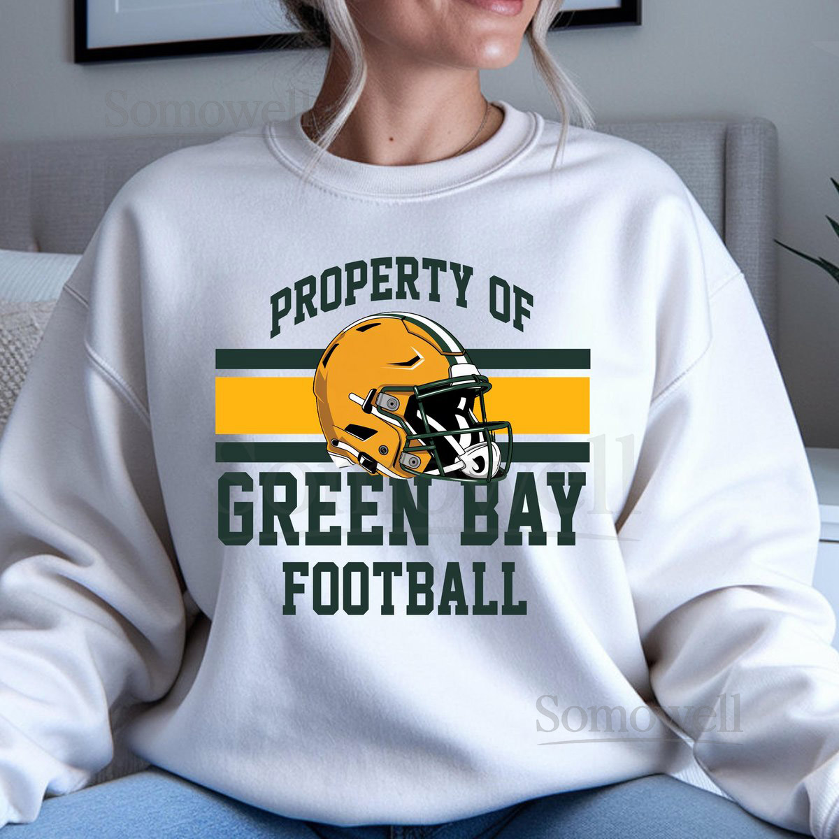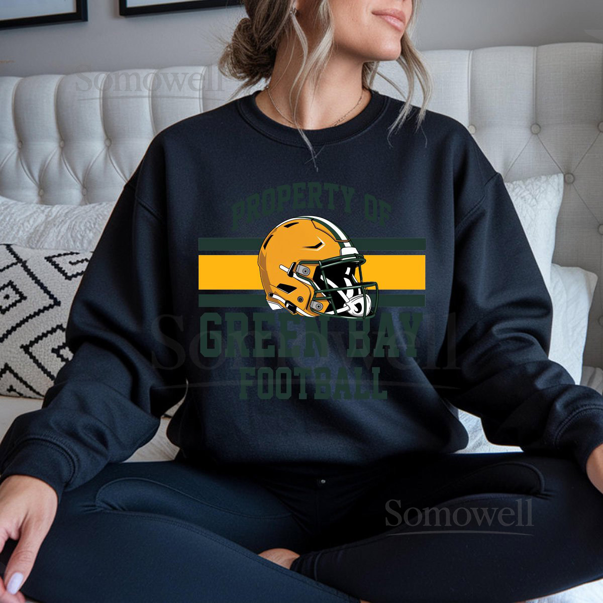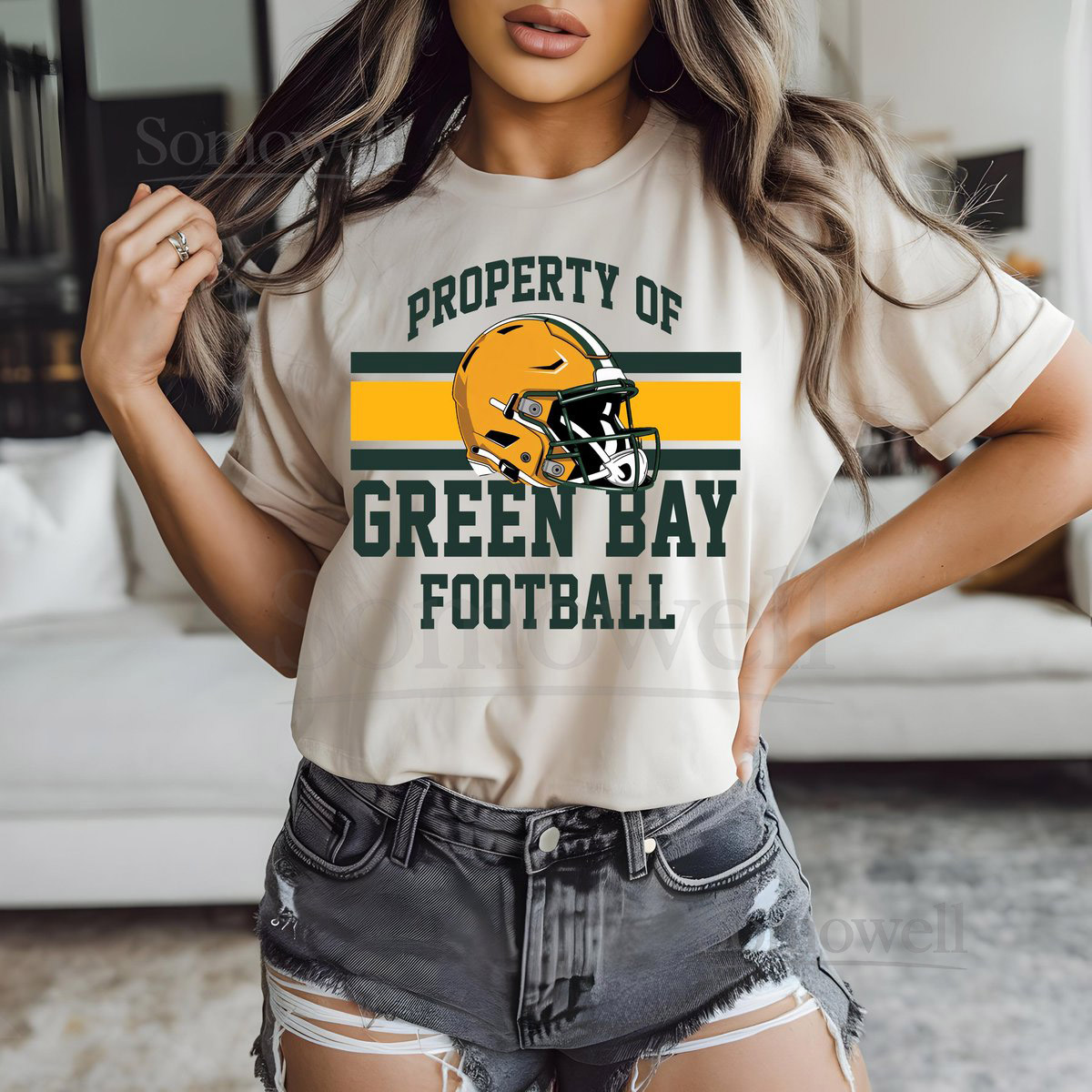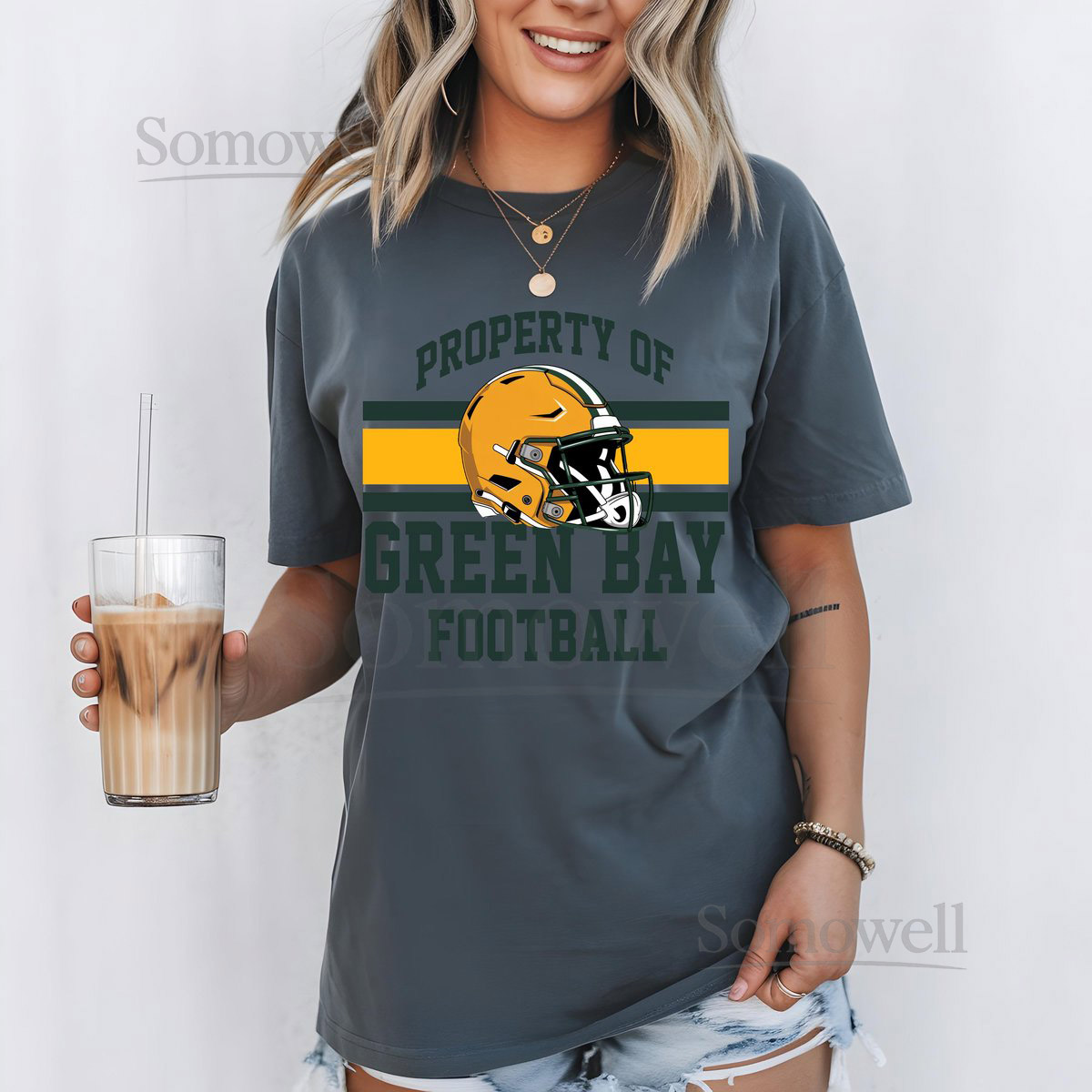 Green Bay Football T-Shirt Sweatshirt Packers Helmet Property Of Comfort Colors Fan Apparel Gift For Football Fan_429