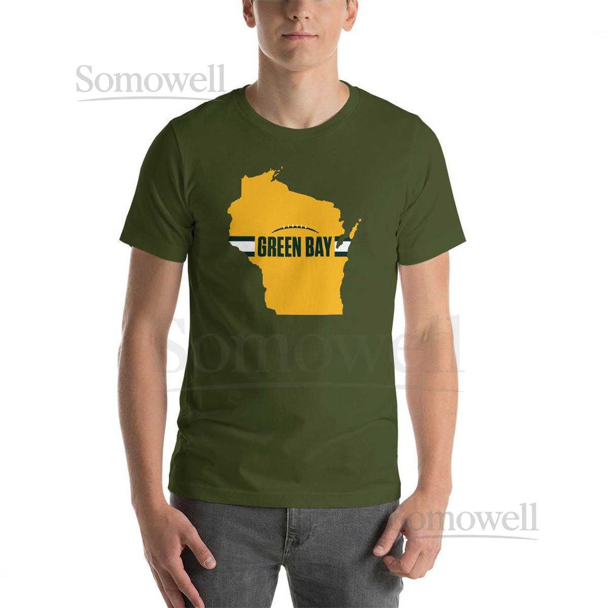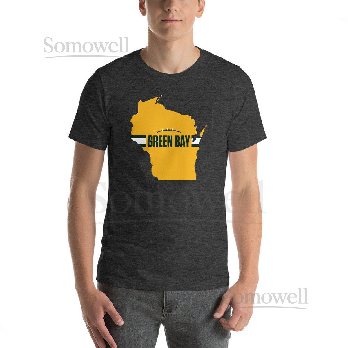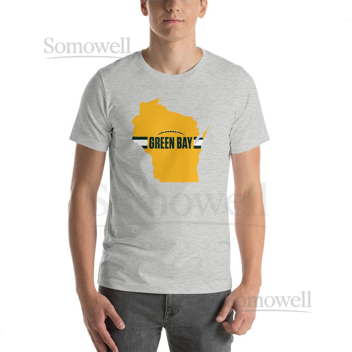 Green Bay Football Wisconsin Outline Short-Sleeve Unisex T-Shirt Yellow Design438
