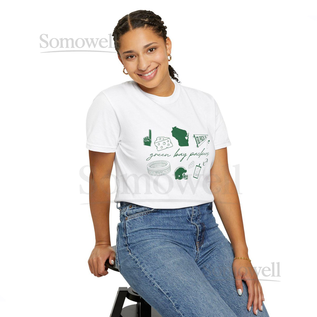Green Bay Packers Football T-Shirt Hand-Drawn Doodle Design – Green Bay Packers Unisex Garment-Dyed T-Shirt – Cheesehead Packers Womens Tee_460
