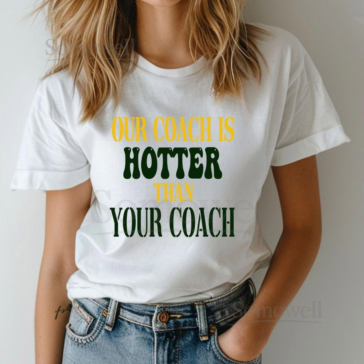 Green Bay Packers T-Shirt Our Coach is Hotter Than YoursMade to Order_483