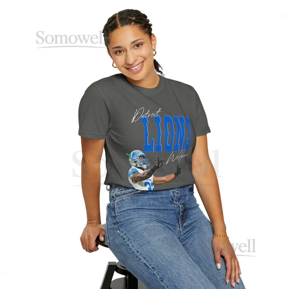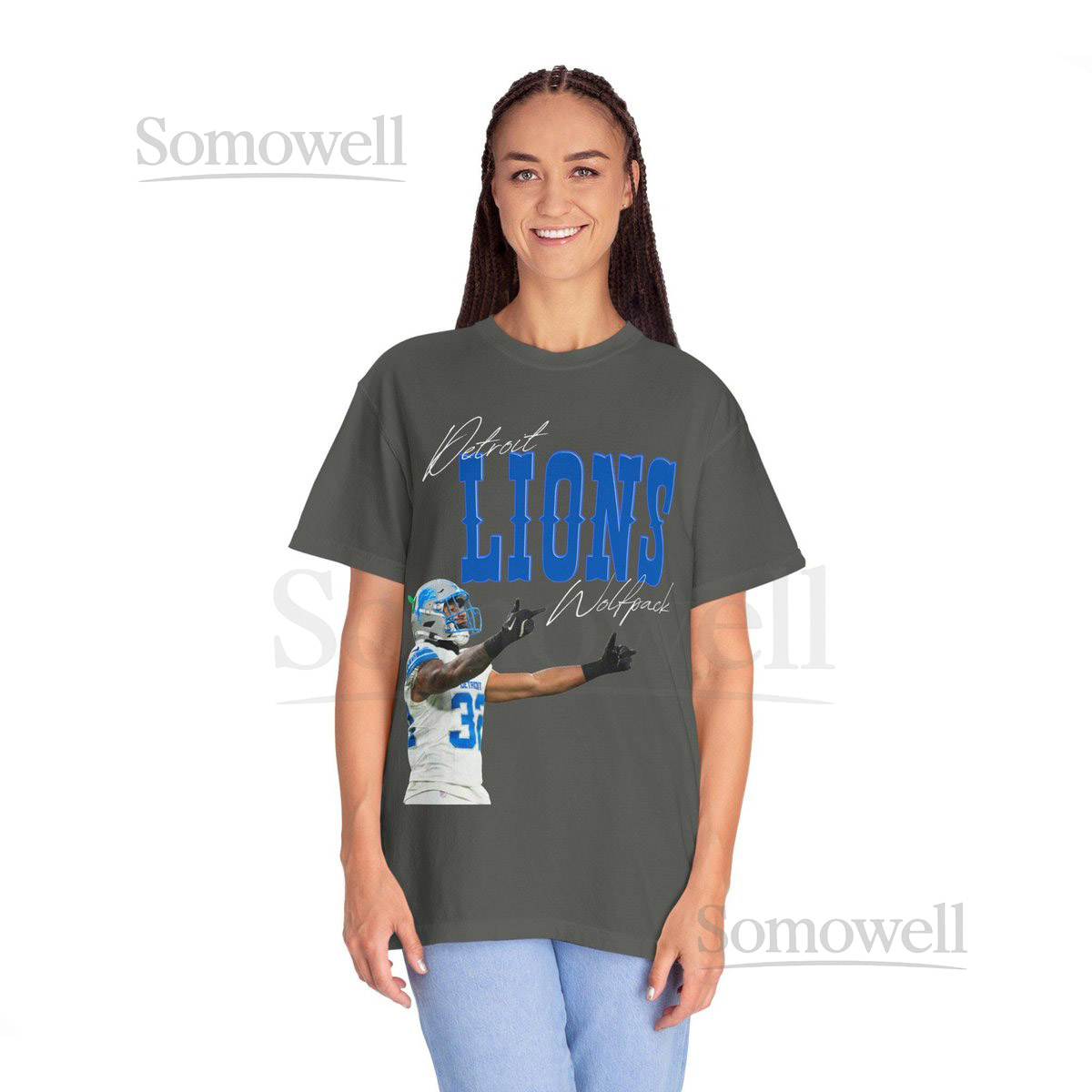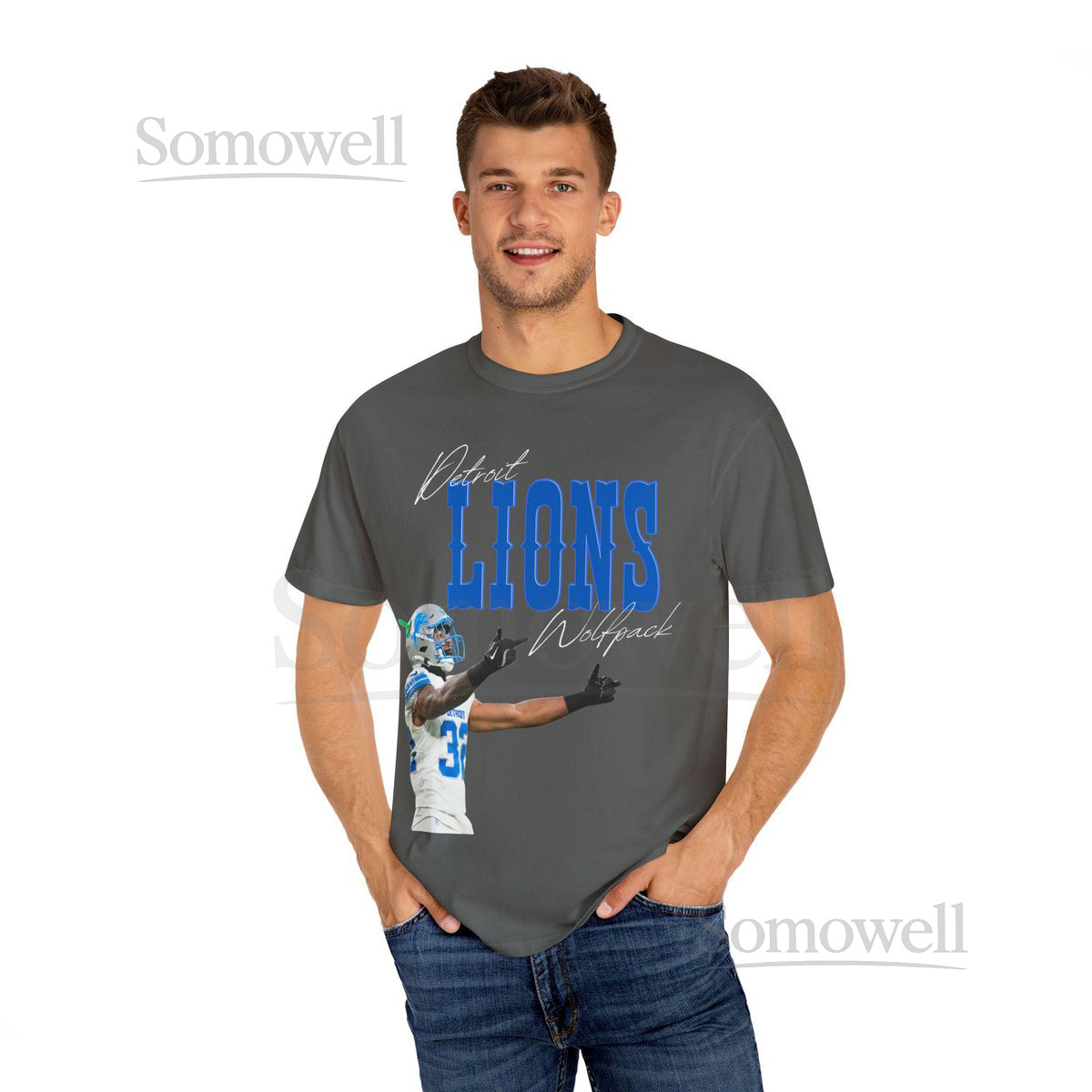Vintage Detroit Lions Logo with Brian Branch 1 Finger Salute Unisex Garment-Dyed T-shirt_714