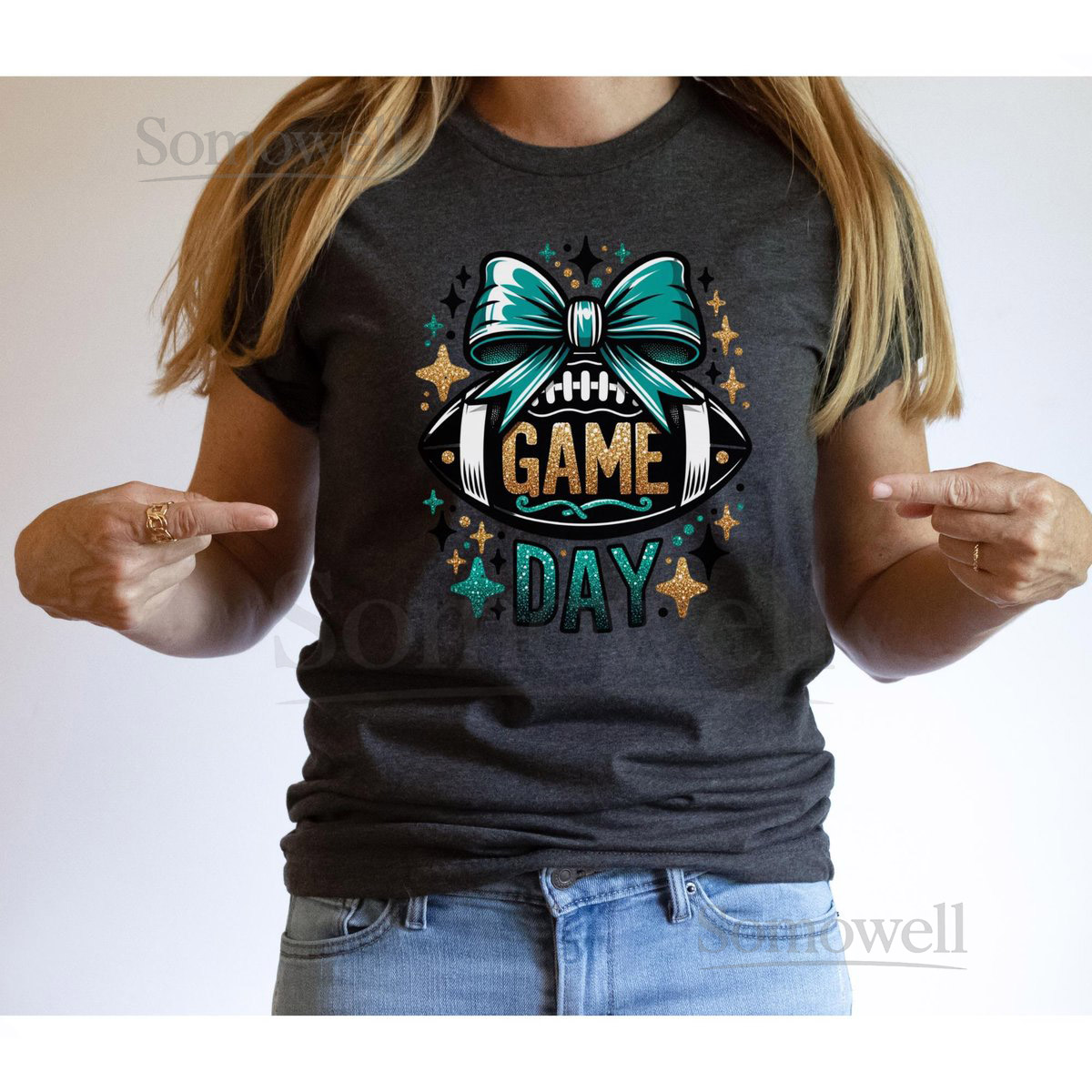 Game Day T-Shirt Jaguar Football Fan Shirt Teal Black Gold Bow _155