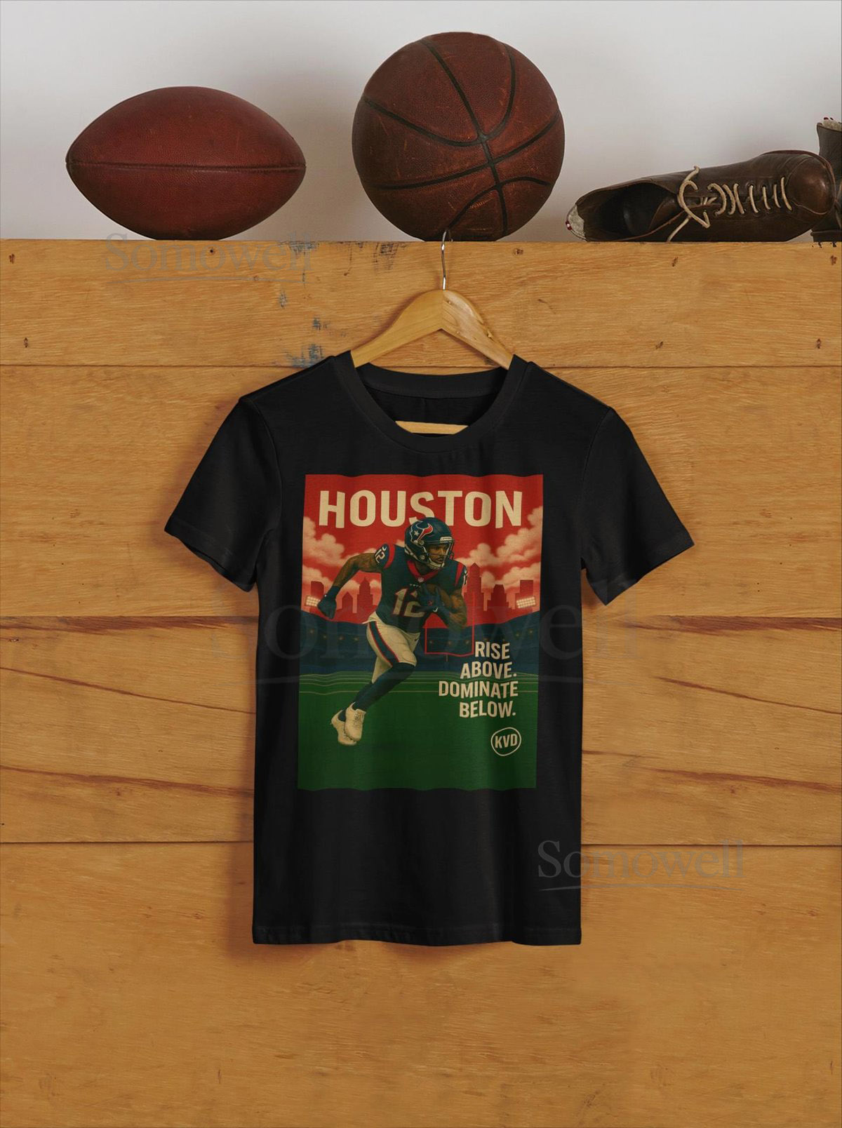 HOU – Houston Football Skyline T-Shirt Rise Above. Dominate Below. Pro Football Graphic Tee Sports Fa_206