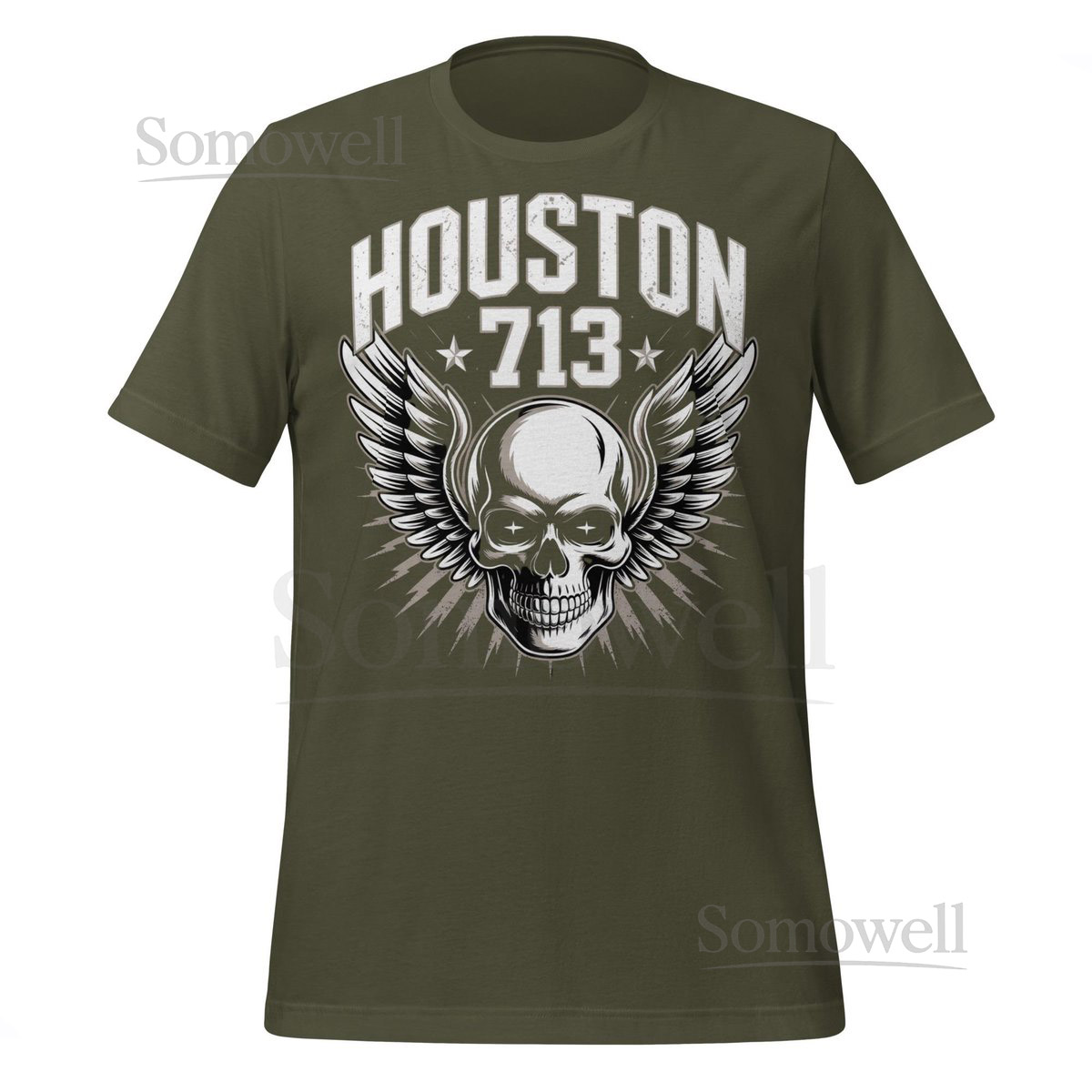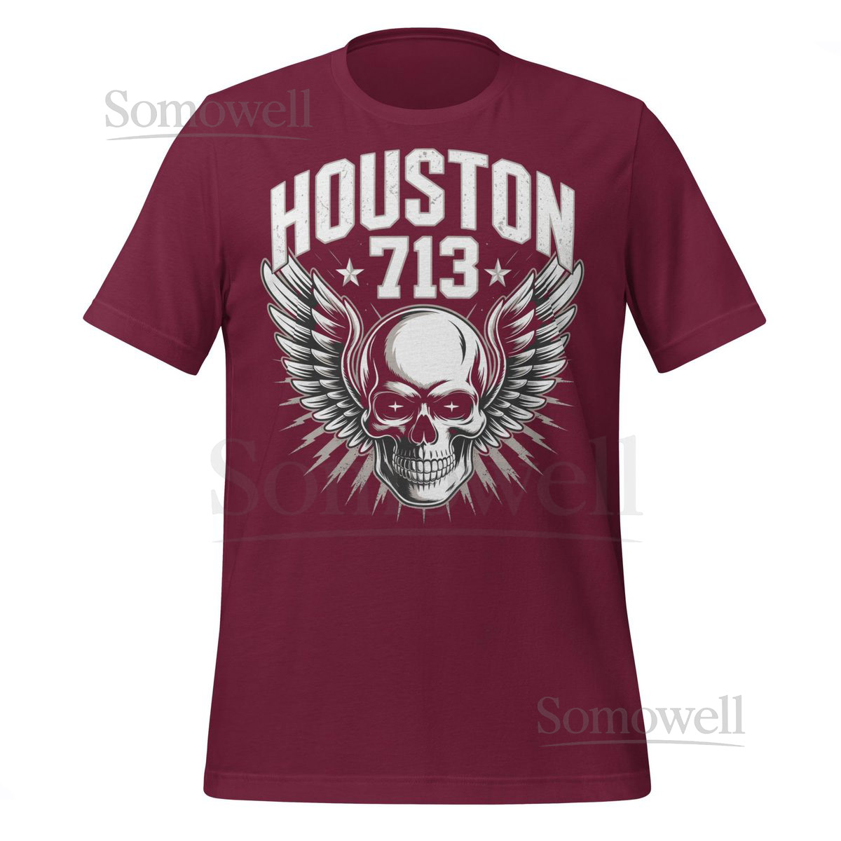Houston 713 Skull T-Shirt with Wings Bold Urban Streetwear Texas Area Code Graphic Tee Gift for Men Women H-Town Pride Cl_209
