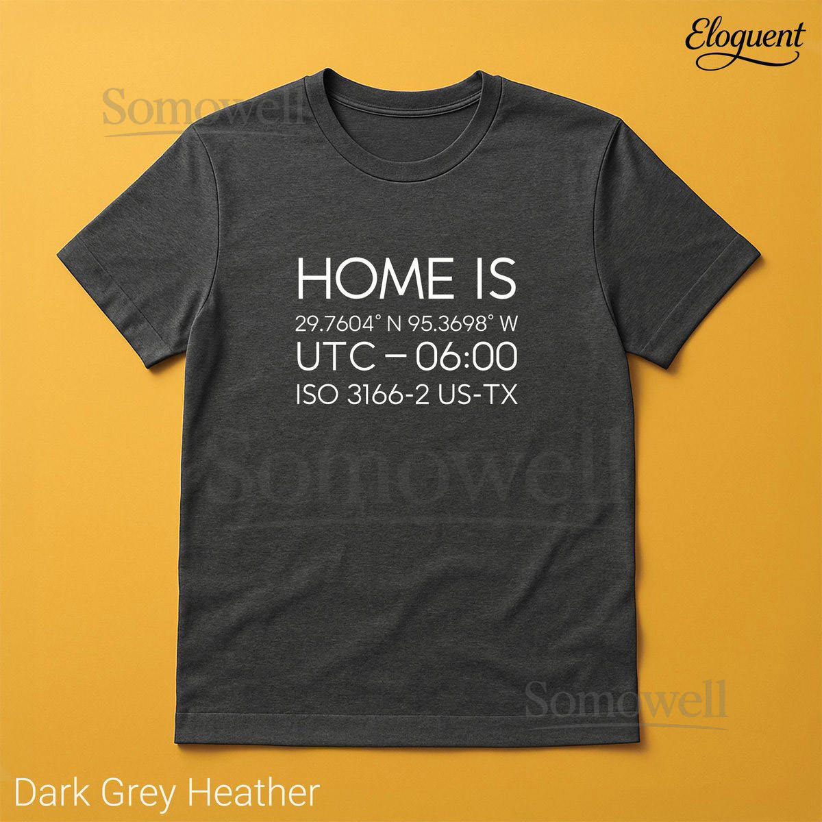 Home Is Houston Shirt City Timezone Tee Minimalist Graphic Streetwear Black DarkGreyHeather_205