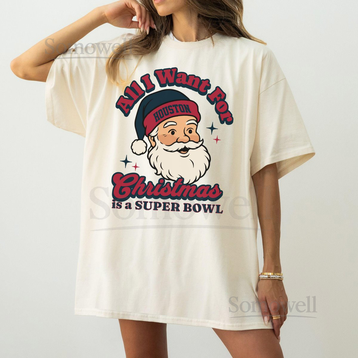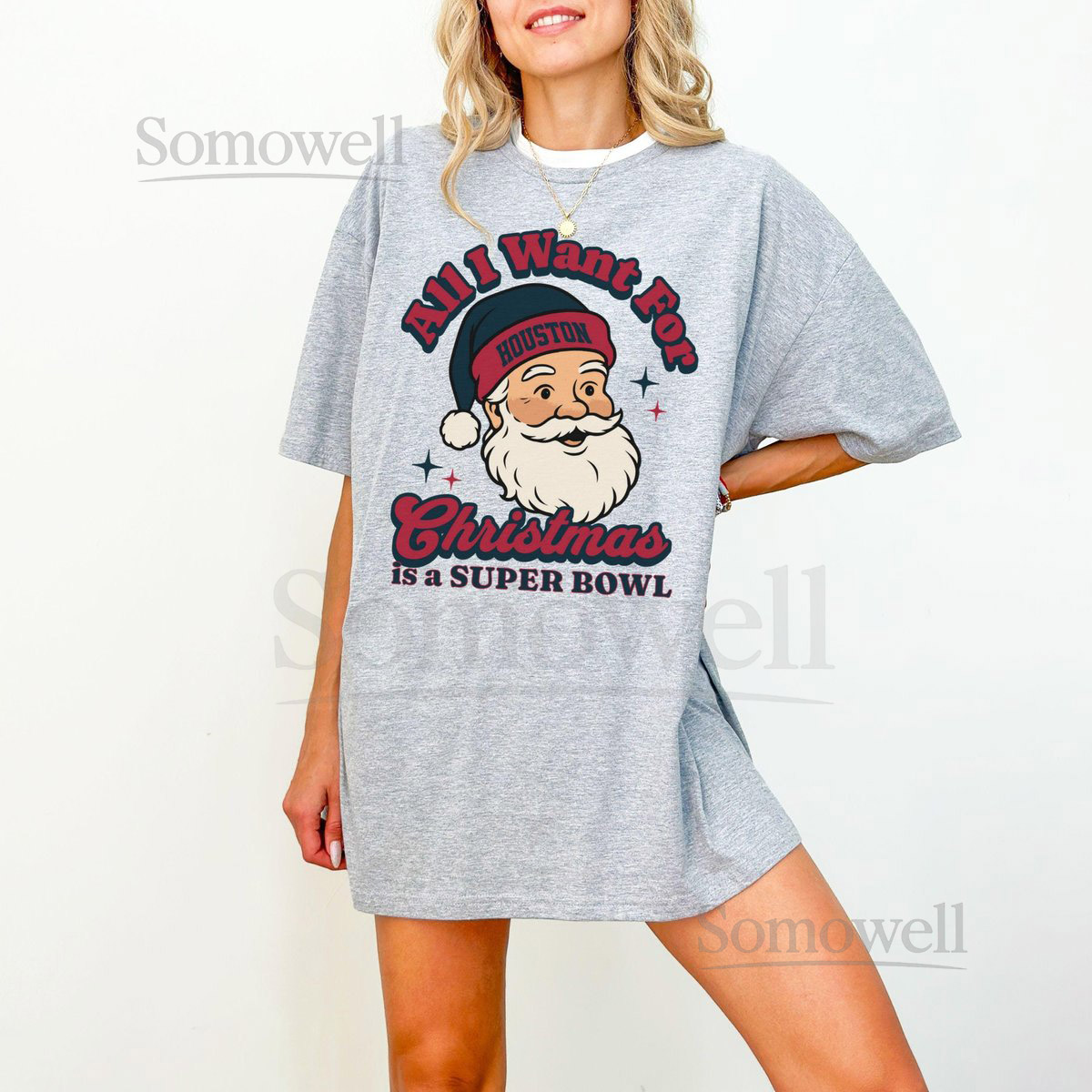 Houston Football Christmas Super Bowl T-Shirt Retro Texan Football Tee Holiday Football Fan Shirt Festive Sports Apparel Santa_227