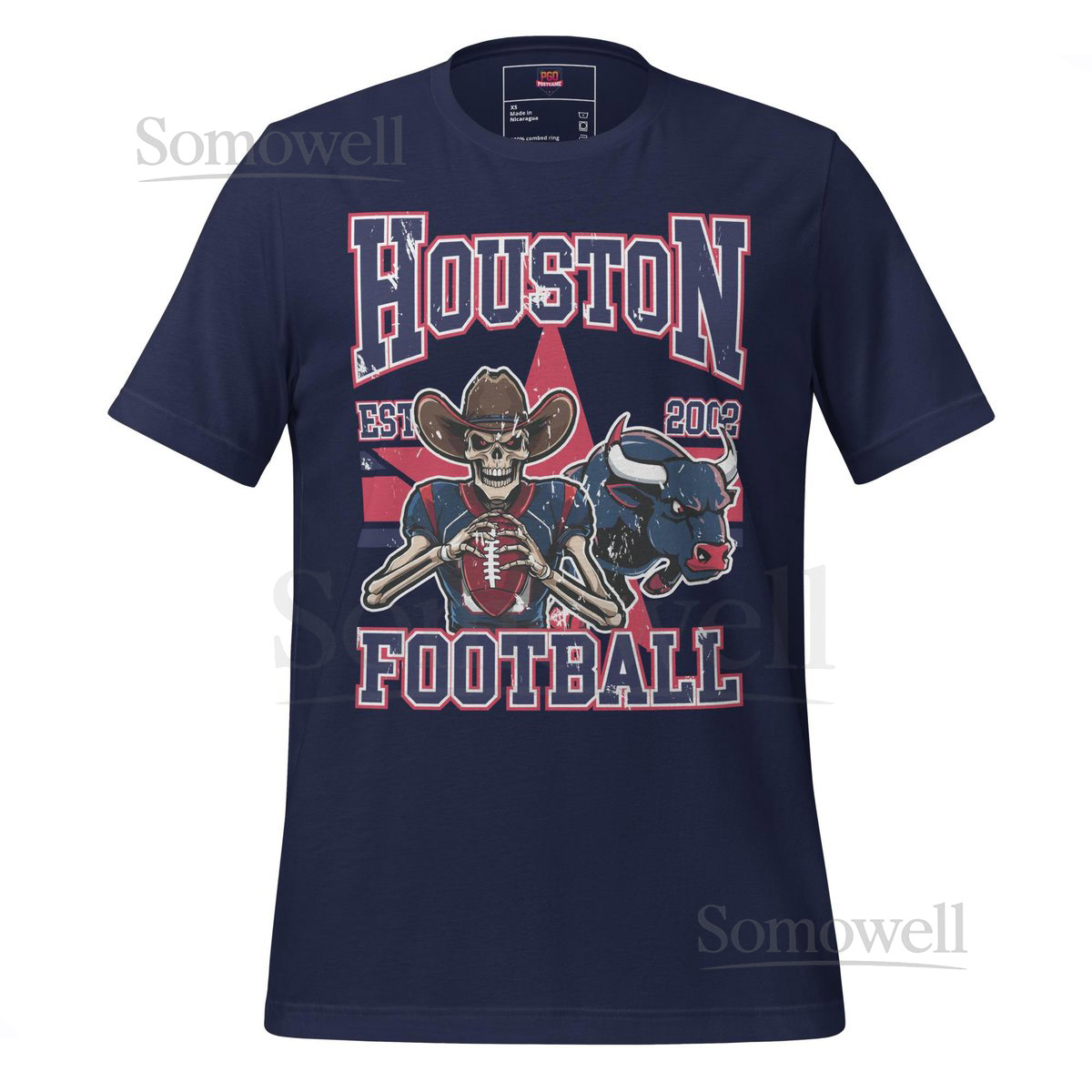 Houston Football Fan Gift T-Shirt Skeleton Player H-Town Sports A_229