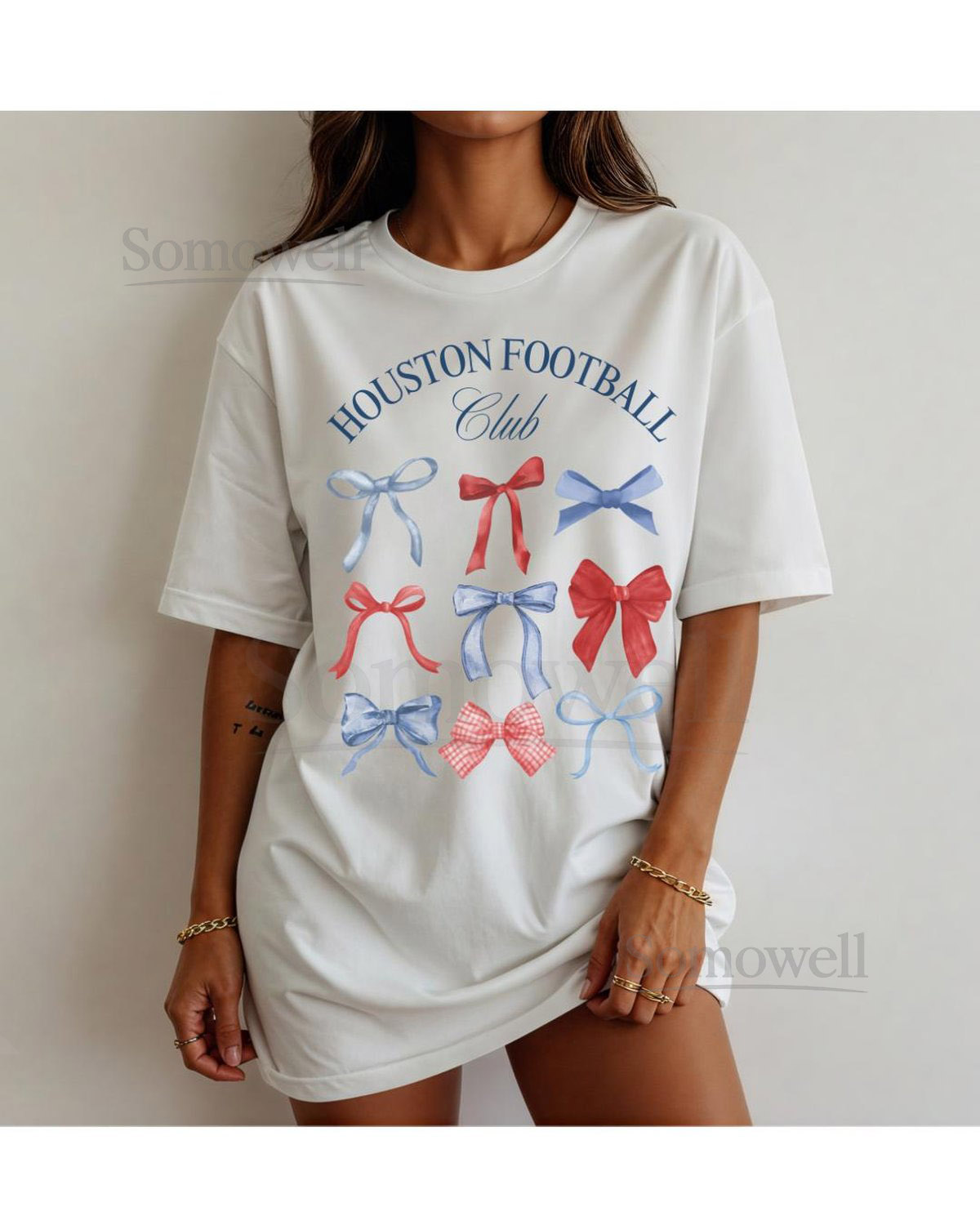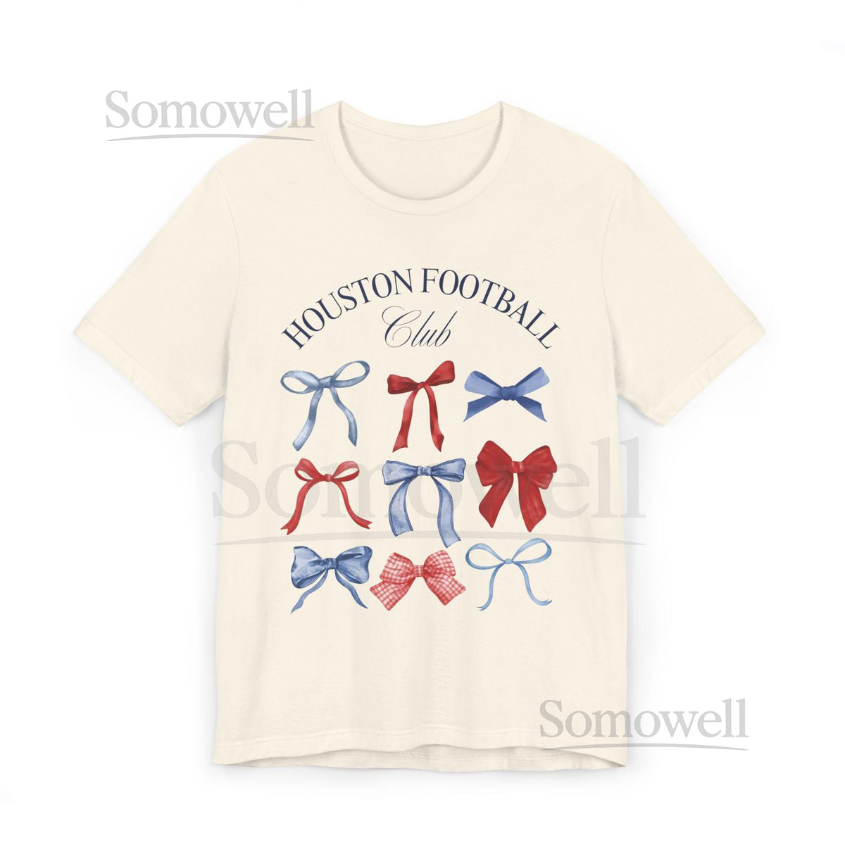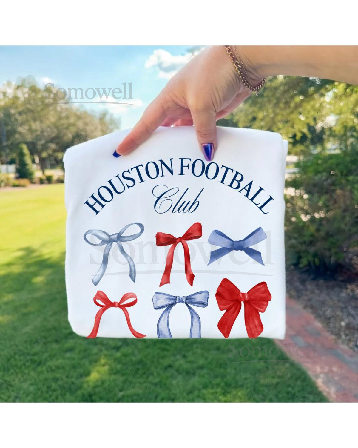 Houston Football Fan Tee Red Blue Watercolor Bow – Game Day_232