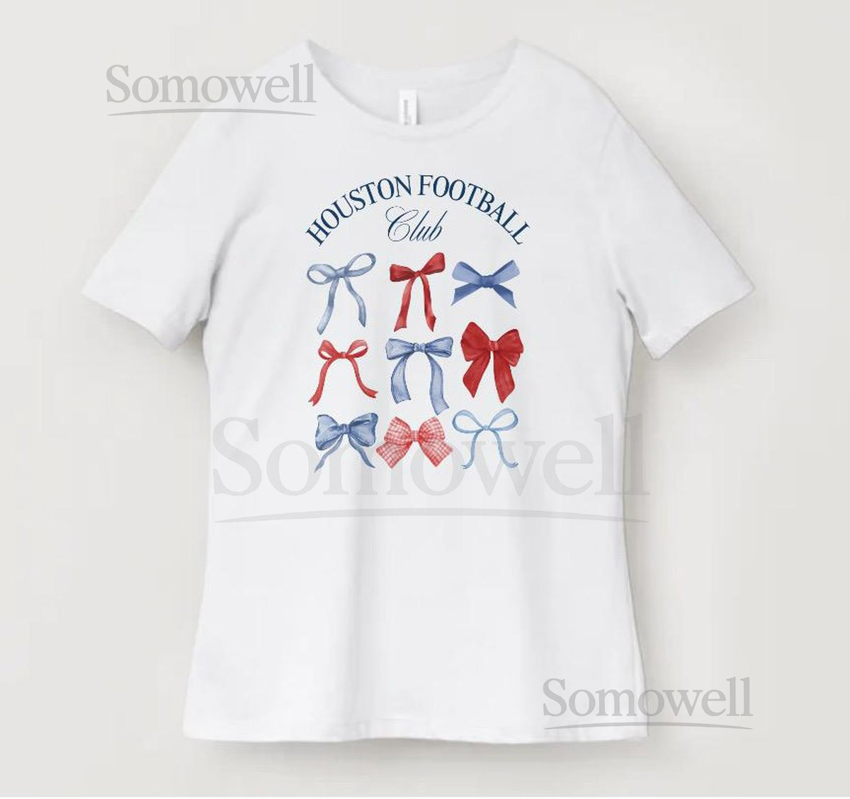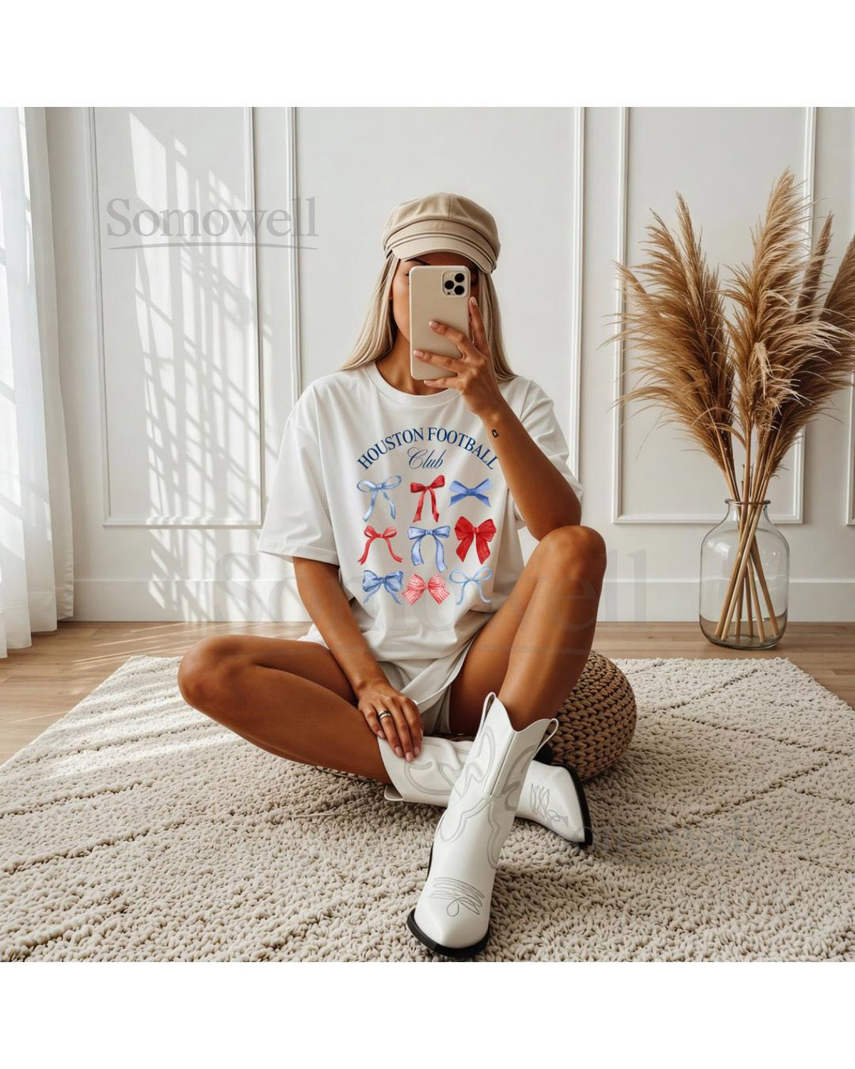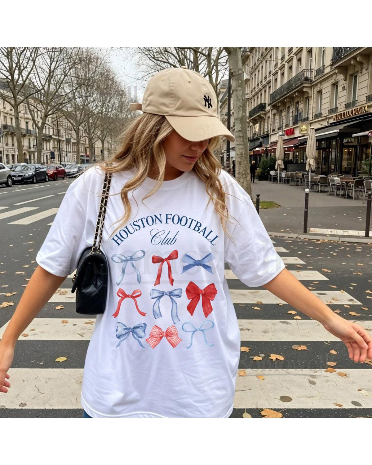 Houston Football Fan Tee Red Blue Watercolor Bow – Game Day_232