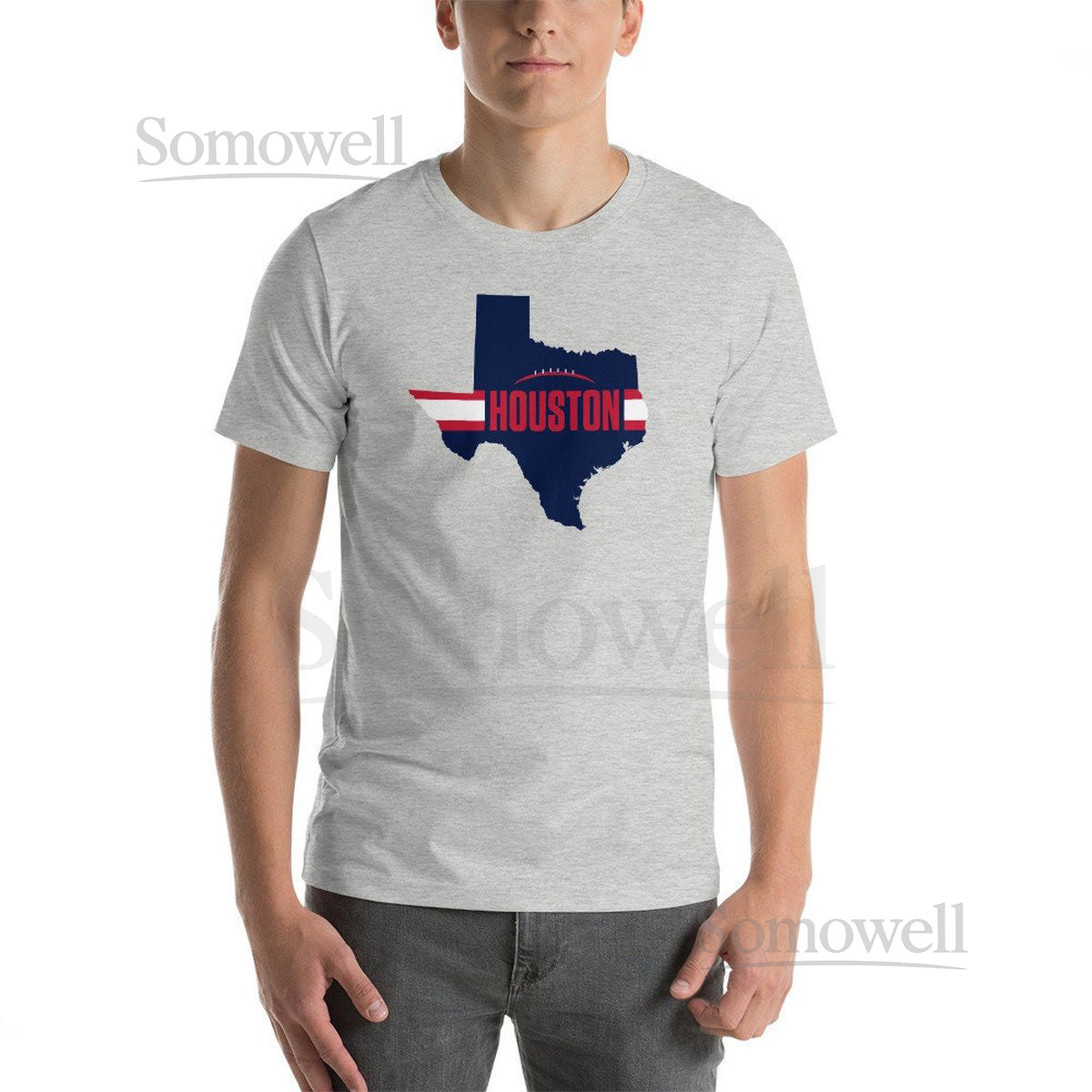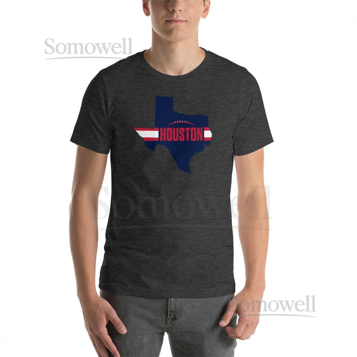 Houston Football Texas Outline Short-Sleeve Unisex T-Shirt Blue_261
