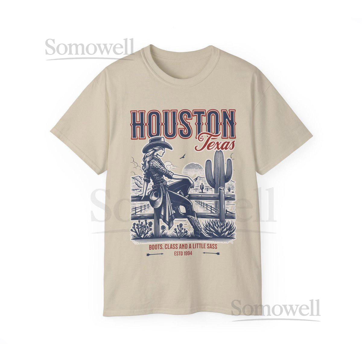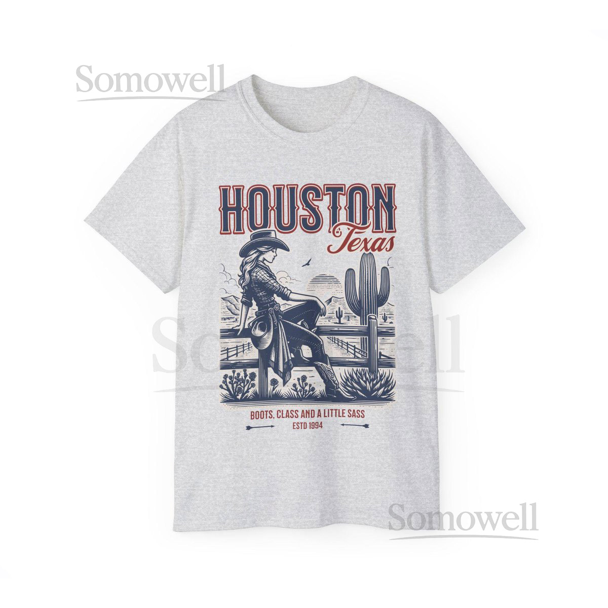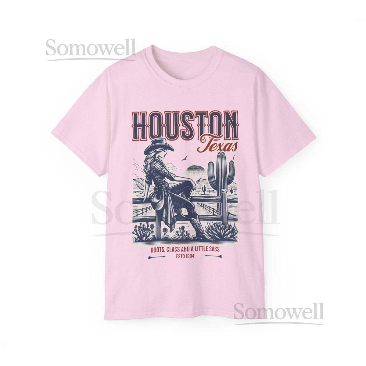 Houston Texas Cowgirl T-shirt Retro Western Graph_354