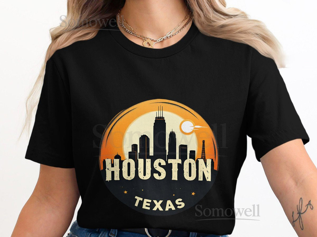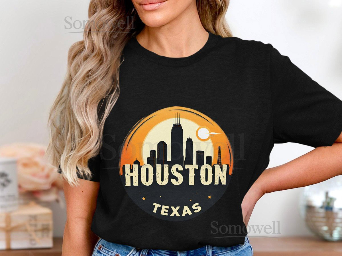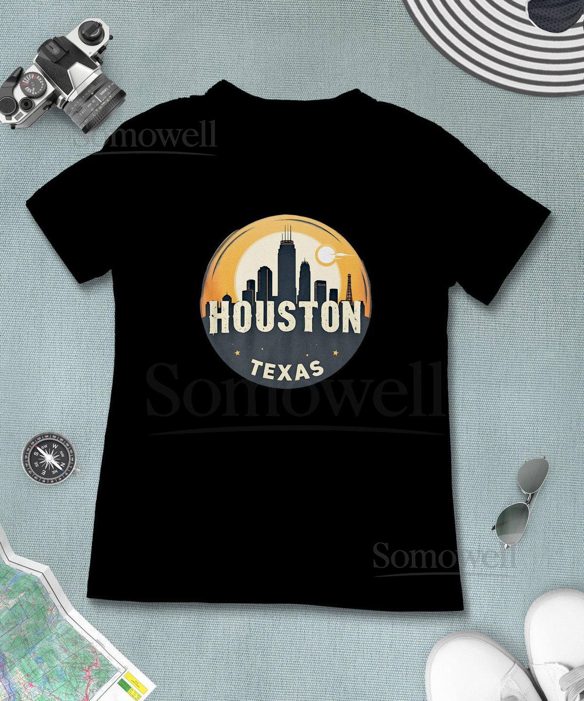 Houston Texas Retro Cityscape Design T-Shirt vintage Houston skyline graphic tee classic city view Houston t_362