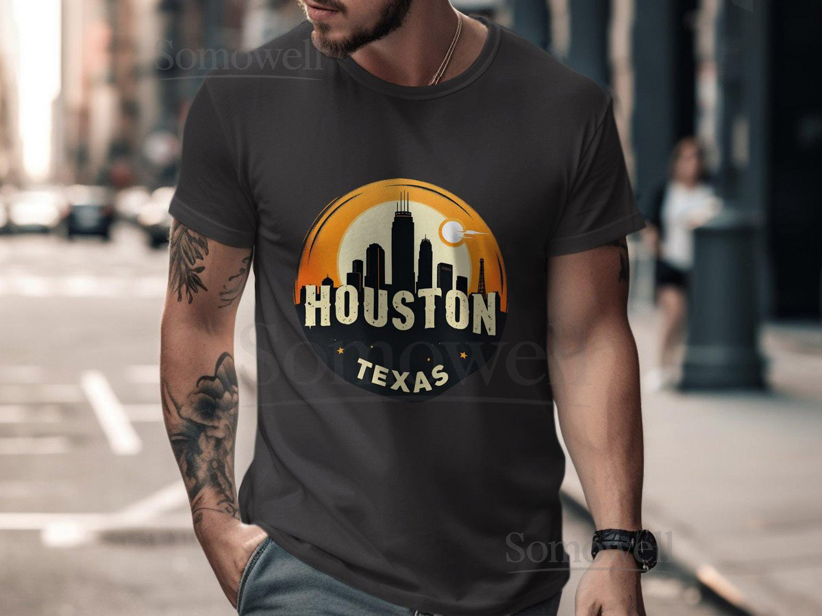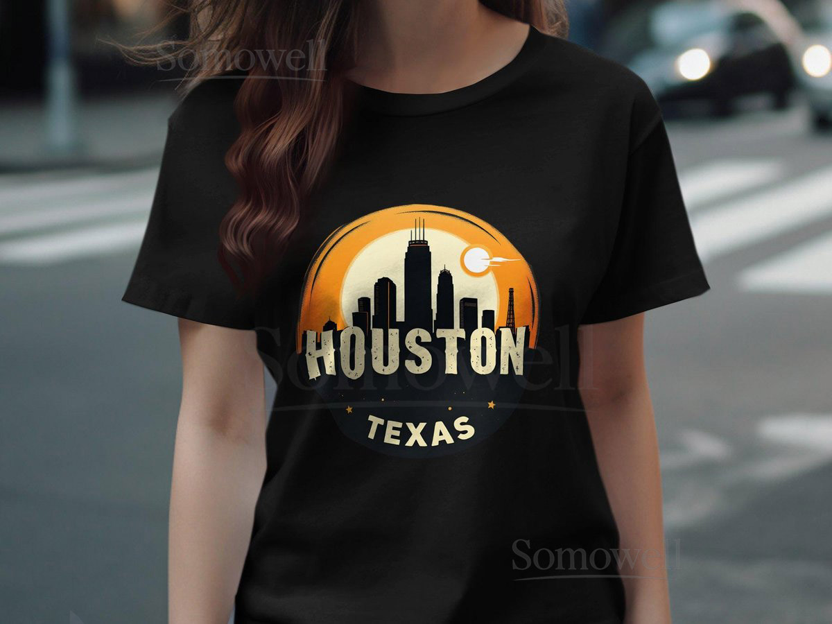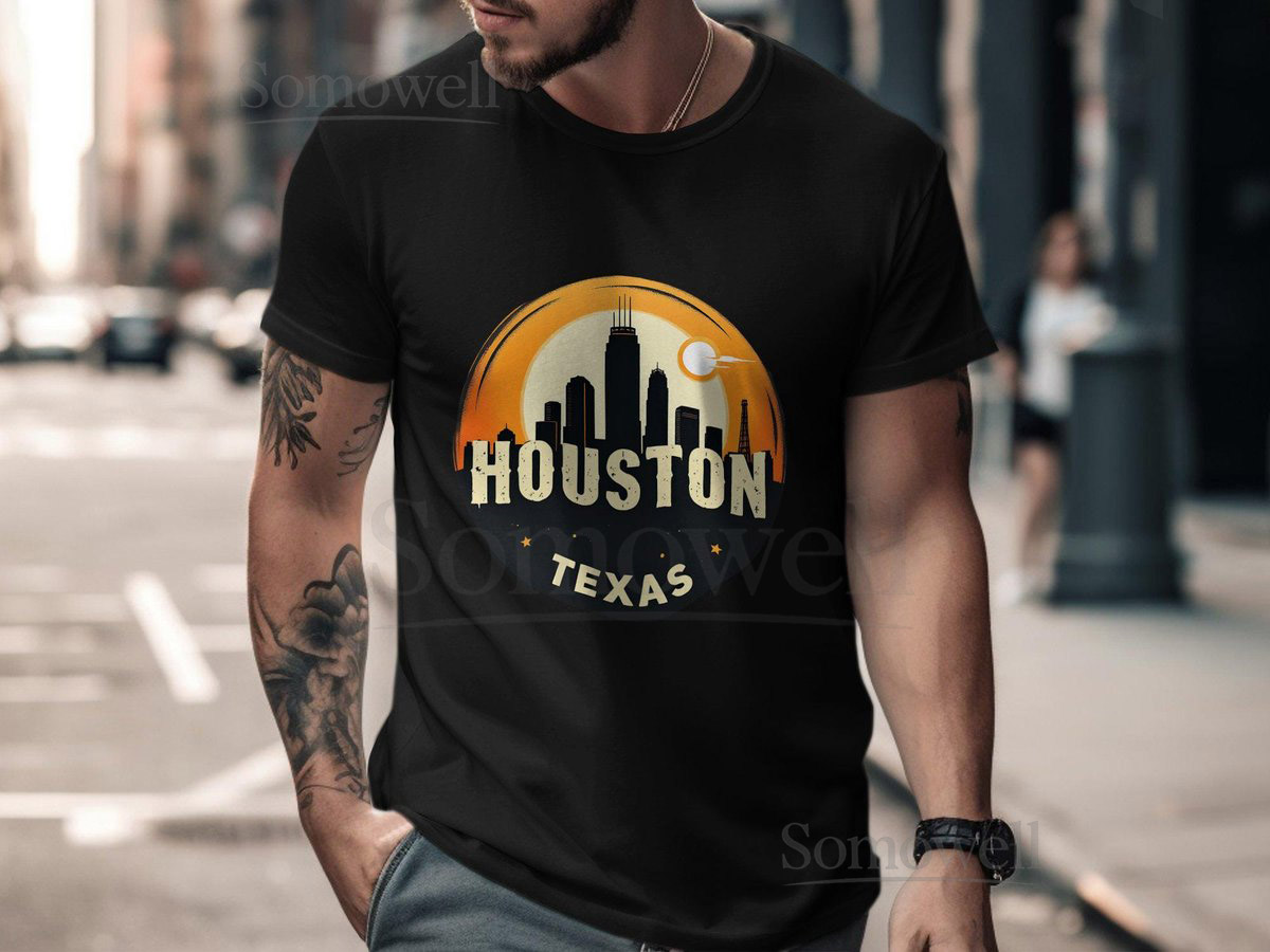Houston Texas Retro Cityscape Design T-Shirt vintage Houston skyline graphic tee classic city view Houston t_362
