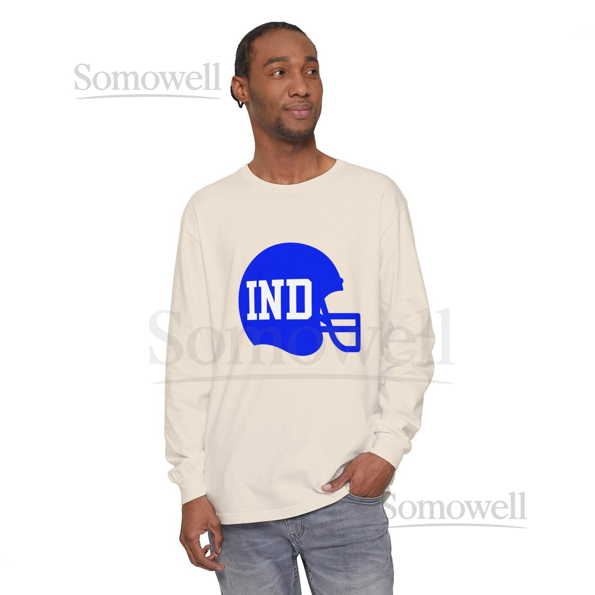 Indianapolis Colts Long Sleeve T-Shirt – IND Football Helmet Comfort Colors Football _475