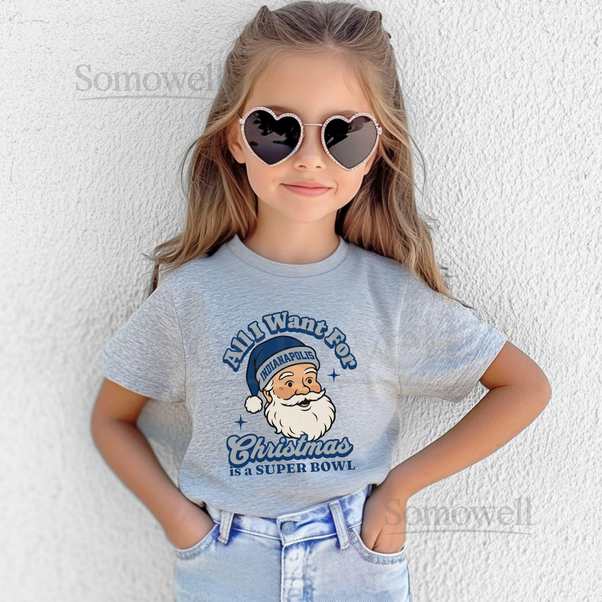 Indianapolis Football All I Want For Christmas Is A Super Bowl T-Shirt Toddler Retro Colt Tee Holiday Santa Football Fan Shirt Ga_486