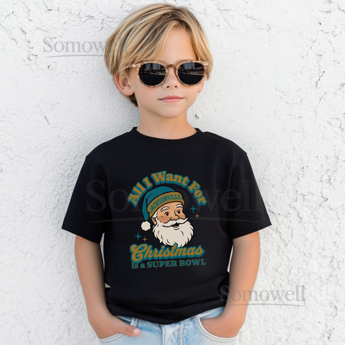 Jacksonville Football All I Want For Christmas Is A Super Bowl T-Shirt Toddler Retro Jaguar Tee Holiday Santa Football Fan Shirt Ga_576