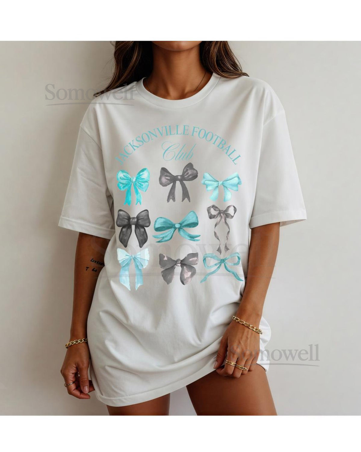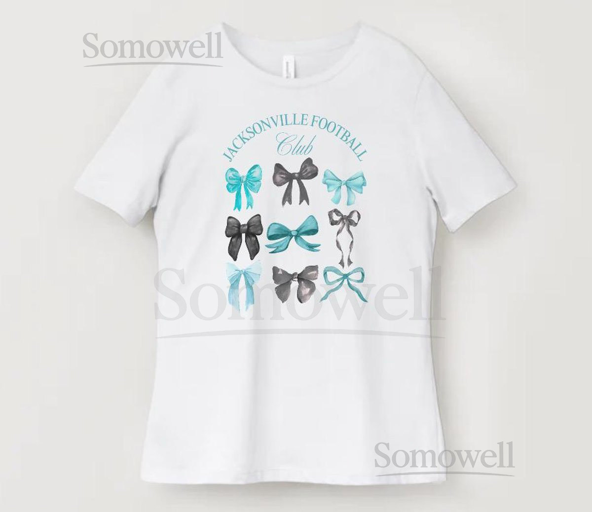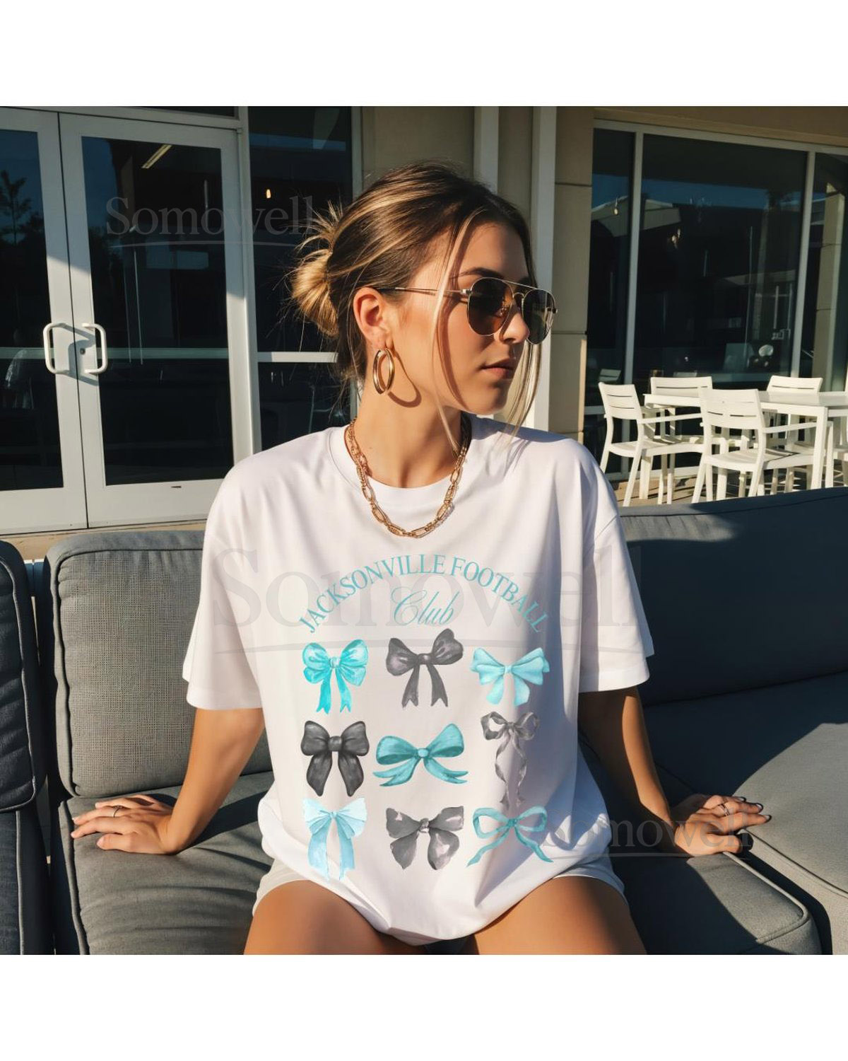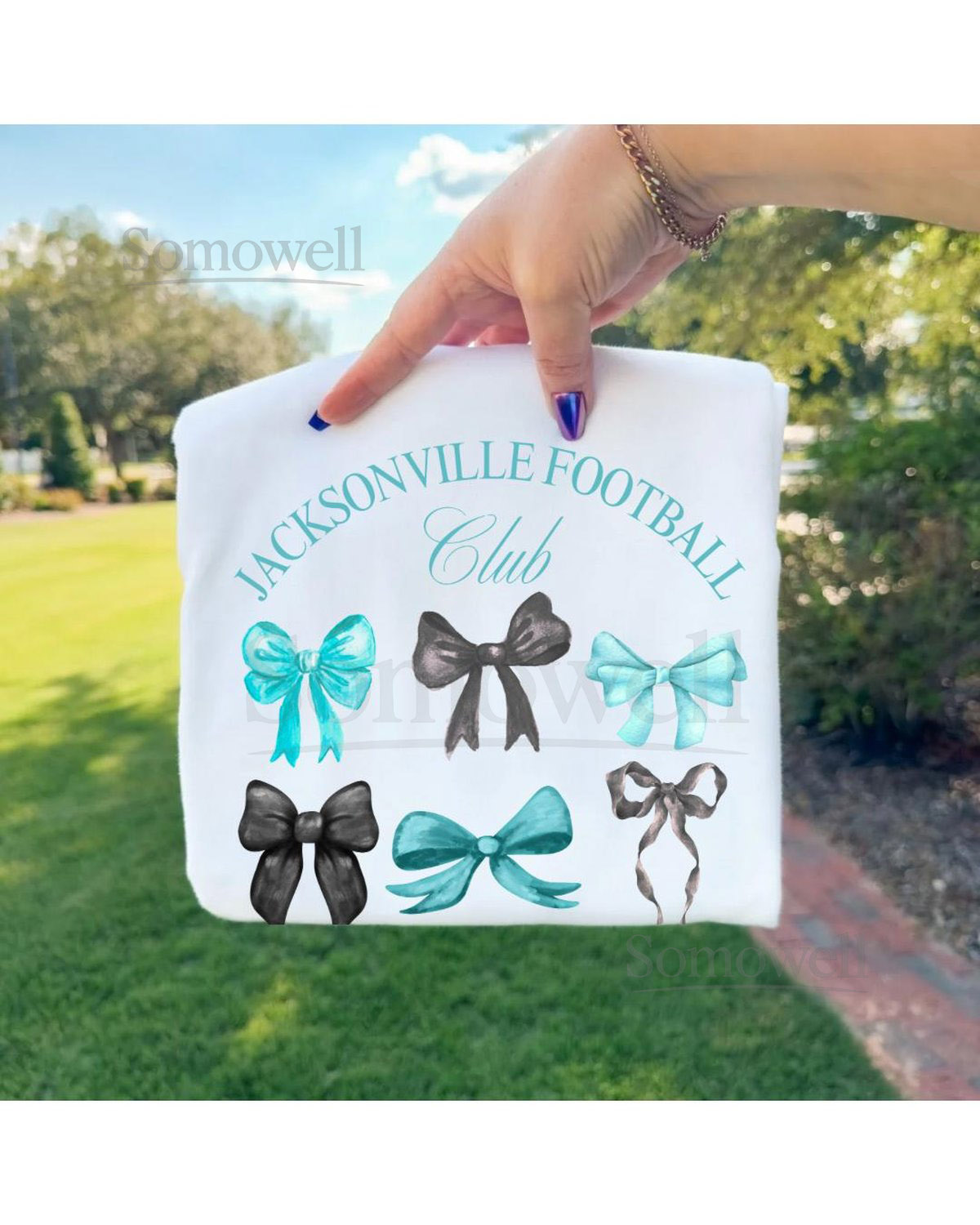 Jacksonville Football Bow Tee Teal Black Coquette Game Day_581