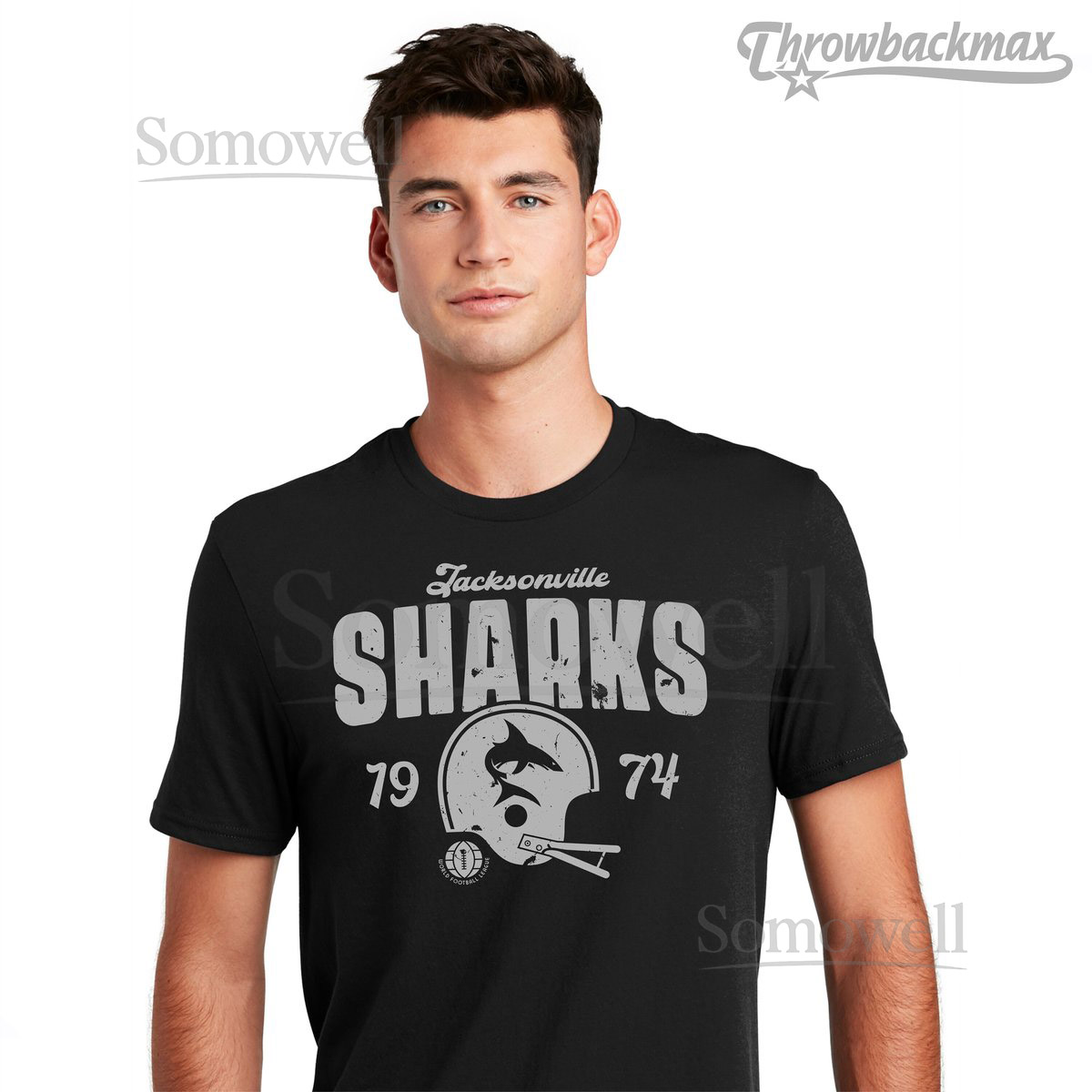 Jacksonville Sharks 1974 Tee WFL Football Tri-Blen_680