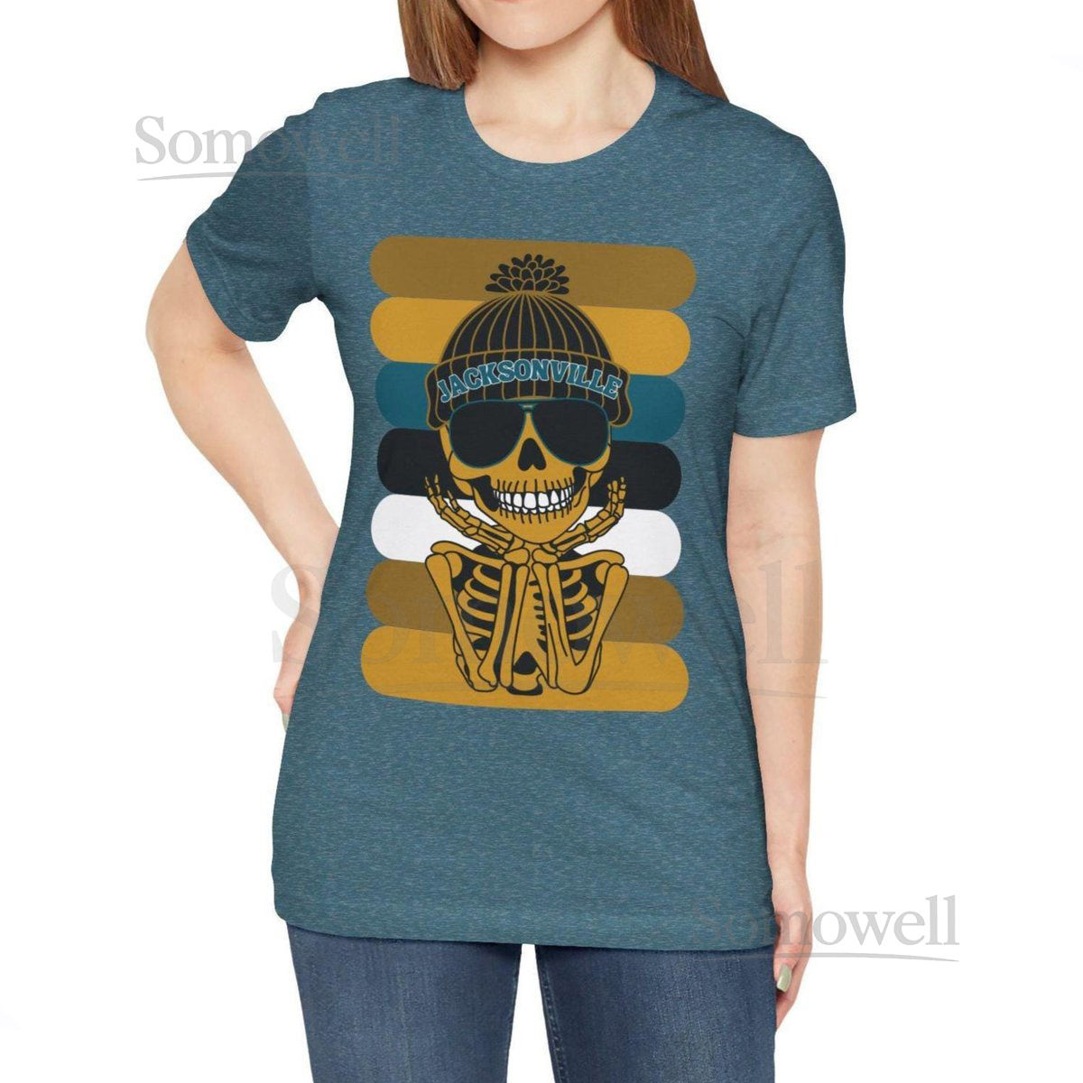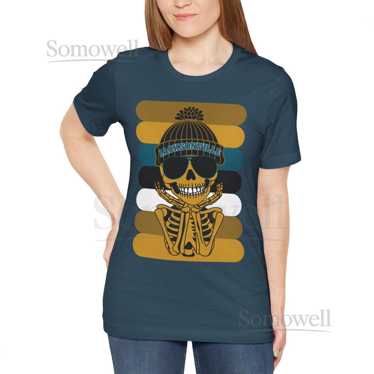 Jacksonville T-Shirt Trendy Football Fan Skeleton Graph_692