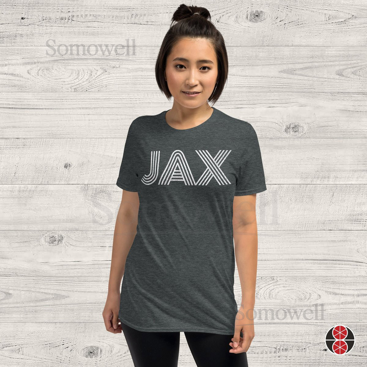 JAX Shirt Unisex in Black Navy Heather Retro 60s 70s Jacksonville FL design with vintage texture unique Jacksonvillle Florid_728