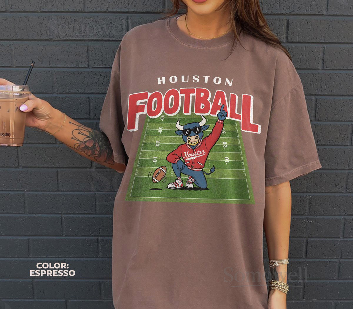 Vintage Houston Football Shirt Comfort Colors Texans Mascot Shirt Houston Texans Football Crewneck Tee Football ShirtTexans Game D_956