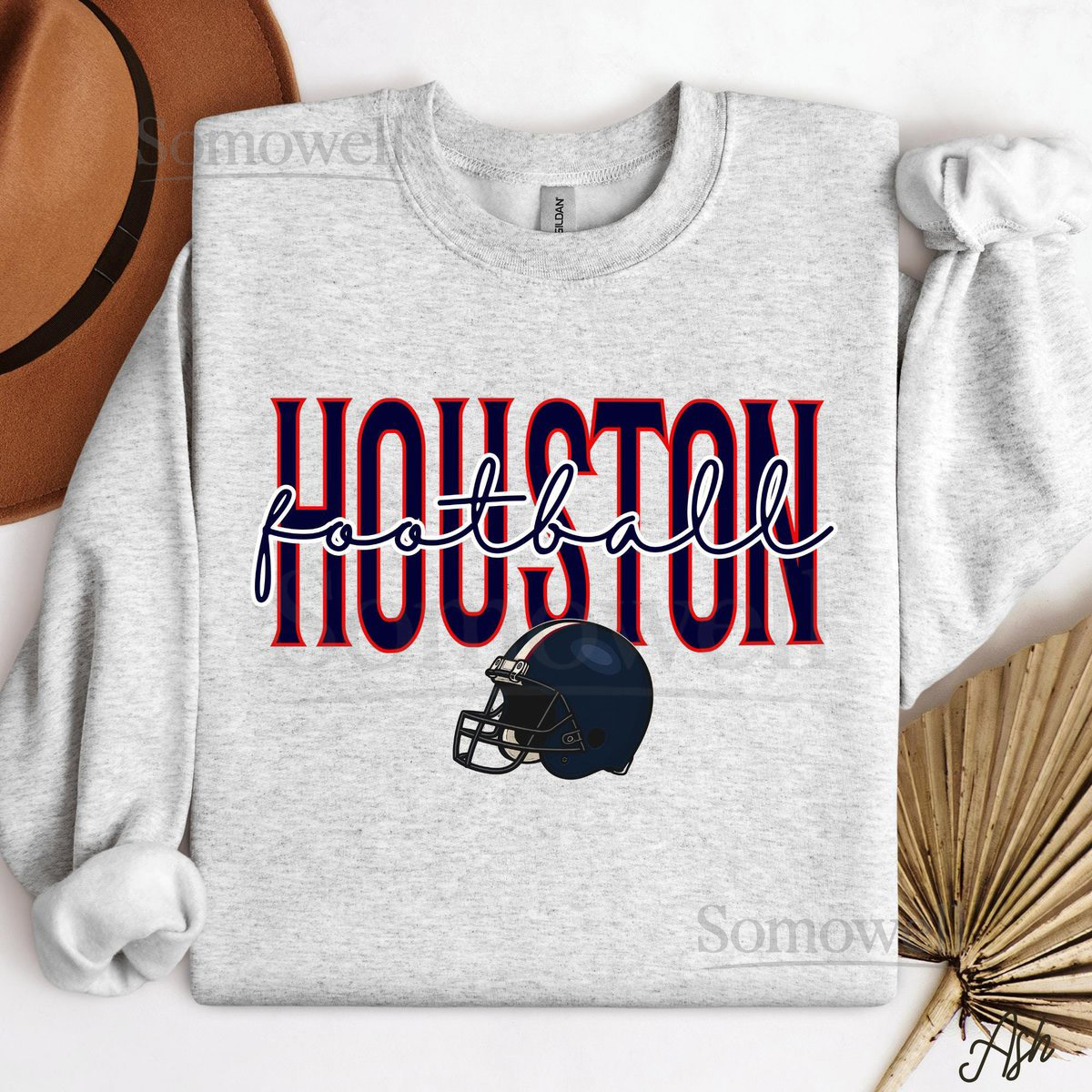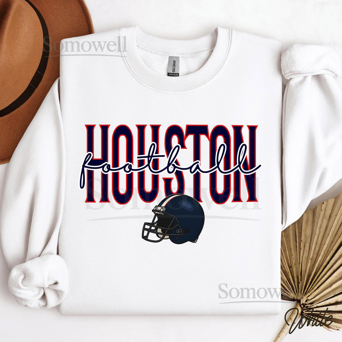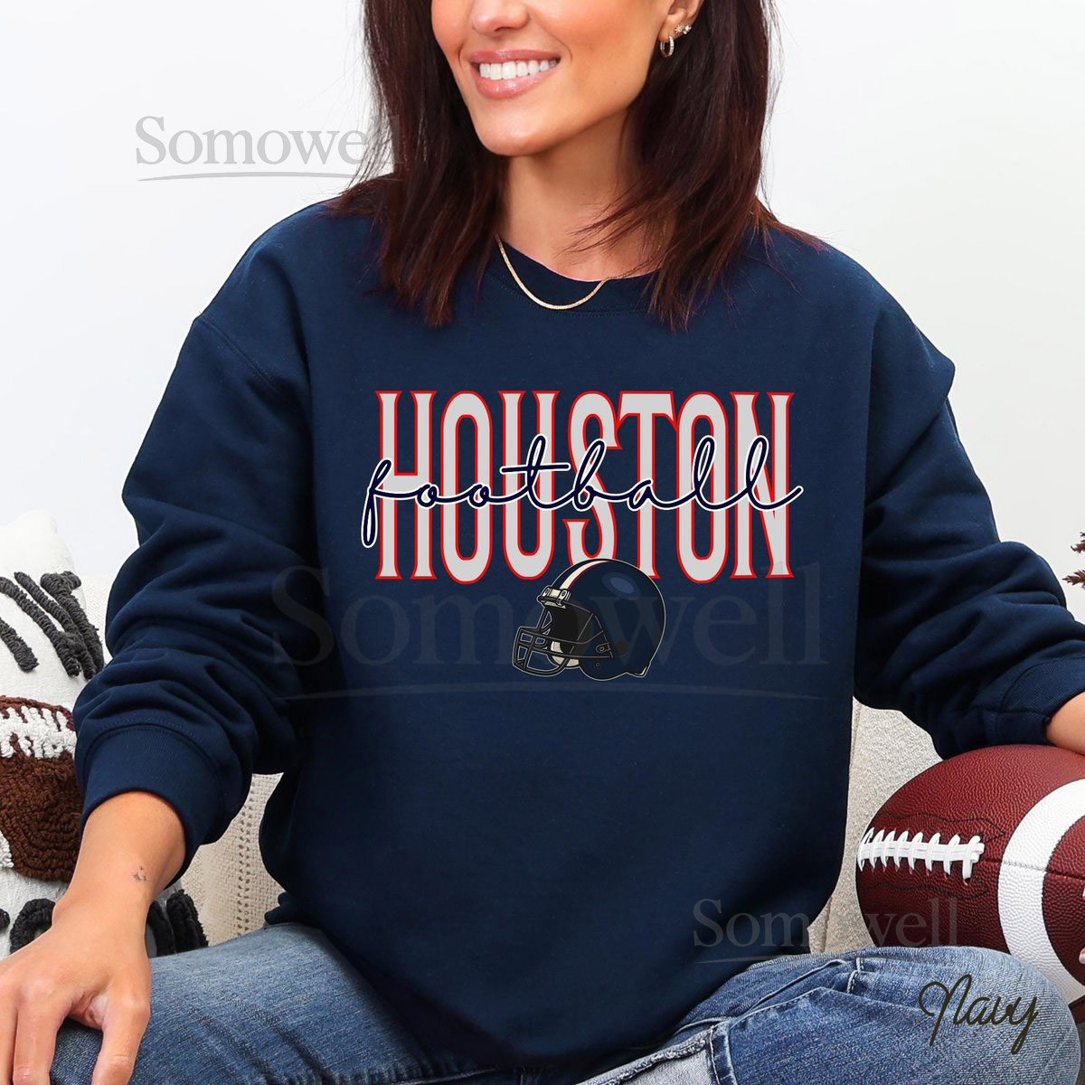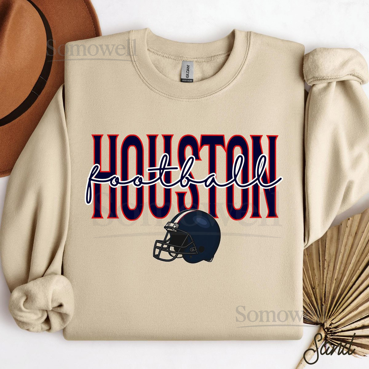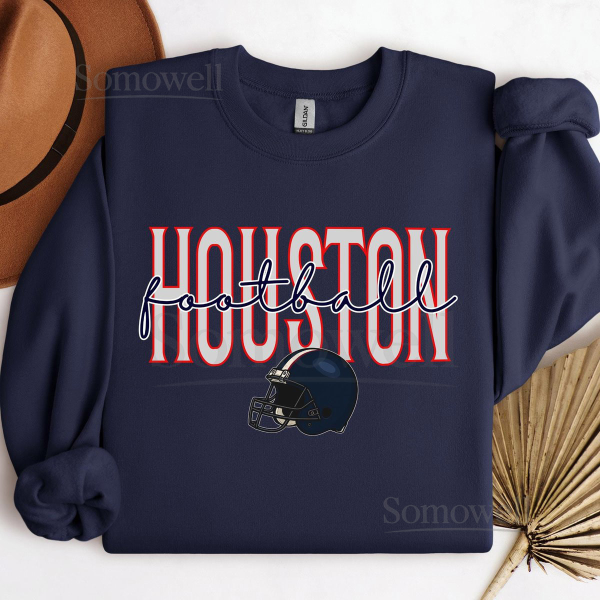 Houston Football Women Gameday Sweatshirt Gildan Crewneck GD18000 Oversized Football Pullover Tailgate Outfit Fall Sports Fa_275