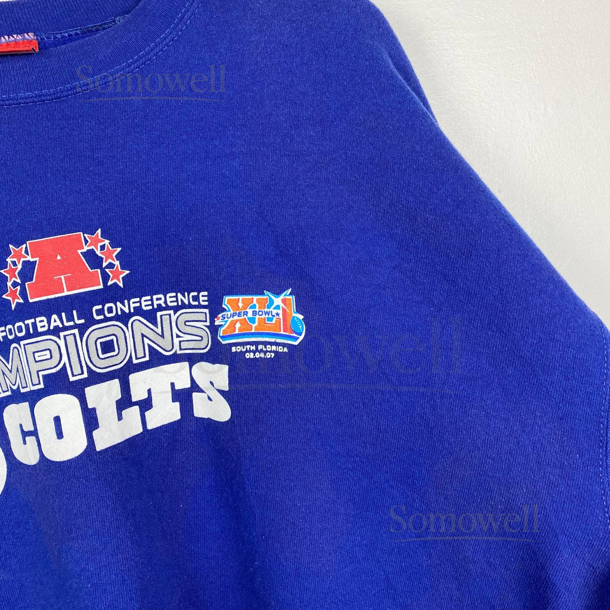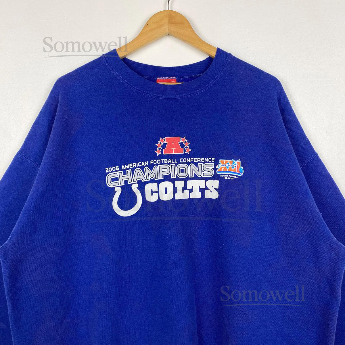 Vintage Acid Wash NFL Indianapolis Colts Crewneck Sweatshirt Print Logo Blue Color M_941