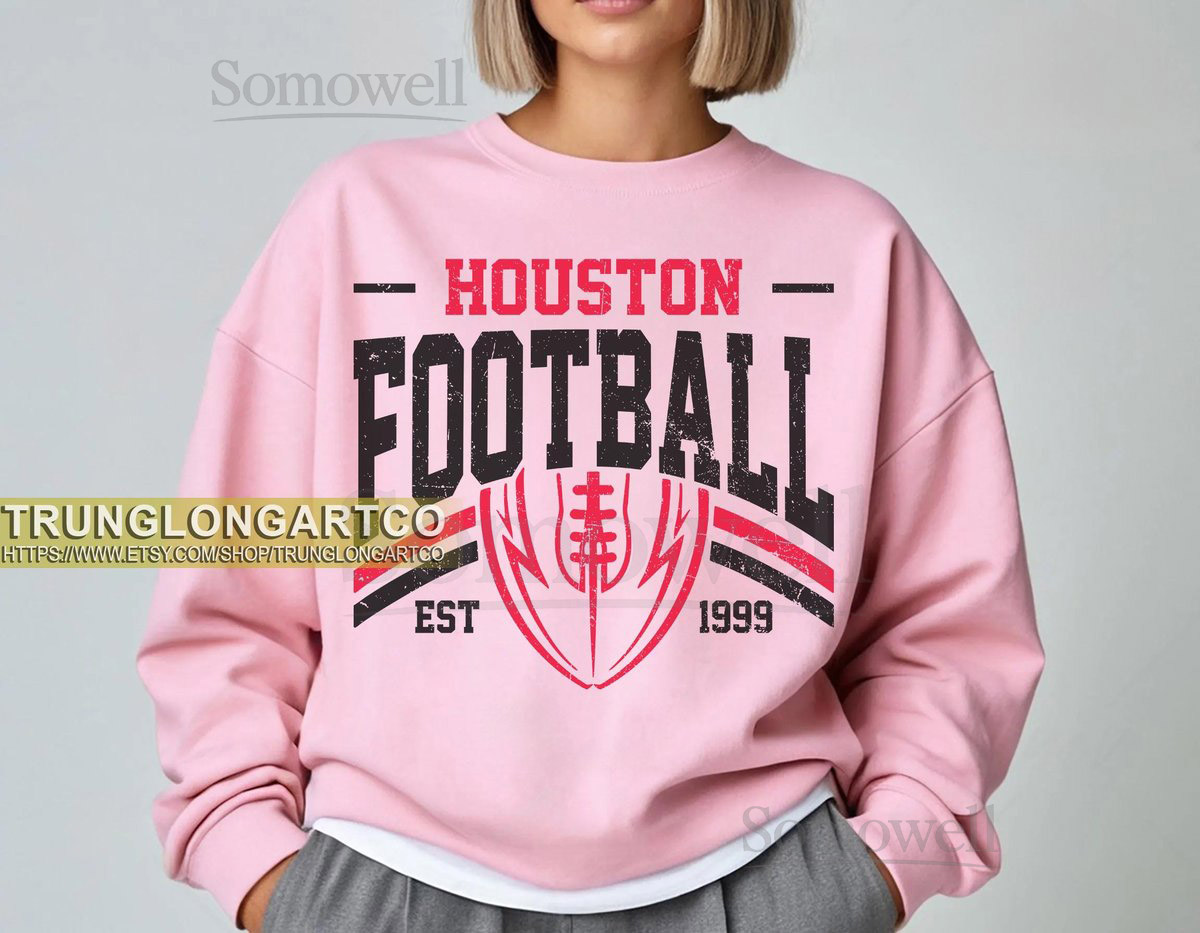 Vintage style Houston Football sweatshirt Football shirtHouston football Crewneck tshirt Game day FootballAmerican footbal_1026