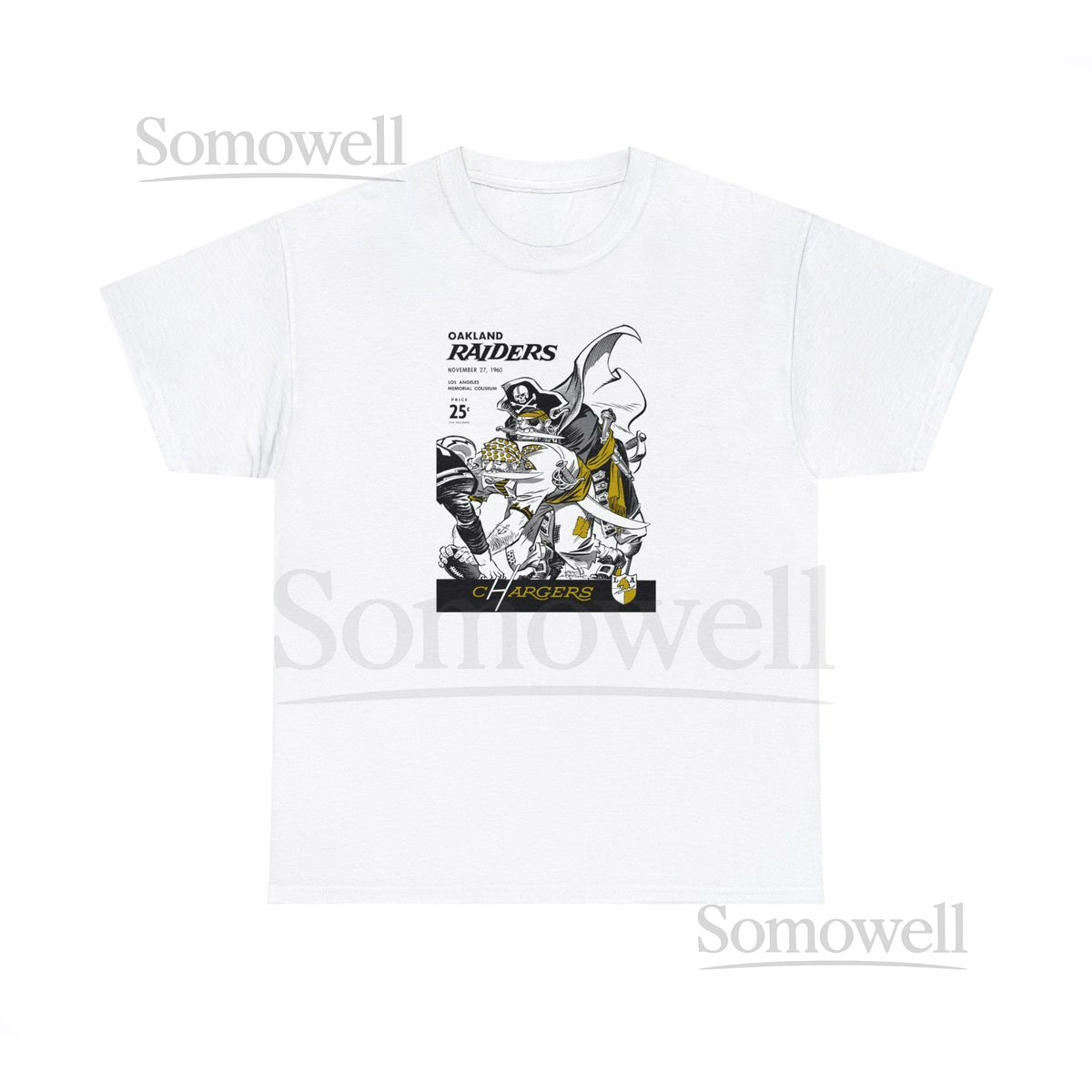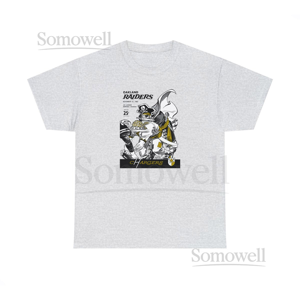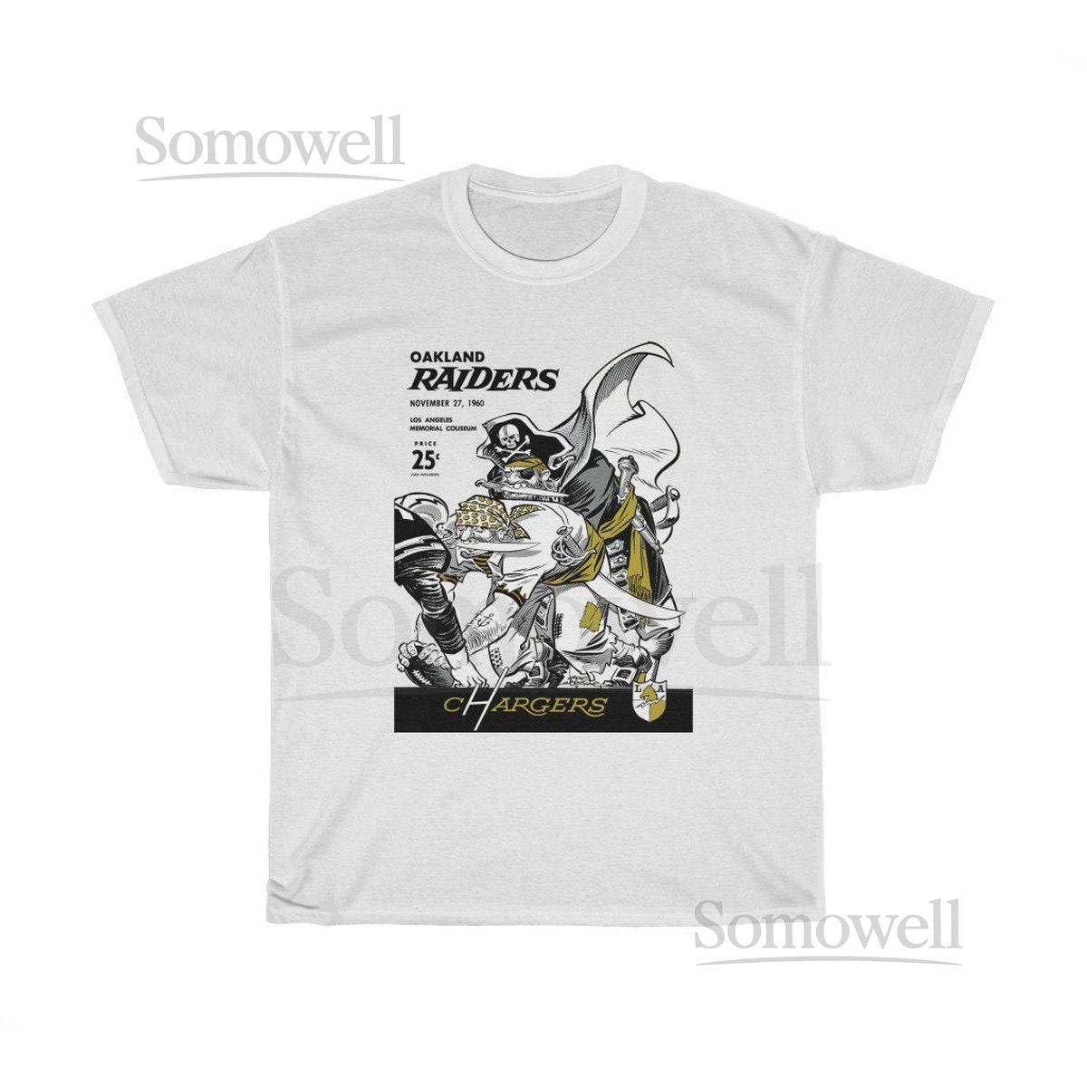 1960 Vintage Oakland Raiders – Los Angeles Chargers Football Program Cover – Heavy Cotton Tee_4
