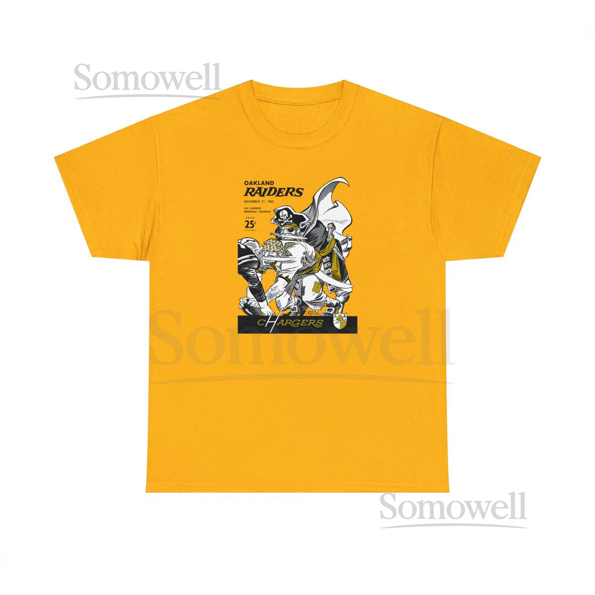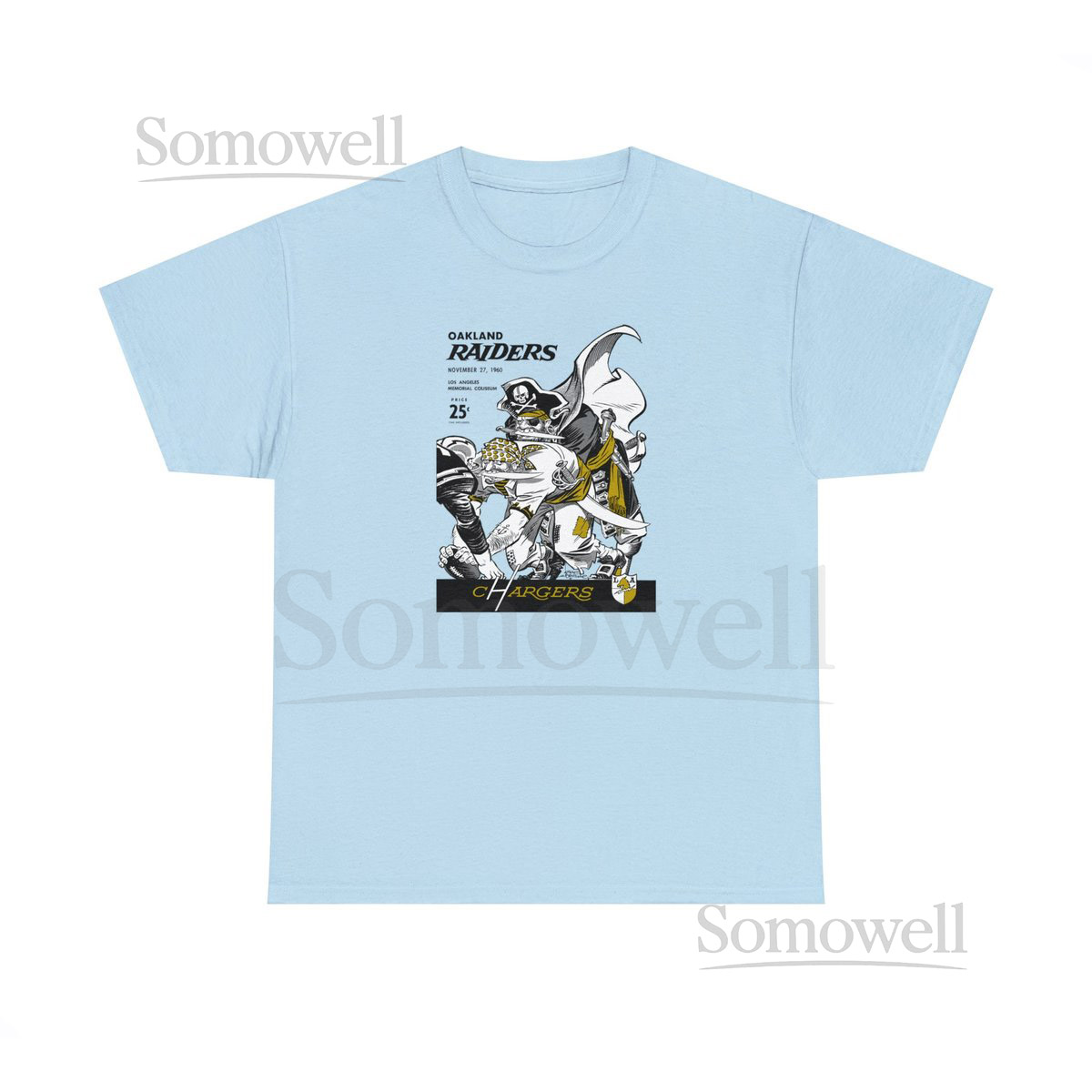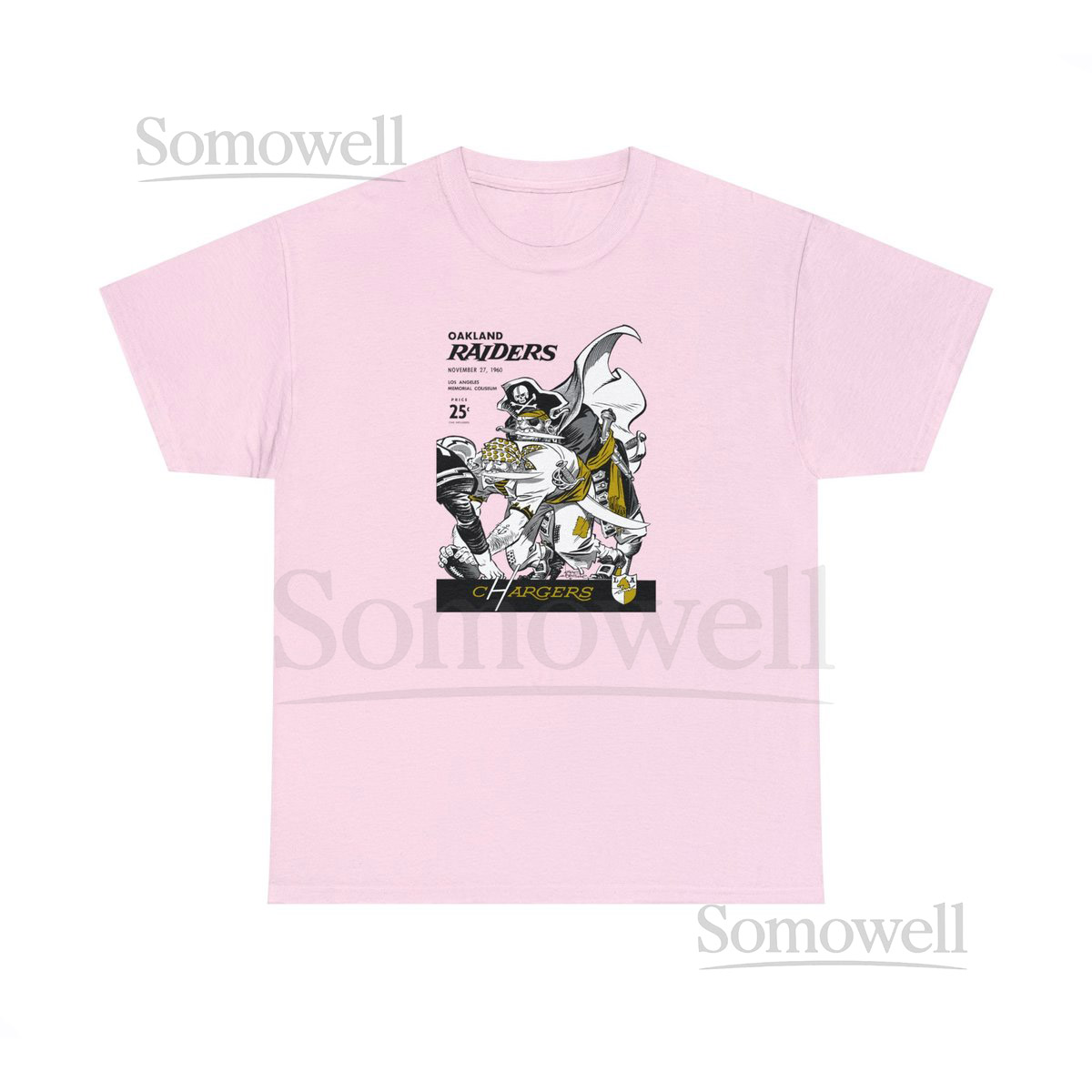 1960 Vintage Oakland Raiders – Los Angeles Chargers Football Program Cover – Heavy Cotton Tee_4