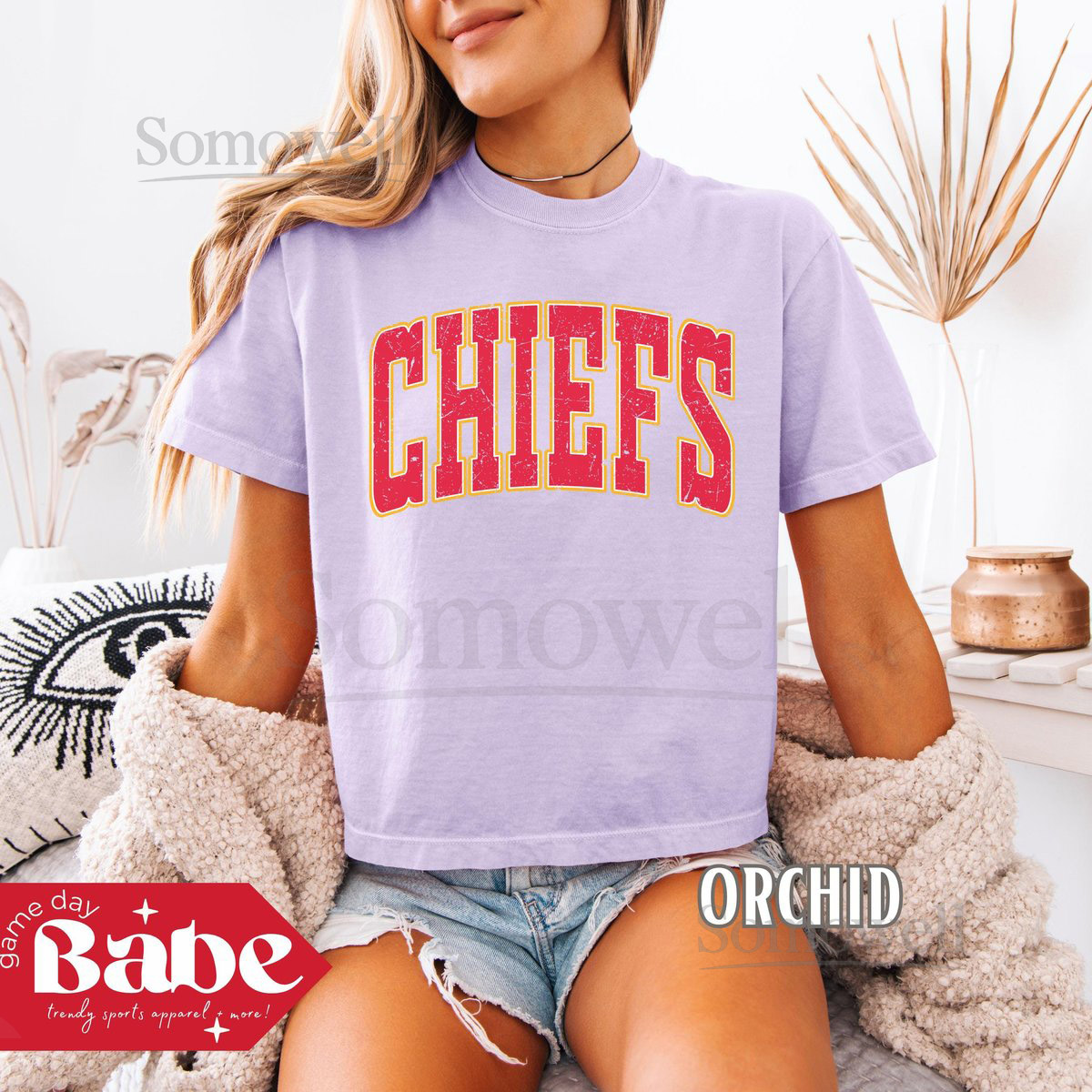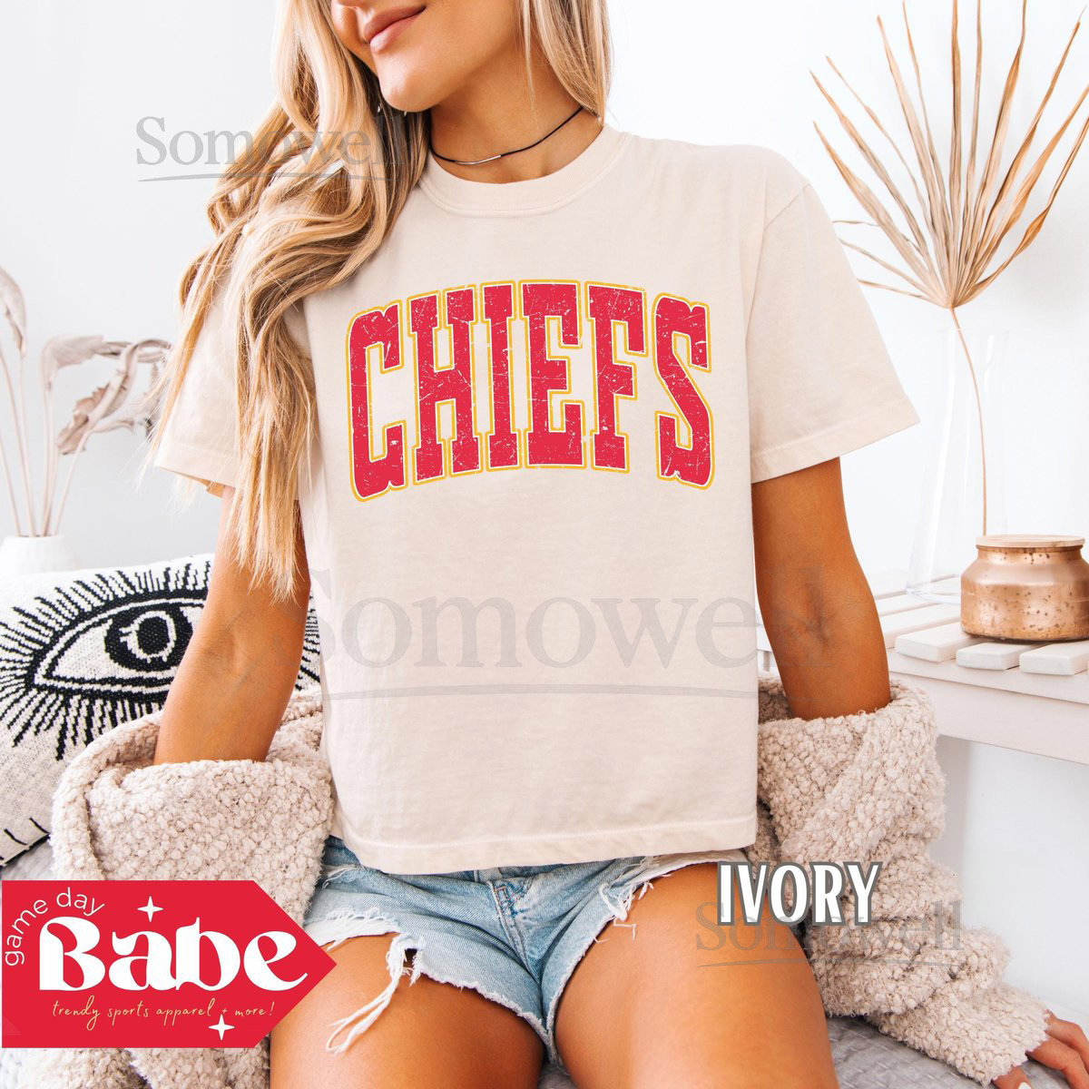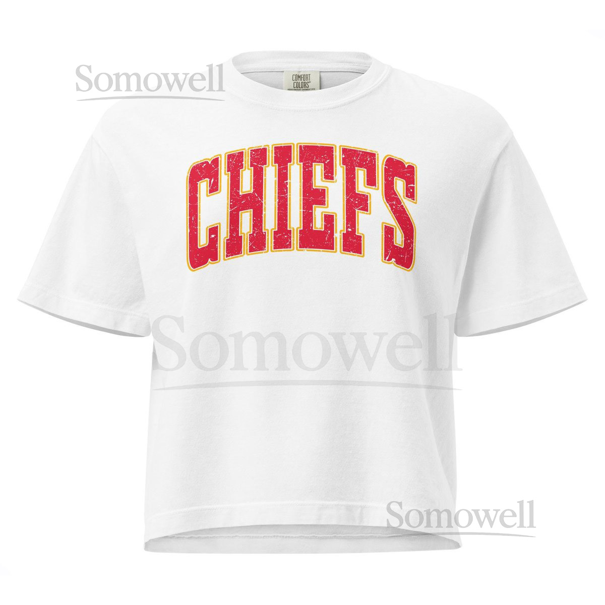 Adult Chiefs Boxy Crop Kansas City Football KC Game Day Shirt Arrowhead Distressed Vintage Touchdown Comfort Colors Oversized_9