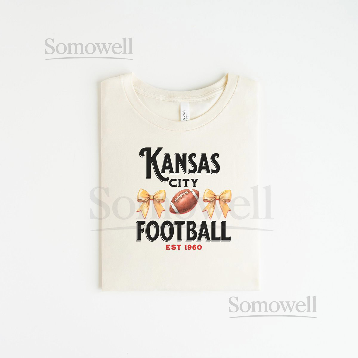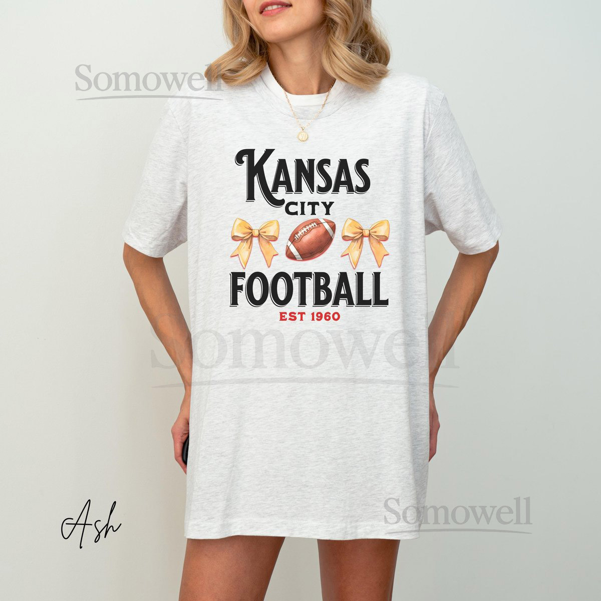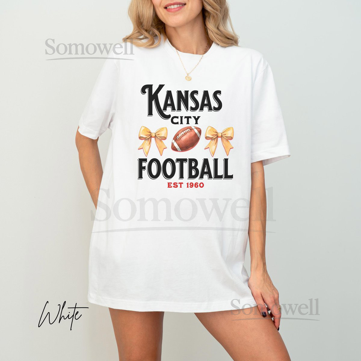 Kansas City Chiefs Football Shirt Bow and Football Design Super Bowl Attire Girly KC Chiefs Shirt Everyday Wear Shirt Comfy Cozy Shirt_267