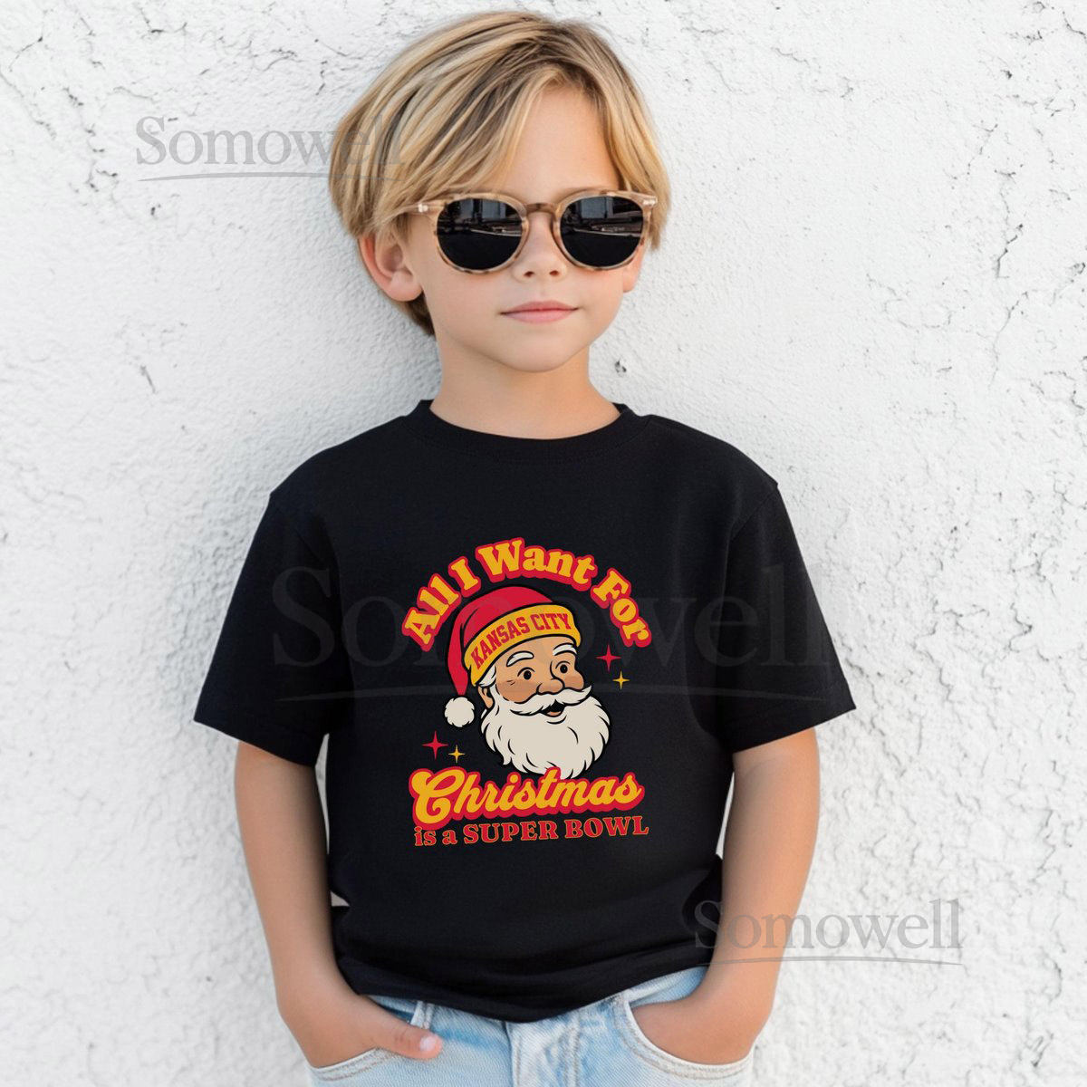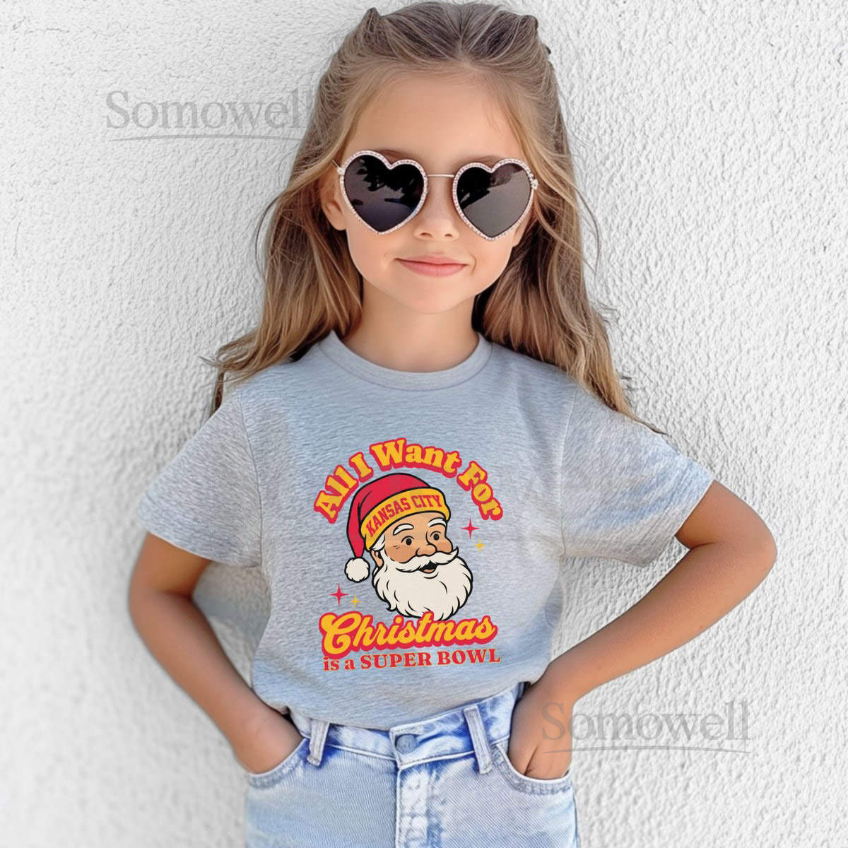 Kansas City Football All I Want For Christmas Is A Super Bowl T-Shirt Toddler Retro Chief Tee Holiday Santa Football Fan Shirt Game Day_331