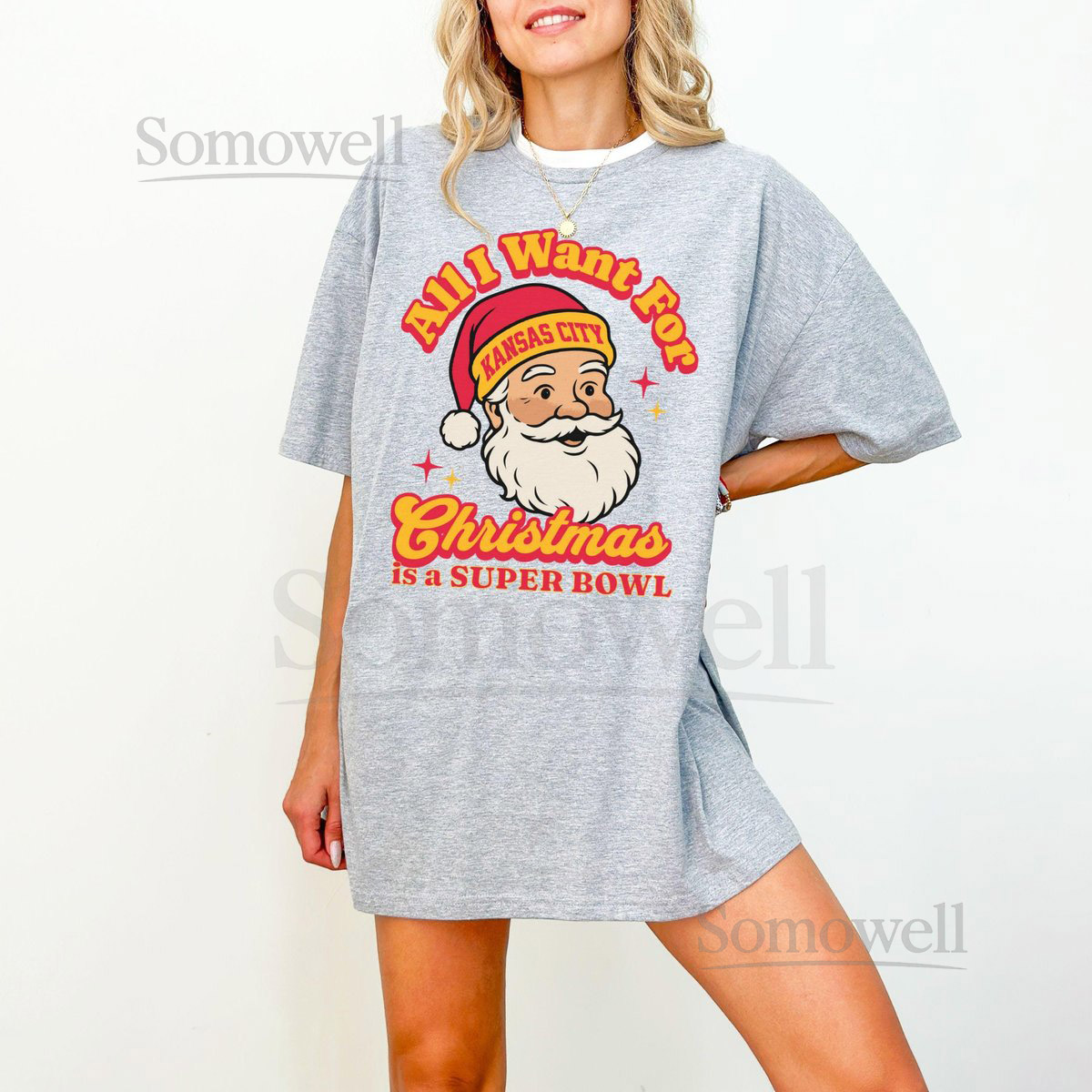 Kansas City Football Christmas Super Bowl T-Shirt Retro Chief Football Tee Holiday Football Fan Shirt Festive Sports Apparel Santa Shirt_335