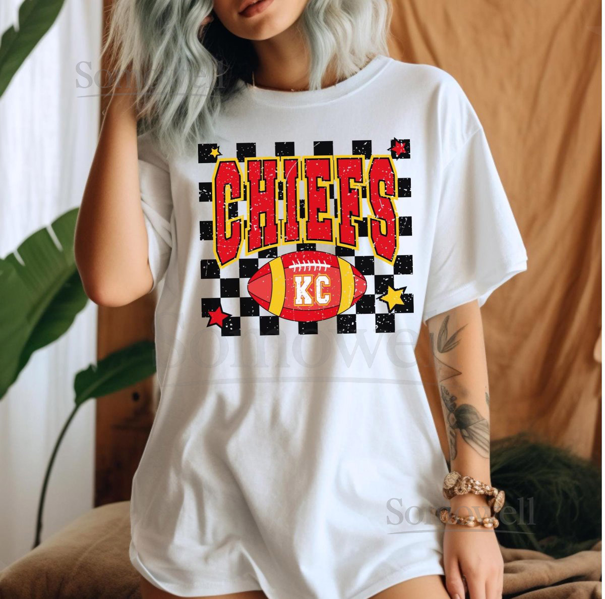 KC Chiefs Shirt Cozy KC Football Shirt with Distressed Print Kansas City Shirt Retro Design_404
