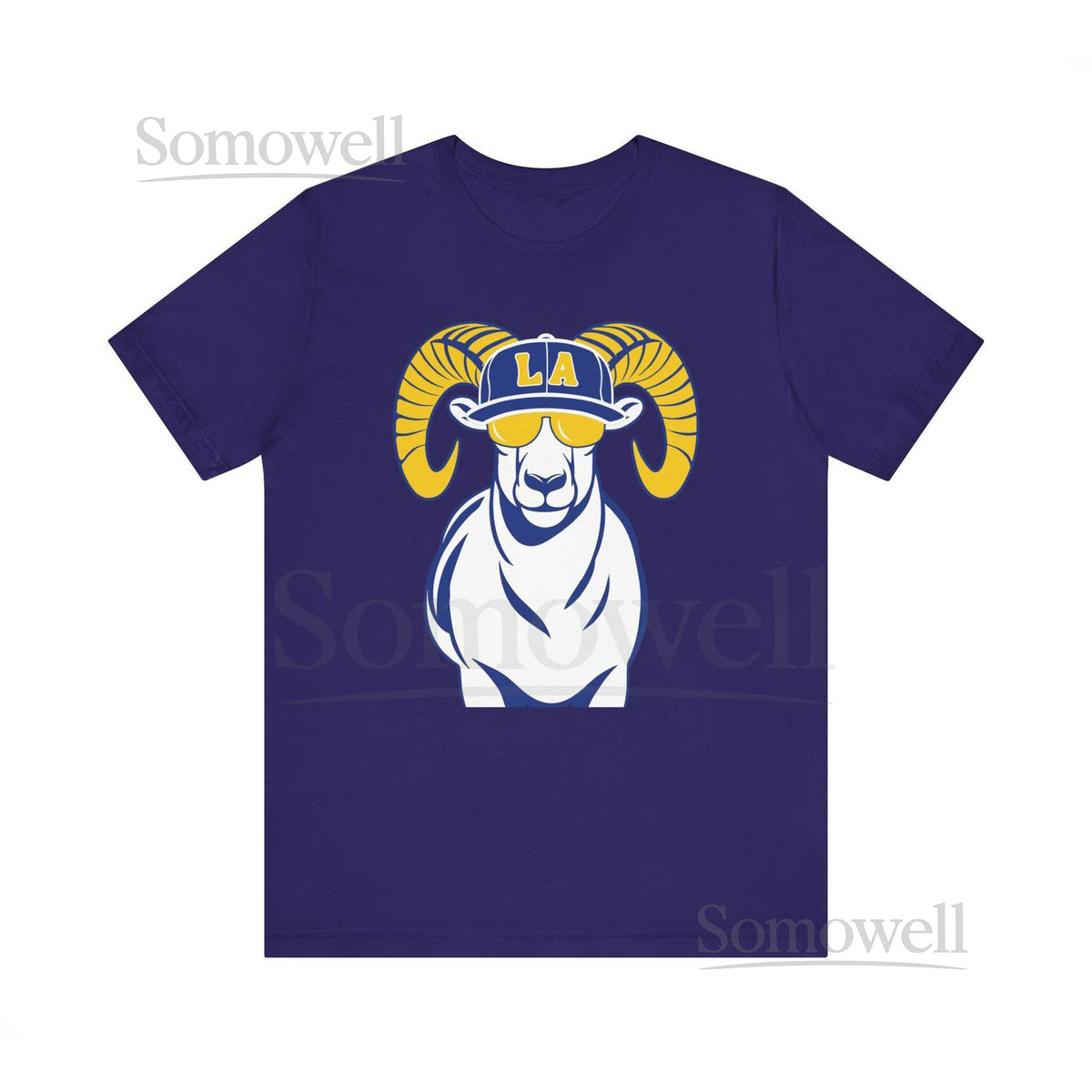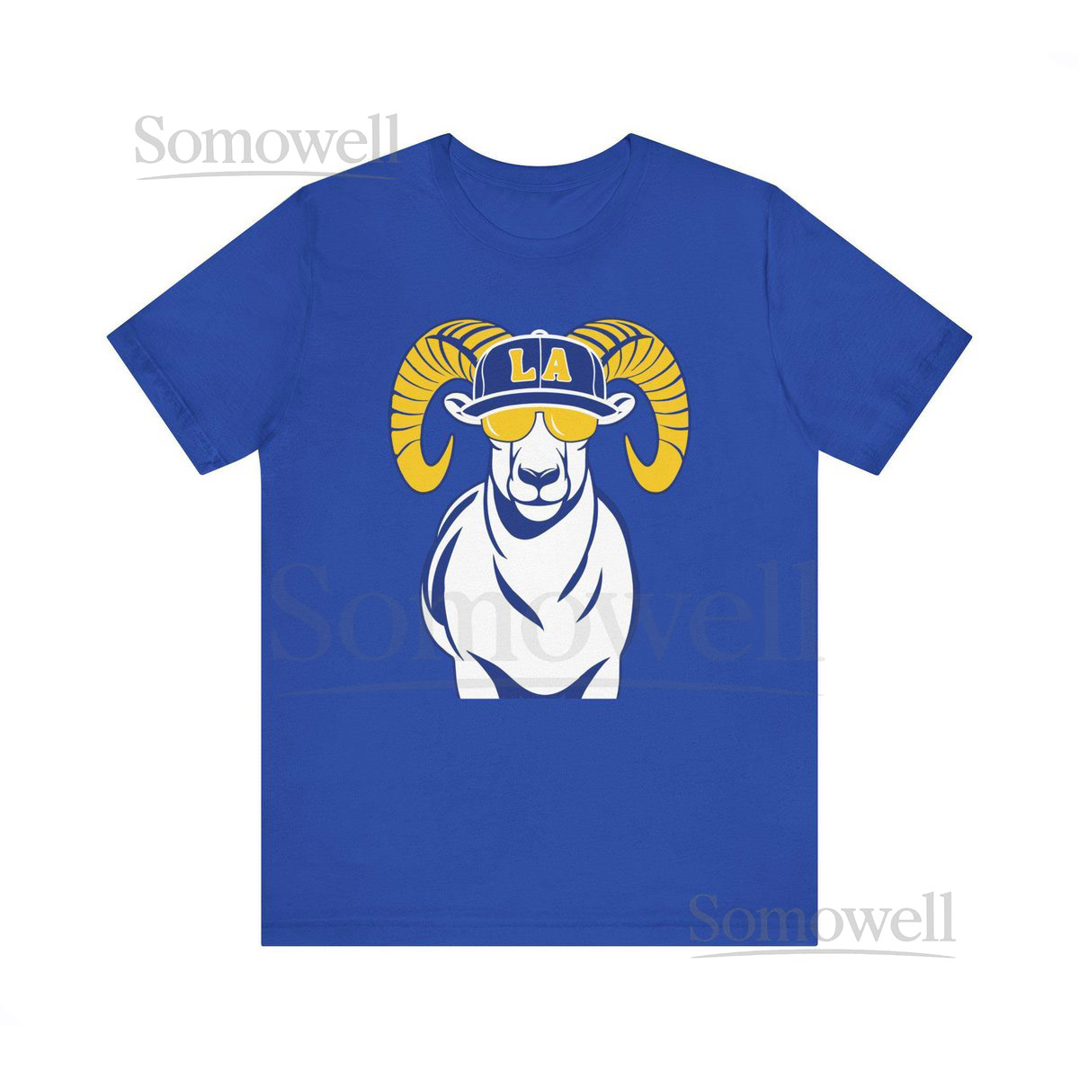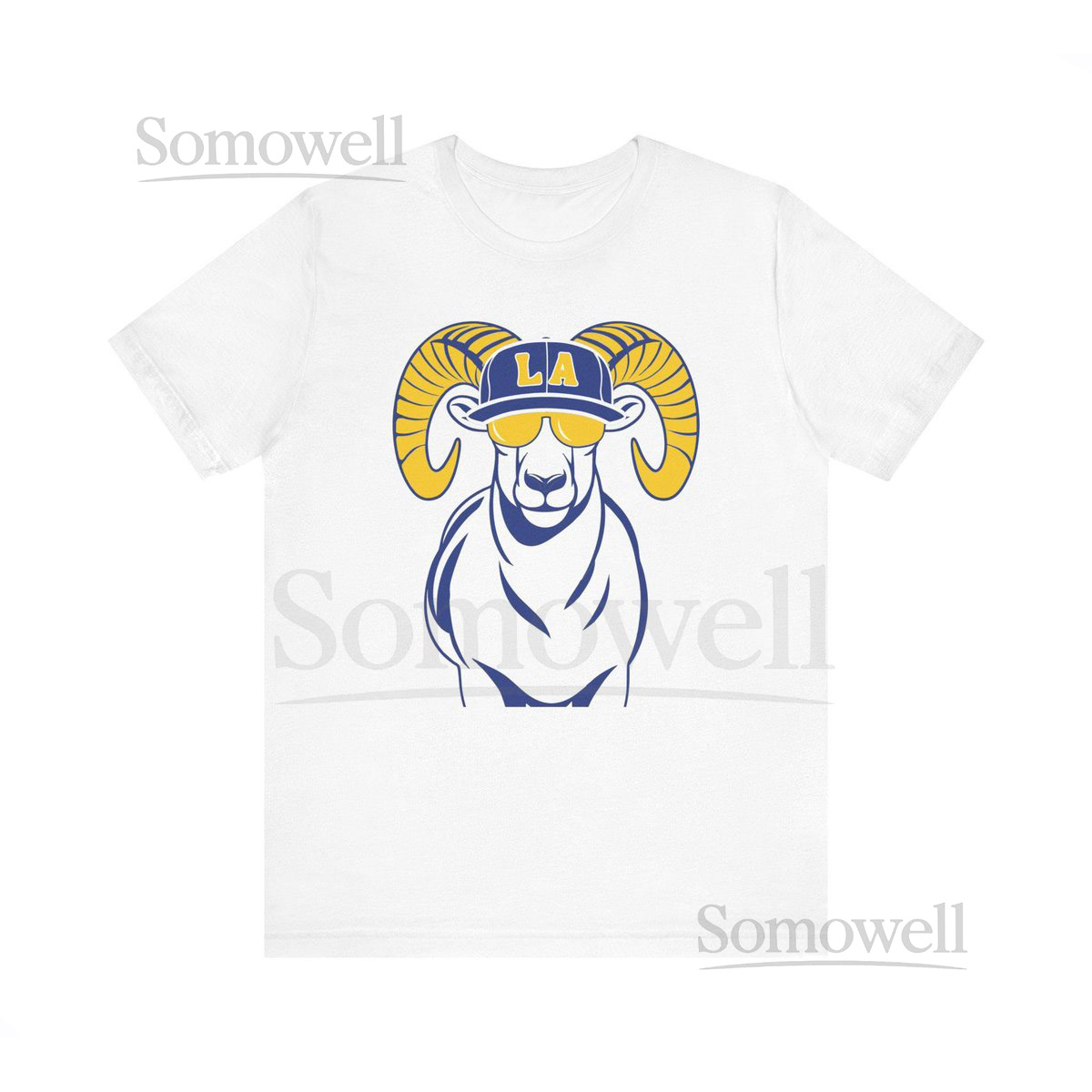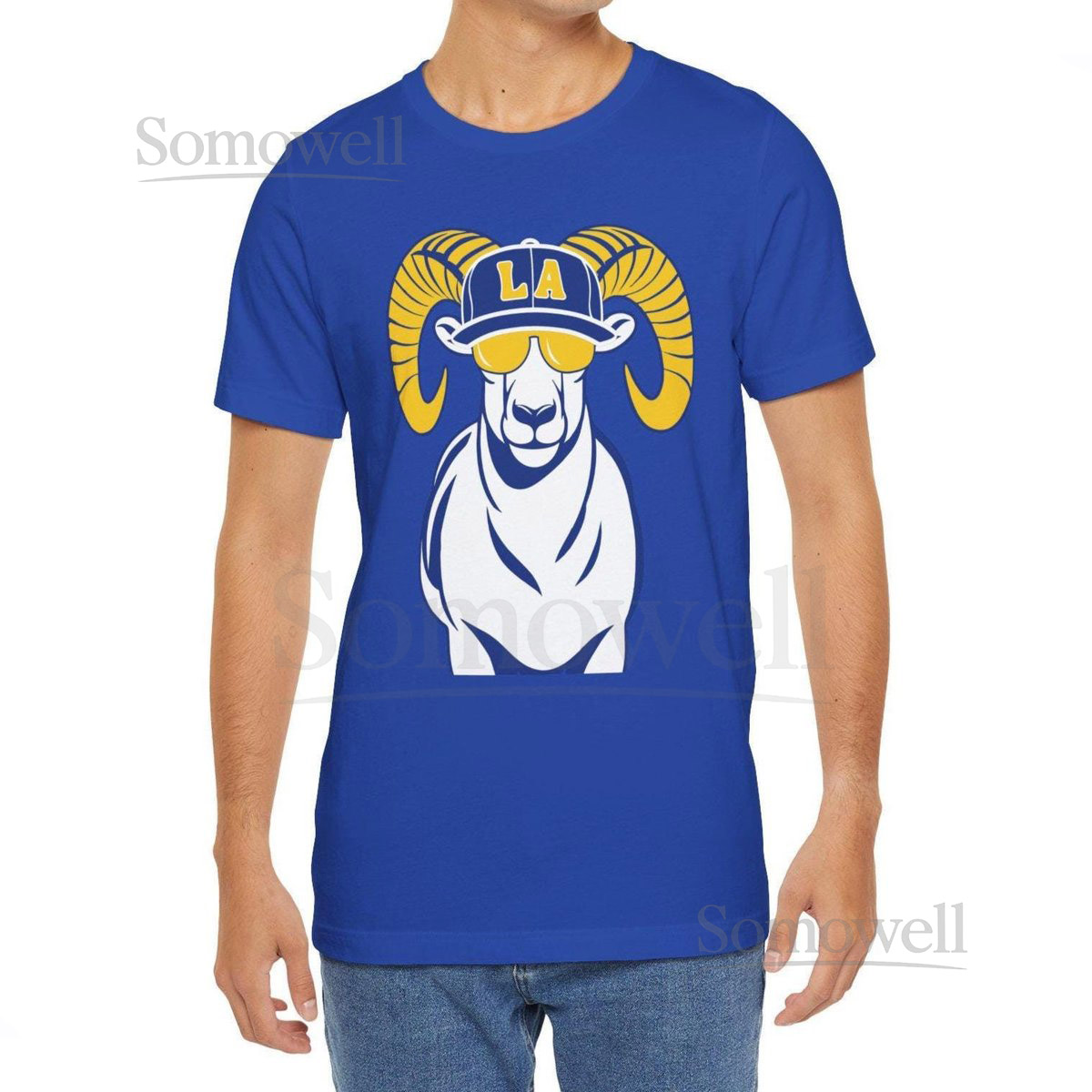 LA Football T-Shirt LA Ram With Hat Sunglasses Graphic Tee_429