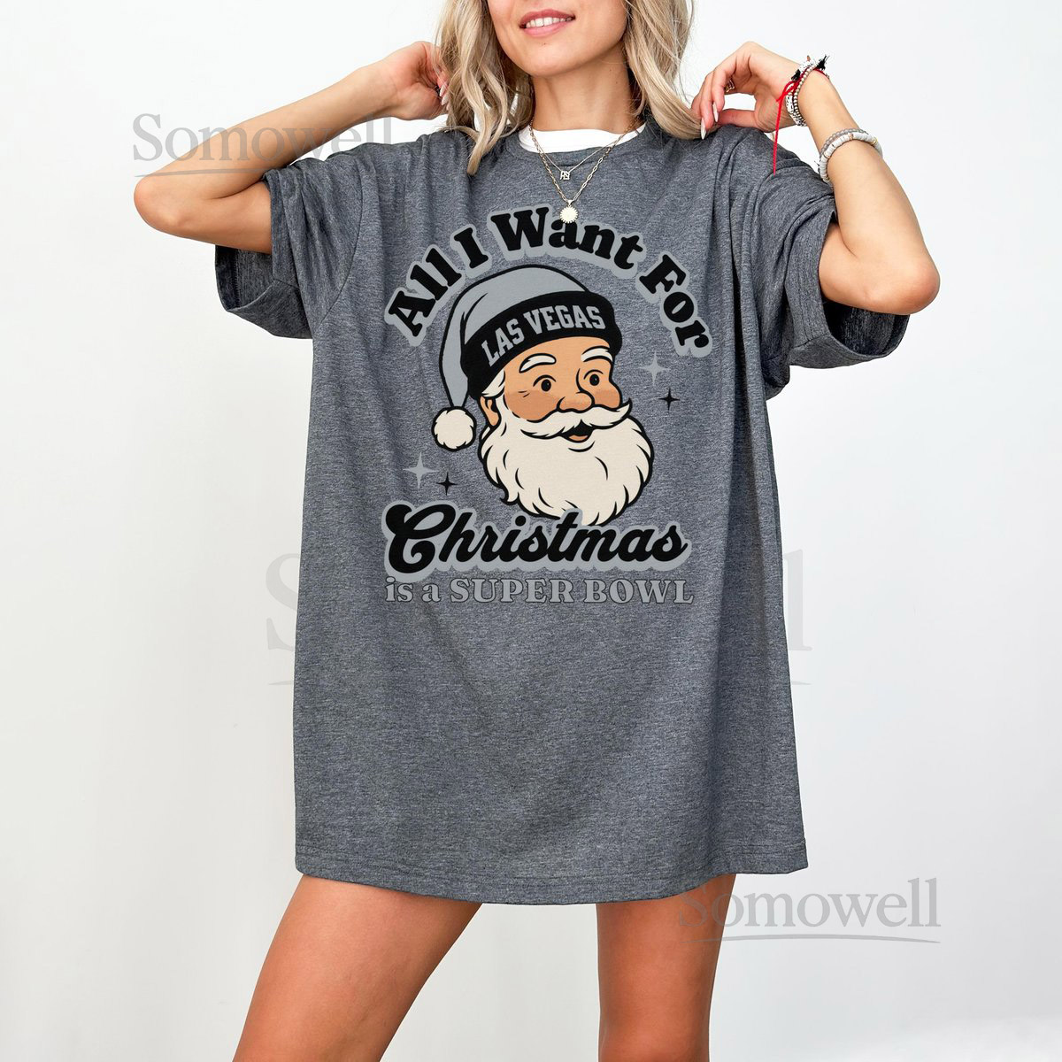 Las Vegas Football Christmas Super Bowl T-Shirt Retro Raider Football Tee Holiday Football Fan Shirt Festive Sports Apparel Santa Shirt_449
