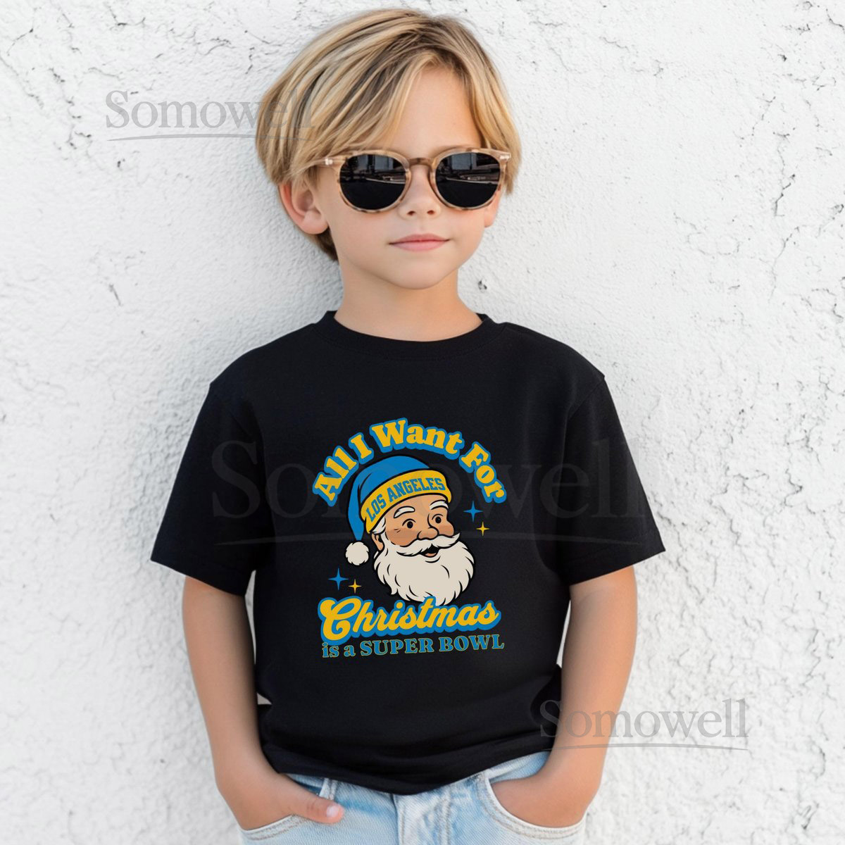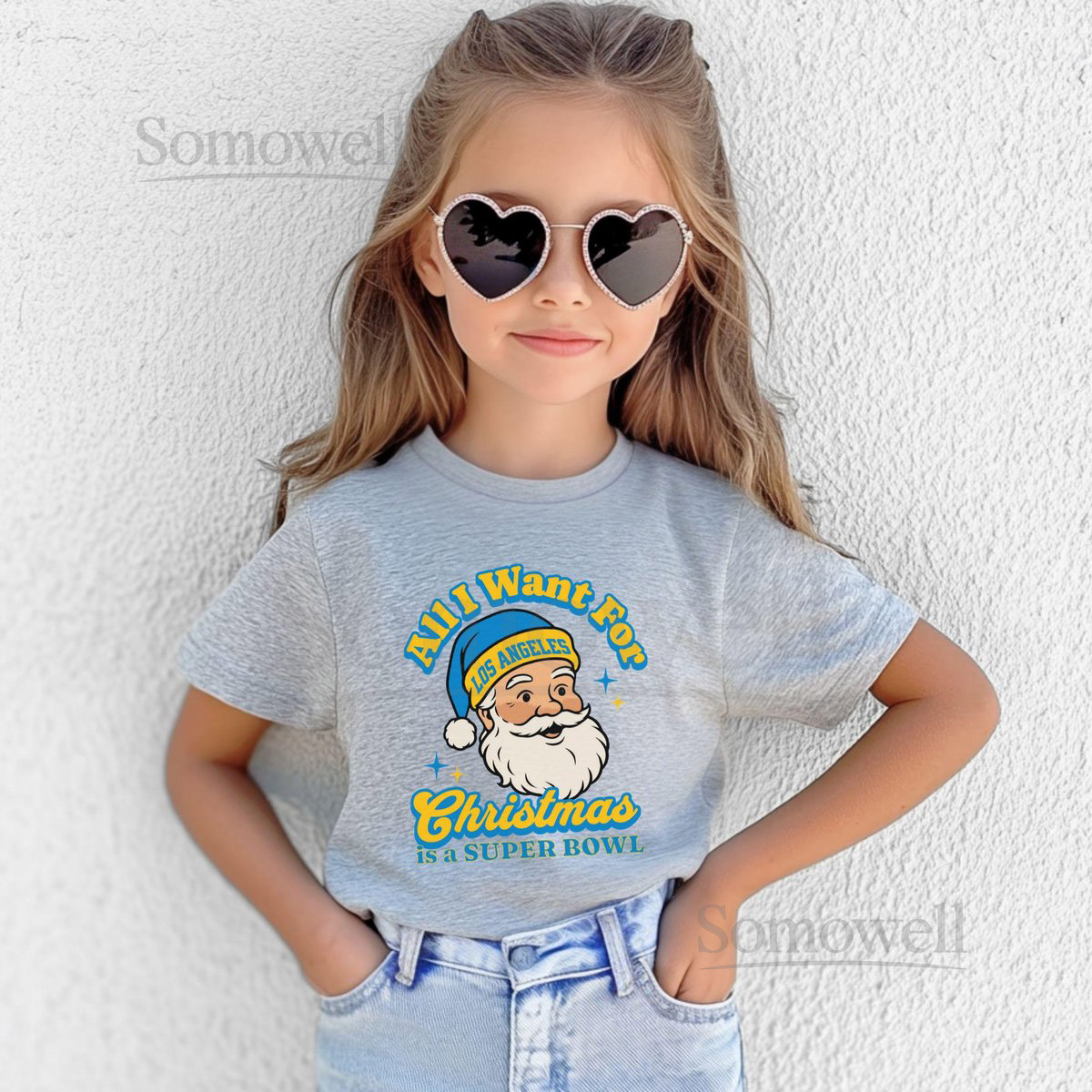 Los Angeles Football All I Want For Christmas Is A Super Bowl T-Shirt Toddler Retro Charger Tee Holiday Santa Football Fan Shirt Game Day_534