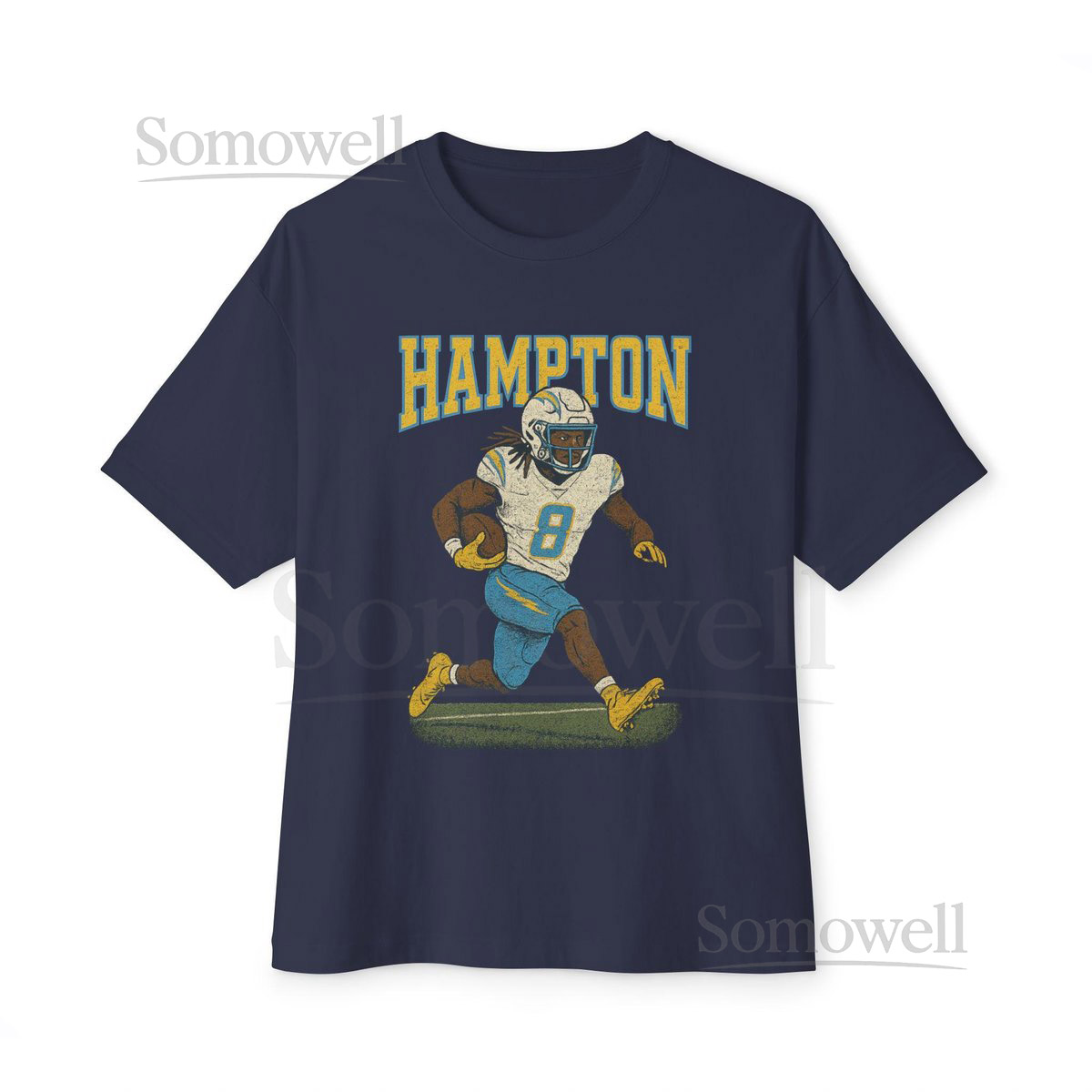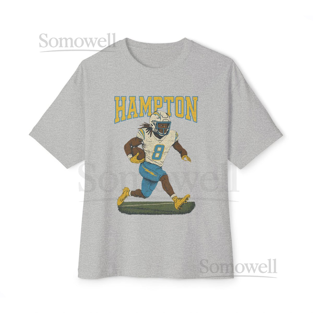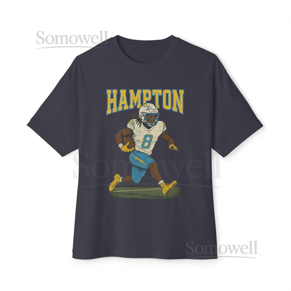 Omarion Hampton Chargers 8 Running Back Retro Varsity Distressed Tee_639