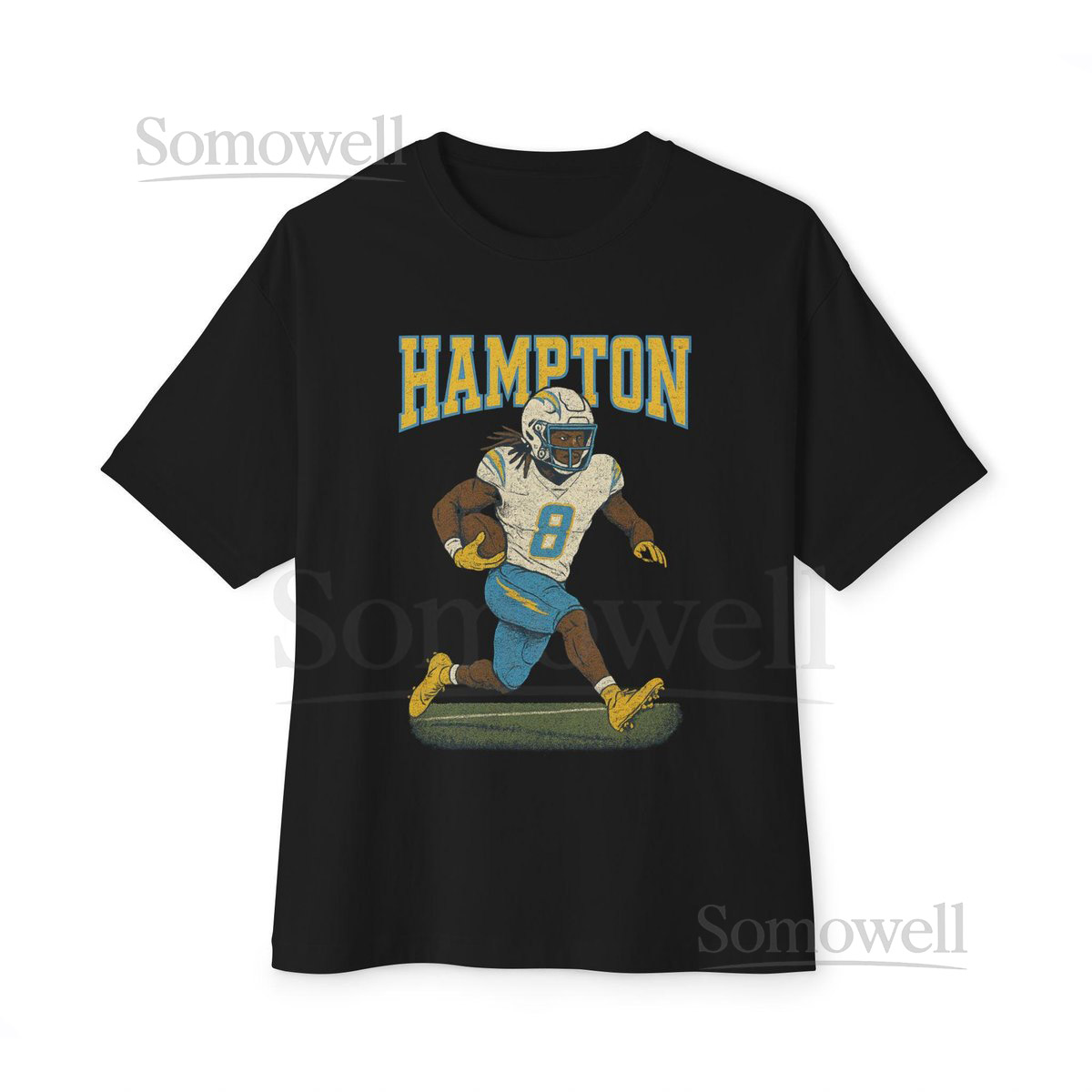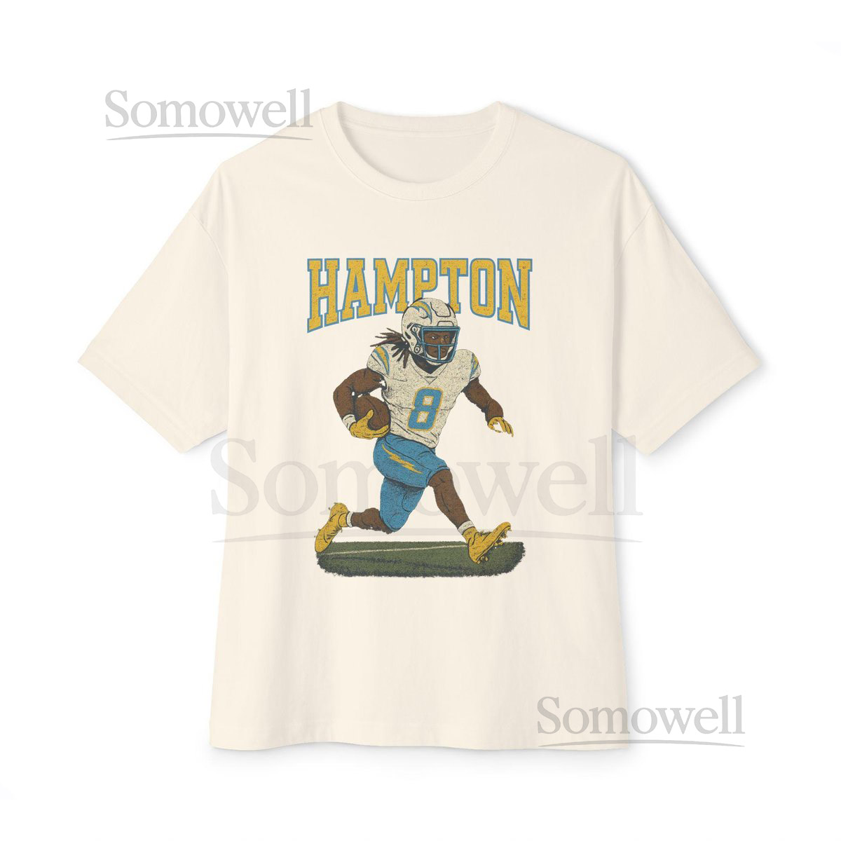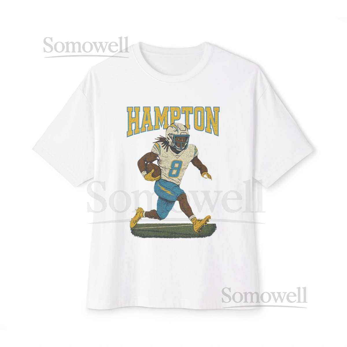 Omarion Hampton Chargers 8 Running Back Retro Varsity Distressed Tee_639
