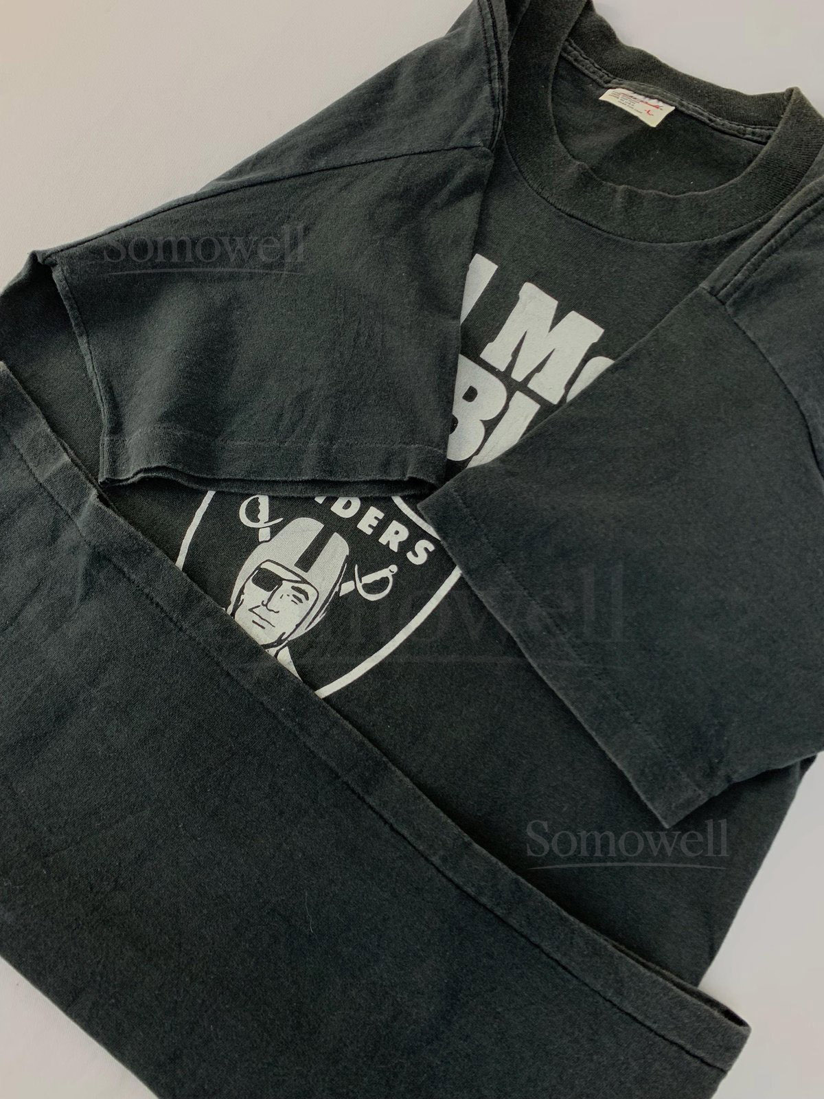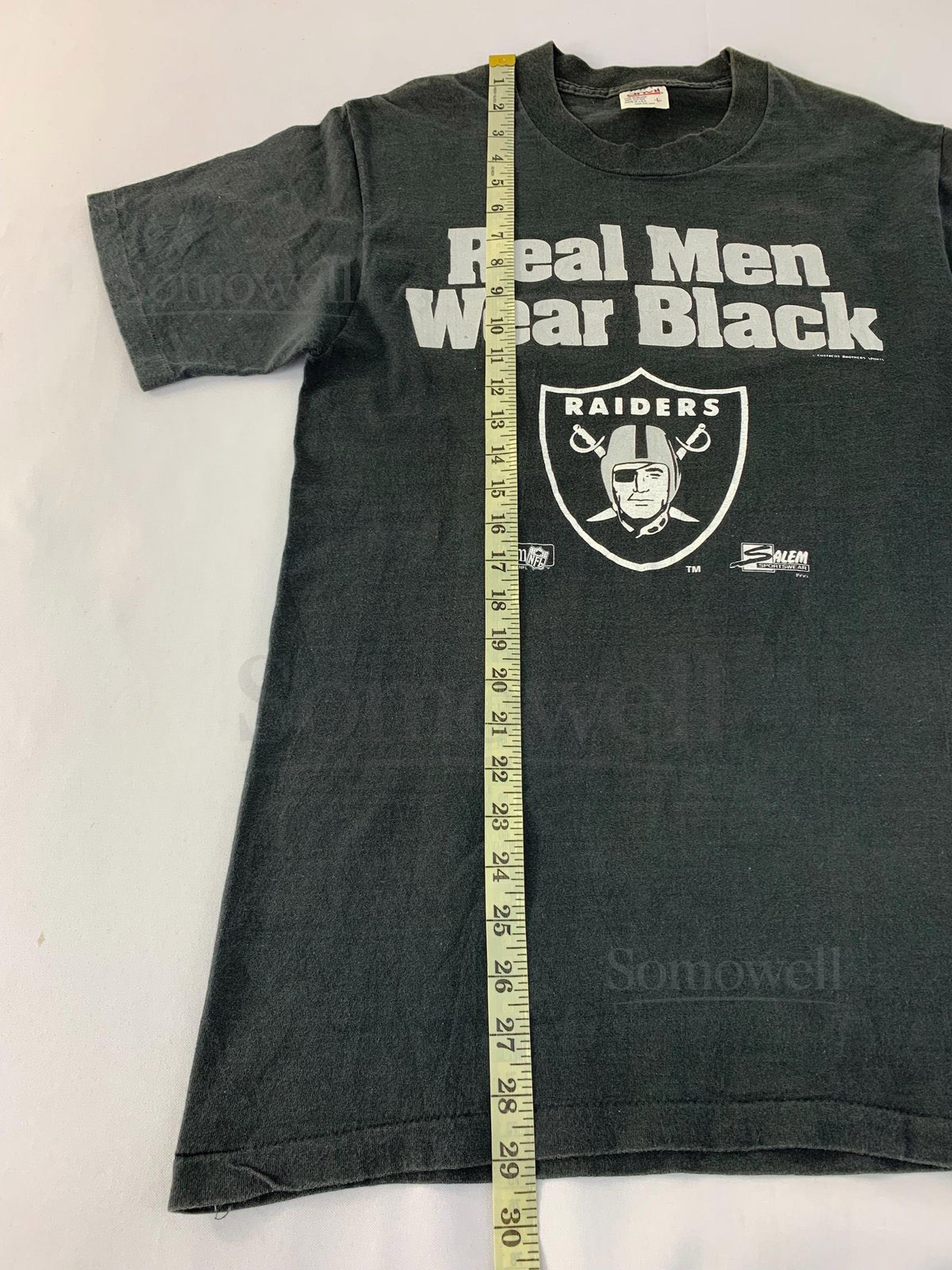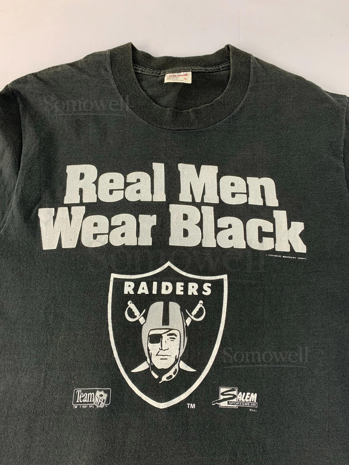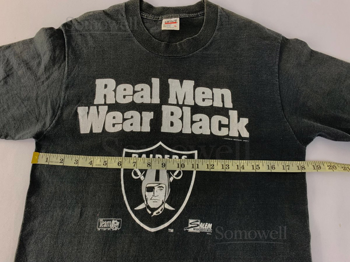 Vintage 90s Real Men Wear Black Las Vegas Raiders Team Nfl Crewneck Printed Tee T-shirt Unisex Wear Streetwear Size S E401_790