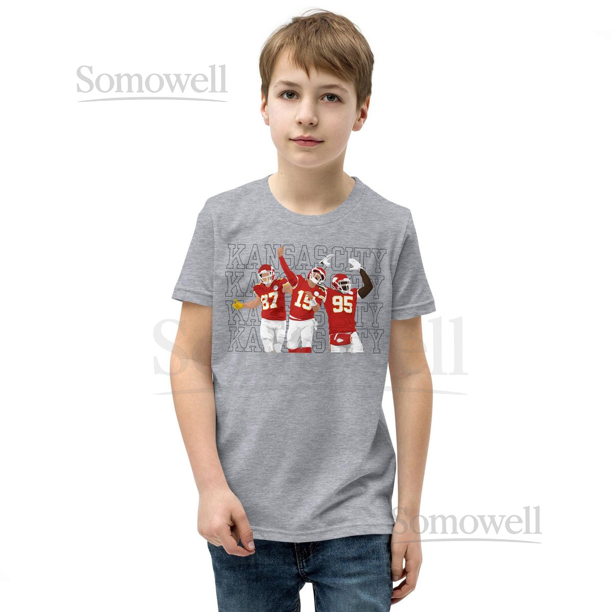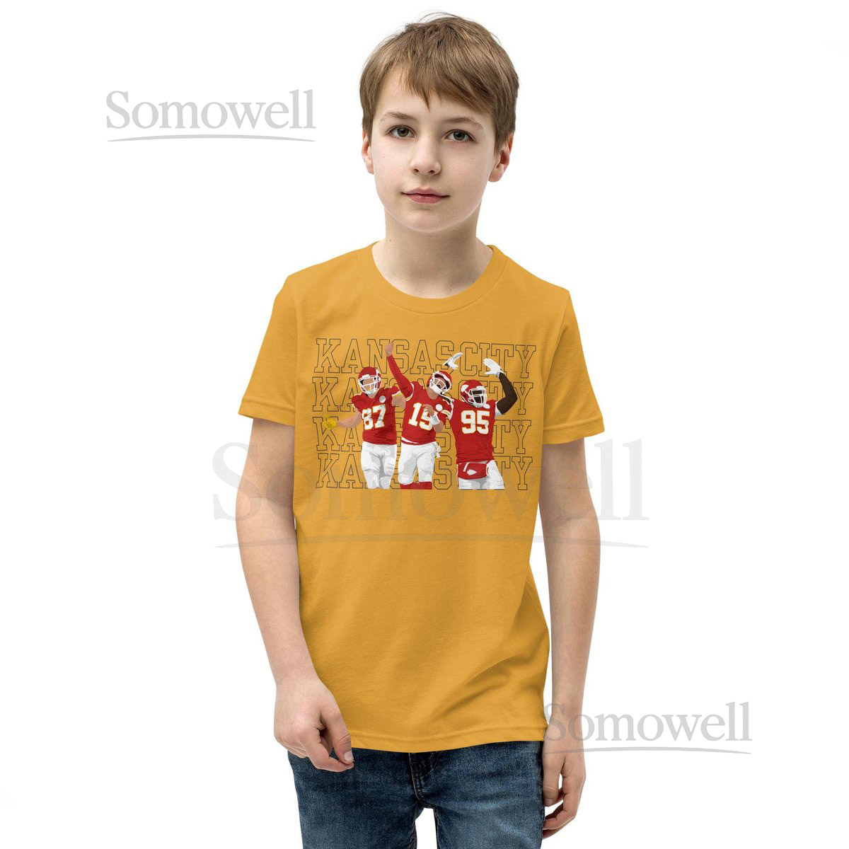Youth Chiefs Short Sleeve T-Shirt Bella Canvas Brand Tee Kansas City Football Kids KC gear Game Day Outfit Gift Boys Girls Players_857